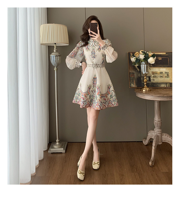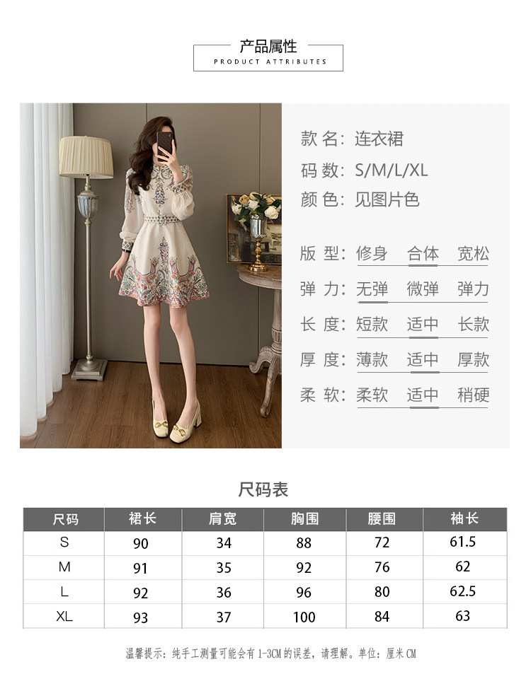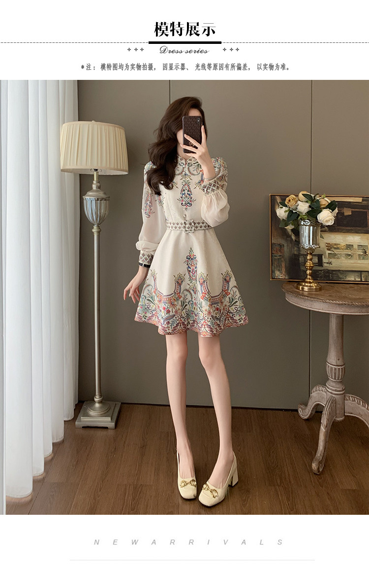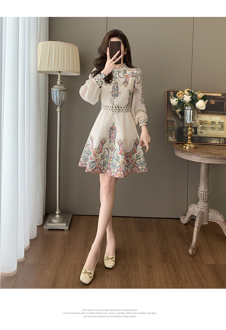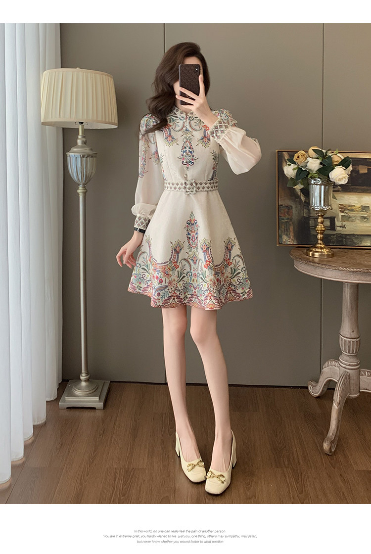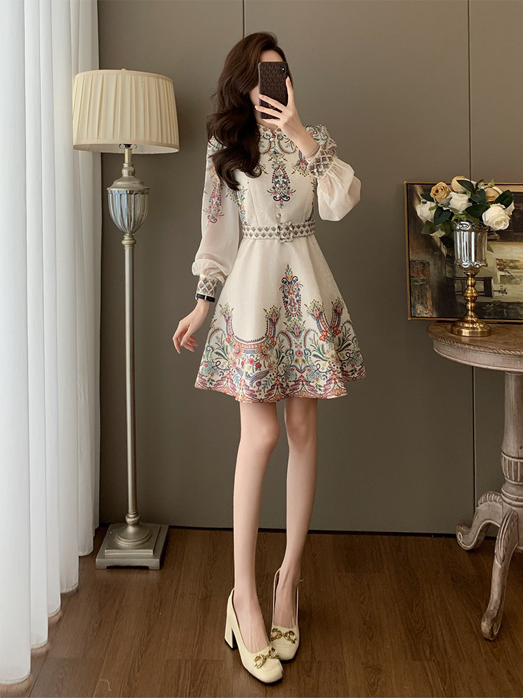 Fashionable, Elegant, Light Luxury, Stunning Waist-Cinching Dress for Women, Autumn French Retro Style, Palace-Style Printed Dress