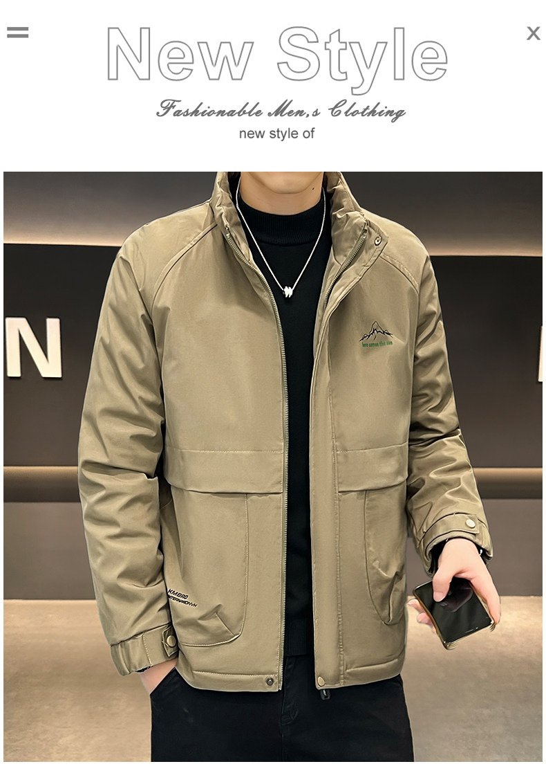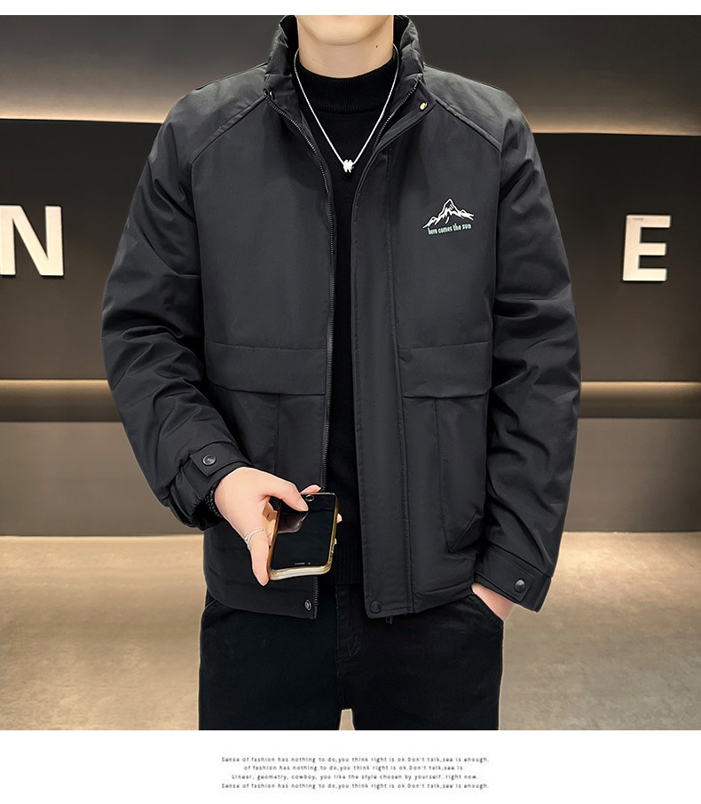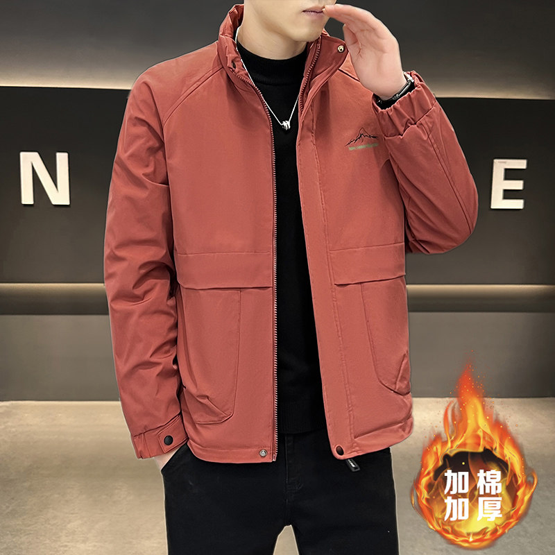 Ermian jacket men's autumn and winter new loose, simple and versatile cotton thickened stand-up collar work jacket trendy cotton coat