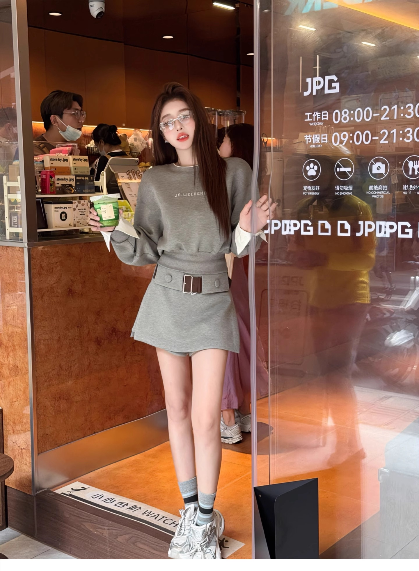 Casual Sports Sweatshirt Set for Women in Early Autumn, Very Stylish, Fake Two-Piece Long-Sleeved Top and Short Skirt Two-Piece Set