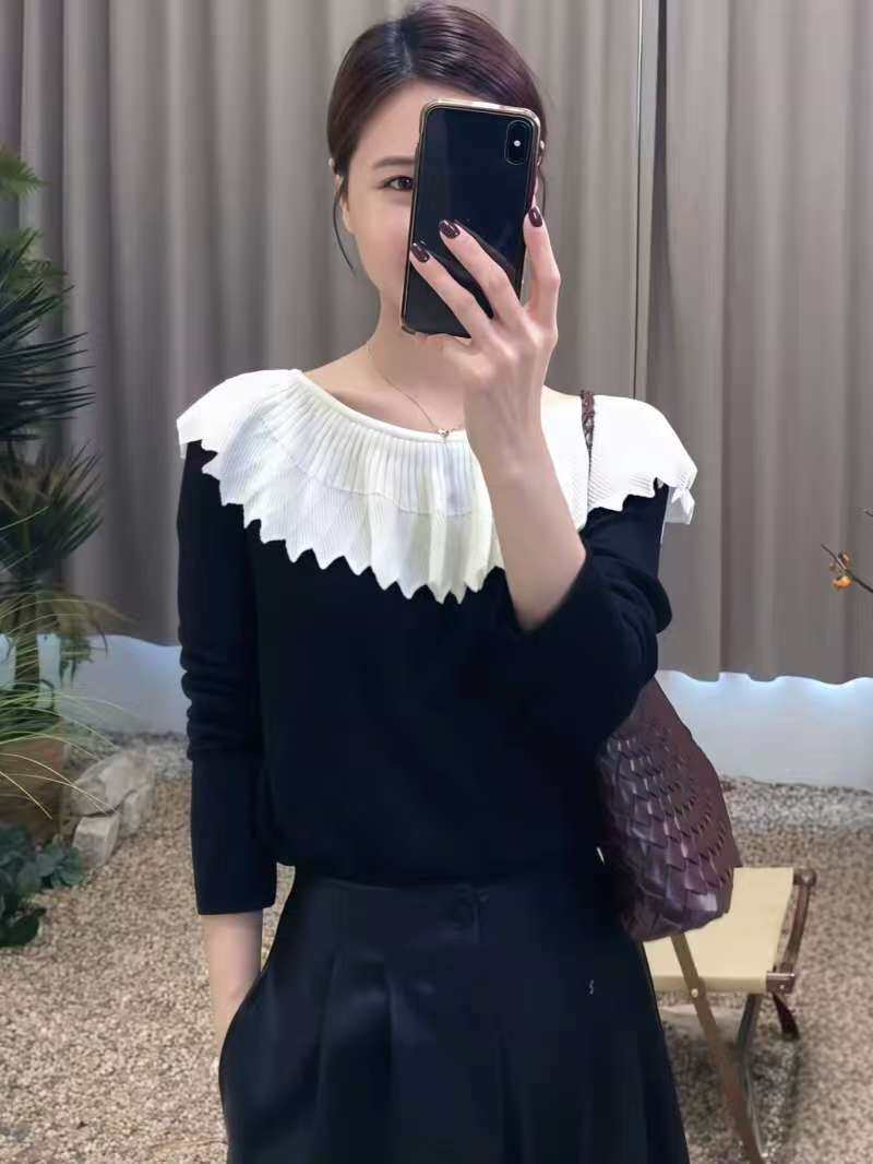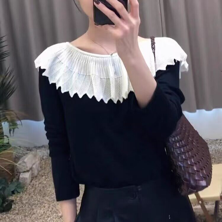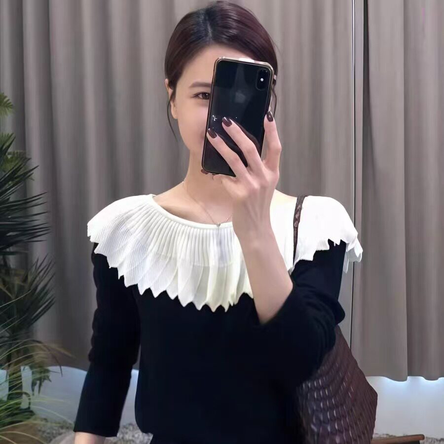 French ruffled one-shoulder sweater for women 2025 early autumn new style inner wear, good-looking, light and mature bottoming shirt top