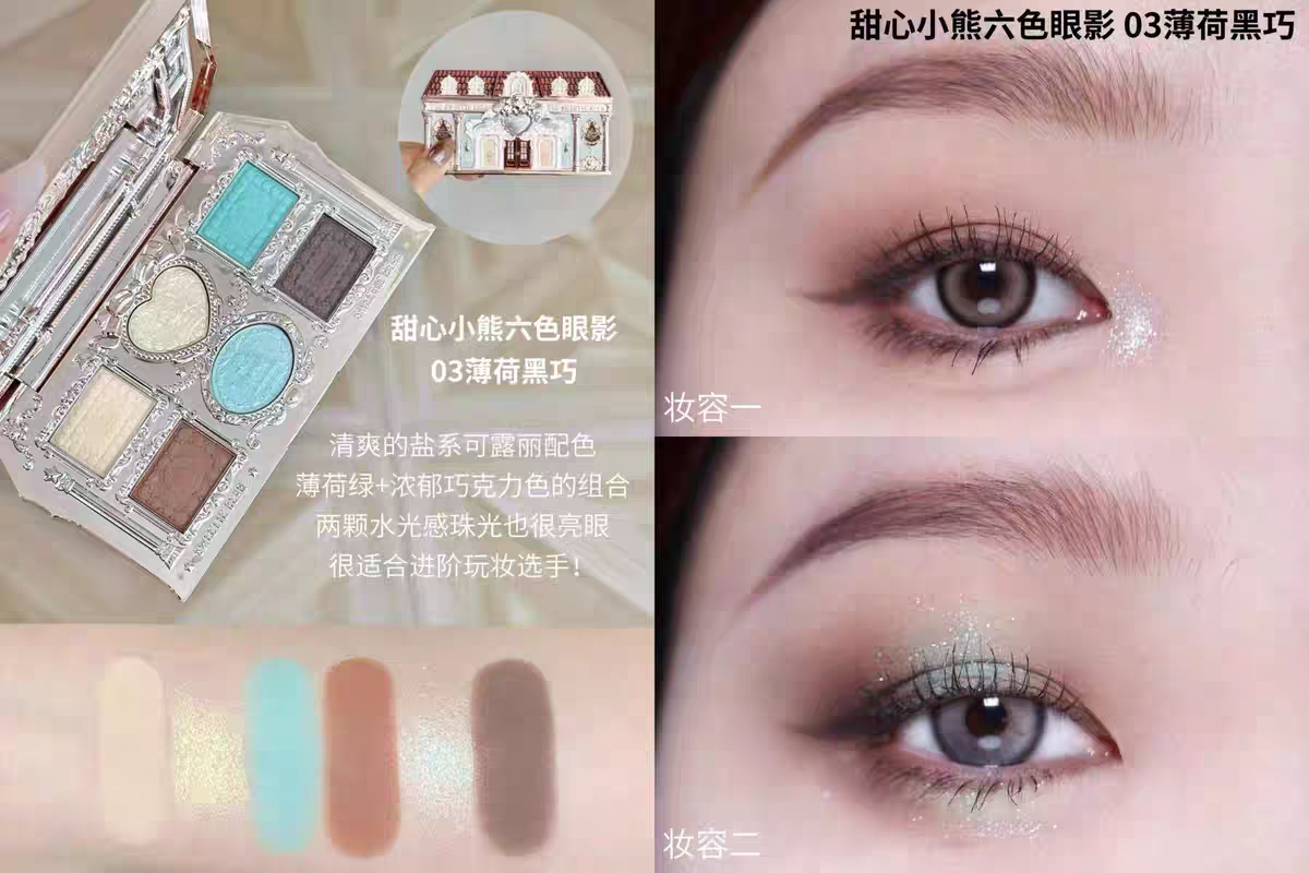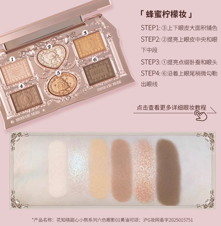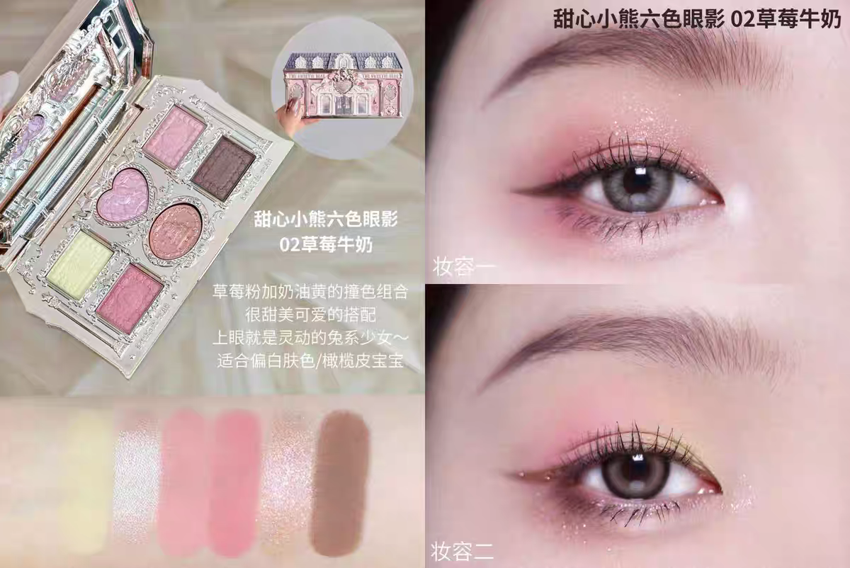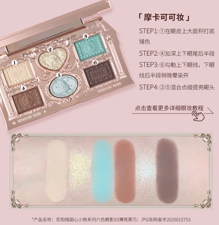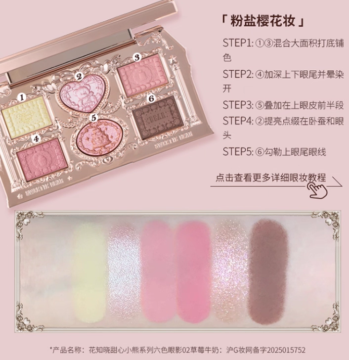 Flower Knows Sweetheart Little Bear Six-Color Eyeshadow Palette Matte and Pearlescent, Skin-Friendly, Smooth, Delicate, and Brilliant