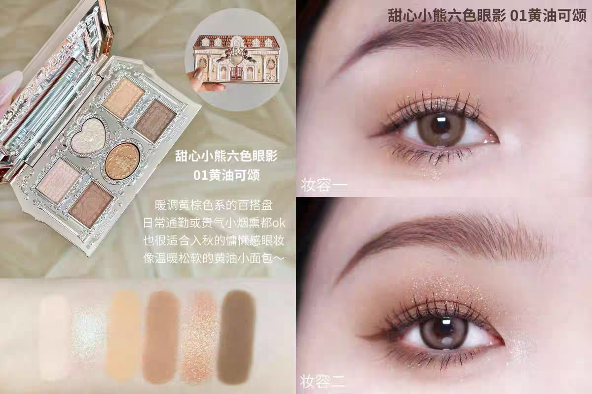 Product Name Flower Knows Sweetheart Bear Series Six-Color Eyeshadow - 01 Croissant Butter
