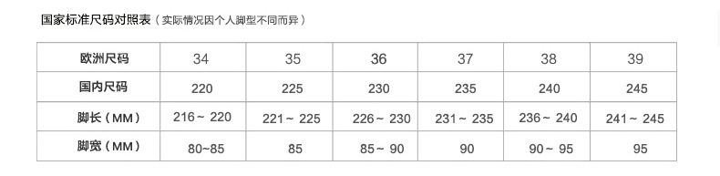 Shoe Size 36-37 (Suitable for Normal Size 35-36),38-39 (Suitable for Normal Sizes 37-38),40-41 (Suitable for Normal Size 39-40),42-43 (Suitable for Normal Size 41-42),44-45 (Suitable for Normal Size 43-44),46-47 (Suitable for Normal Size 45-46)