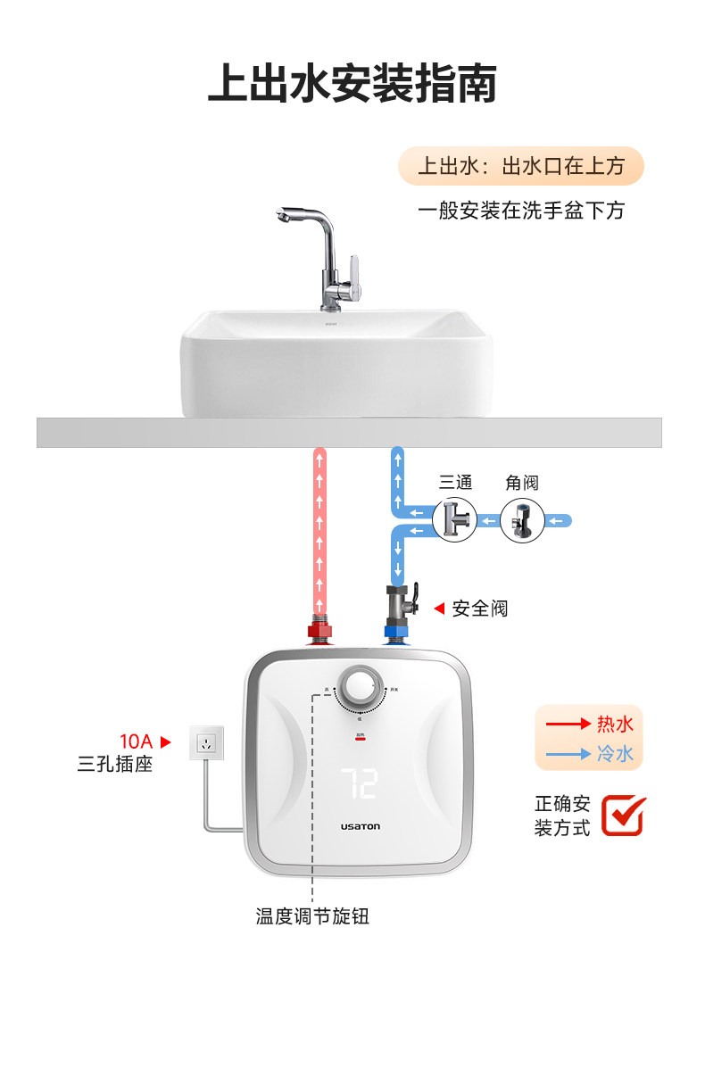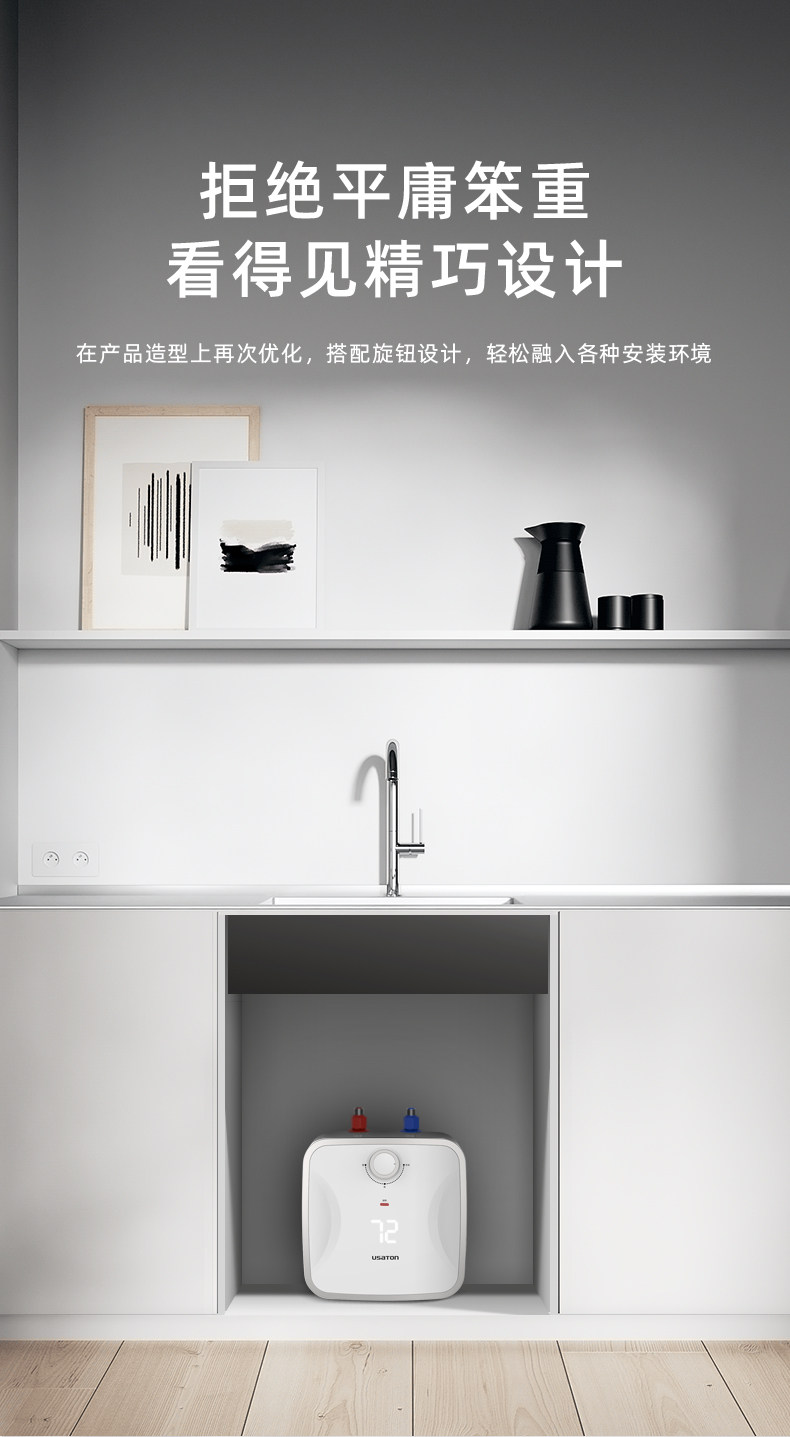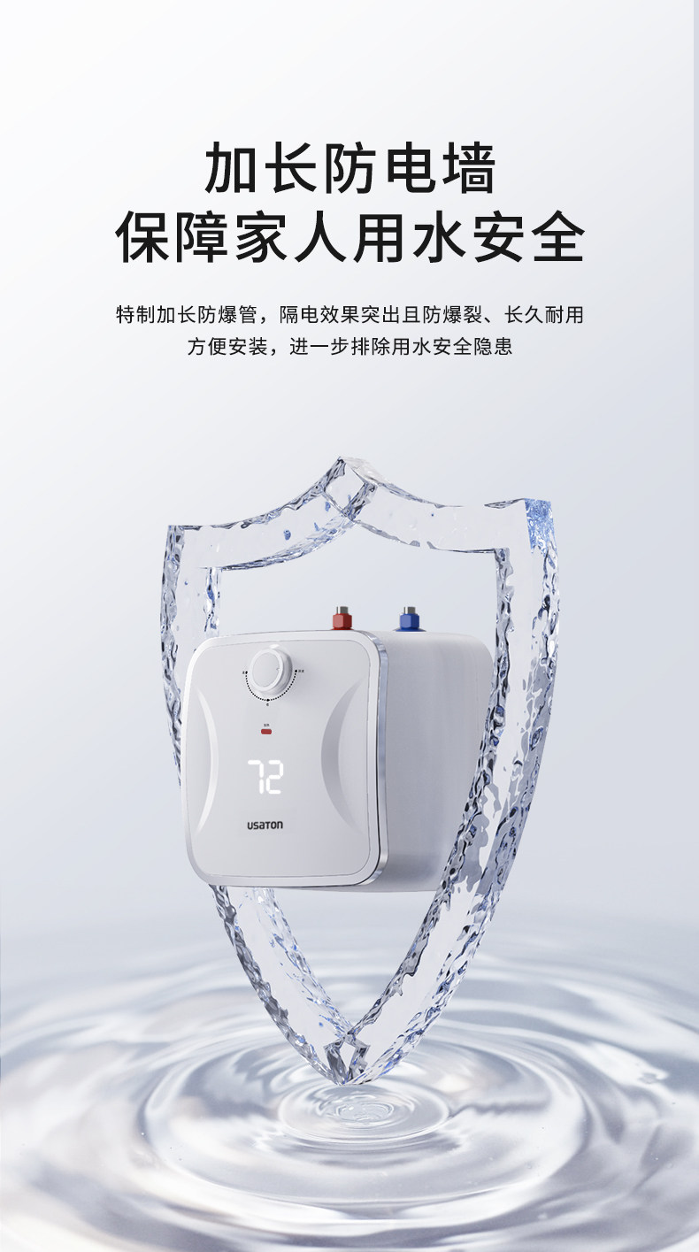 Ashidanton Small Kitchen Water Heater, Storage Type, for Home Kitchen and Bathroom, Under-Counter, Small Electric Water Heater, First-Class Energy Efficiency