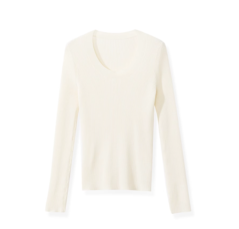 [Tec Machine Washable Wool]48-Count Yangzi Yarn U-Neck Ribbed Slim-Fit Slimming Knit Wool Base Shirt for Women