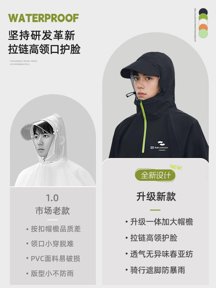 Color Classification Dark Night Black - Men's and Women's Style - [Extended Large Brim + Zippered High Neck + 150D Soft Pongee Fabric],Cloud White - Unisex - [Extended Brim + Zippered High Neck + 150D Soft Pongee Fabric],Light Fruit Green - Men's and Women's Models - [Extended Large Brim + Zipper High Neckline + 150D Soft Pongee Fabric]