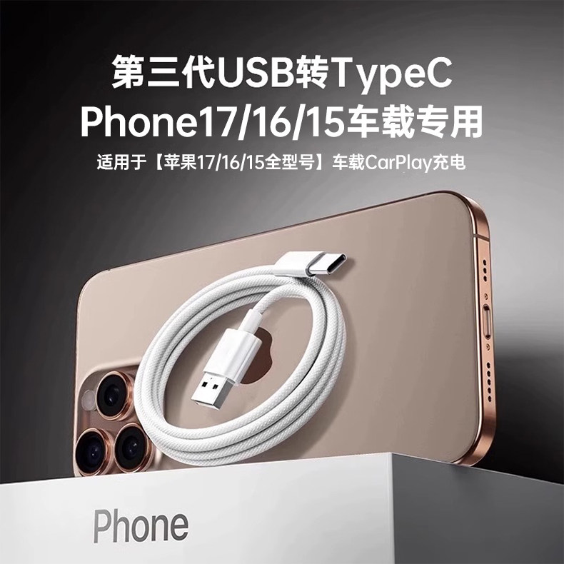 [Official Genuine Product] Suitable for Apple 17 Charging Cable, Car Fast Charging Data Cable, iPhone 16 Pro Max Fast Charging Dual Type-C 15 Adapter, USB to Mobile Phone Carplay C-Port Original Braided Pd