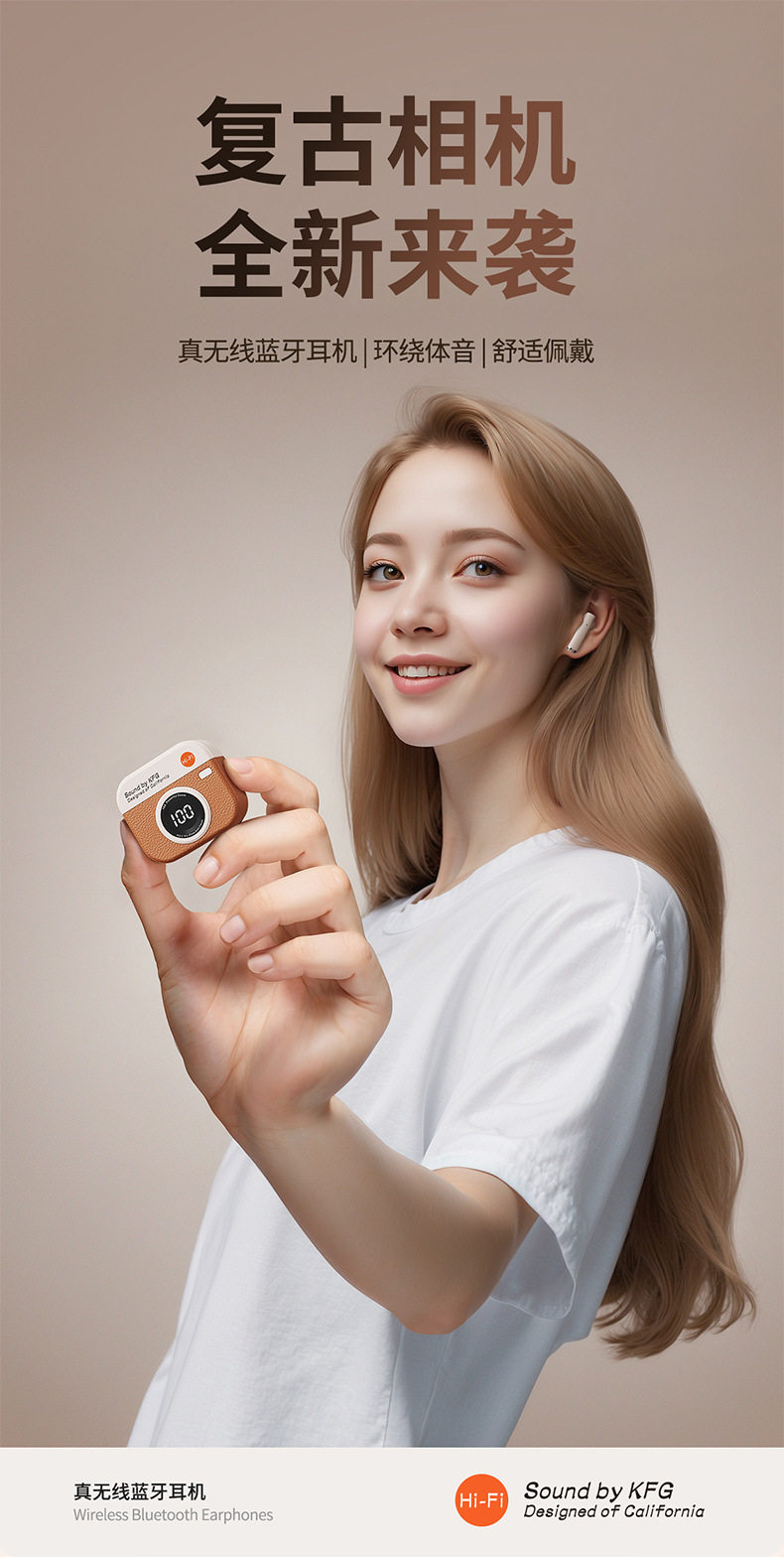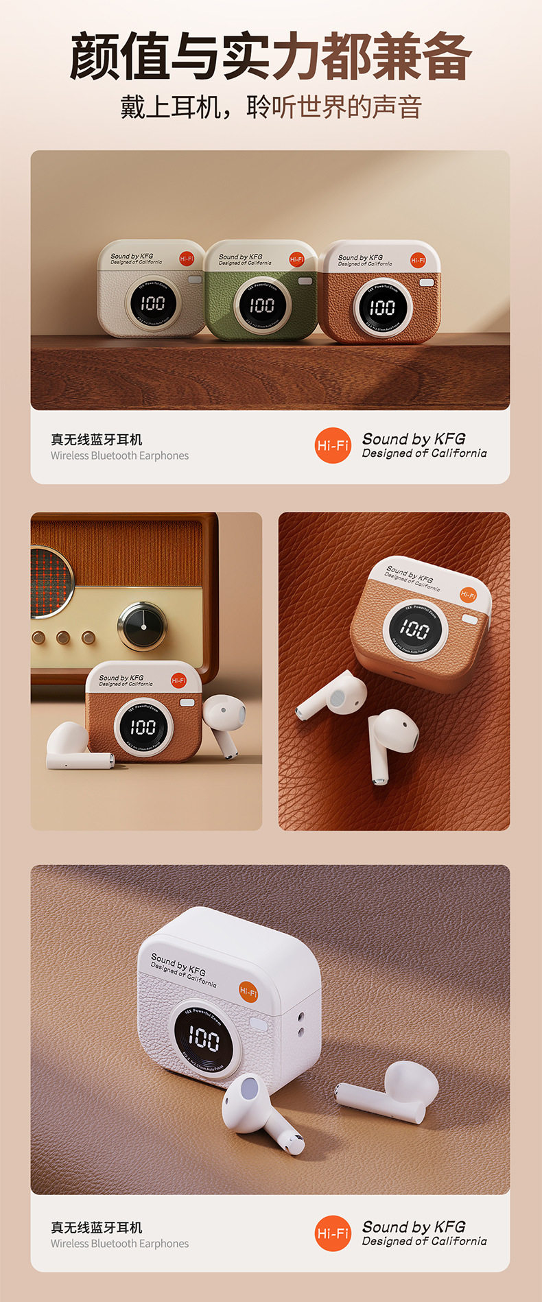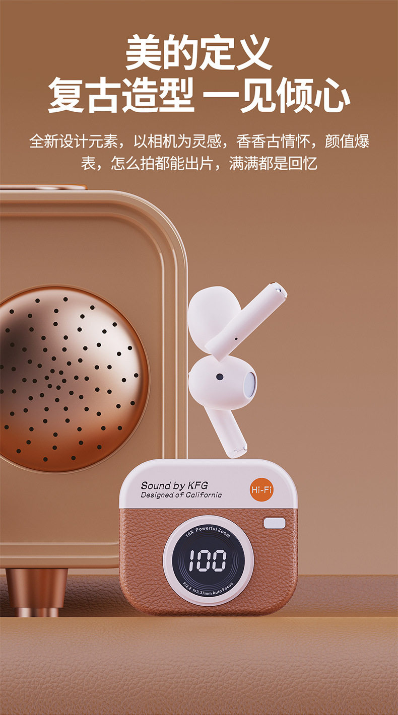 Berlin Sound, Germany sound effect retro camera Bluetooth headset 2025 new in-ear wireless digital display high quality