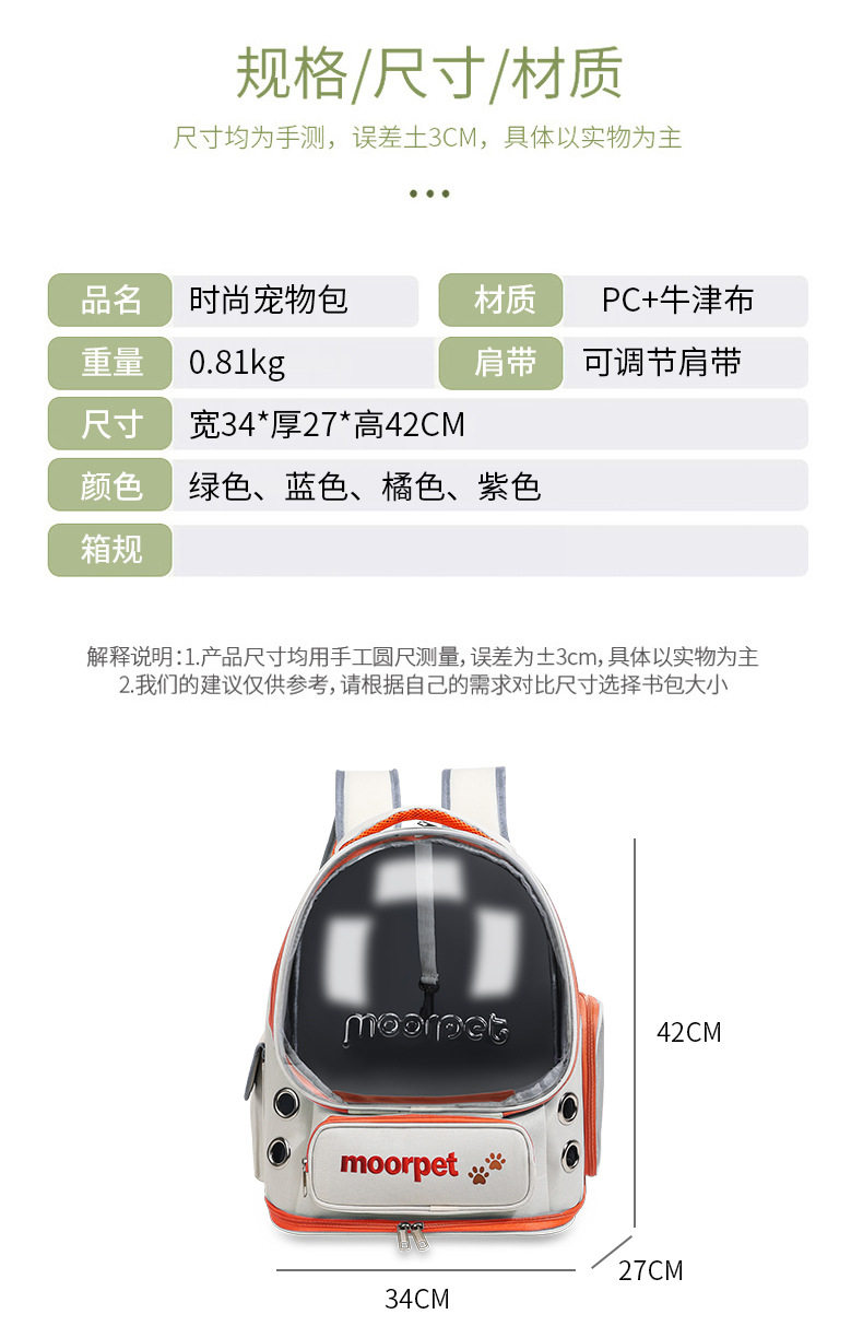 Applicable Sizes 34*27*42cm (Recommended for Cats under 8kg / Dogs under 5kg)
