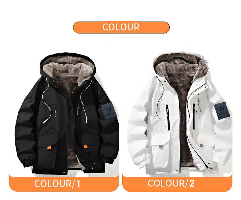 Winter Coat for Men, Fleece-Lined and Thickened, Trendy Brand Jacket, Men's Hooded Loose-Fitting Warm Cotton-Padded Jacket, Youth Parka