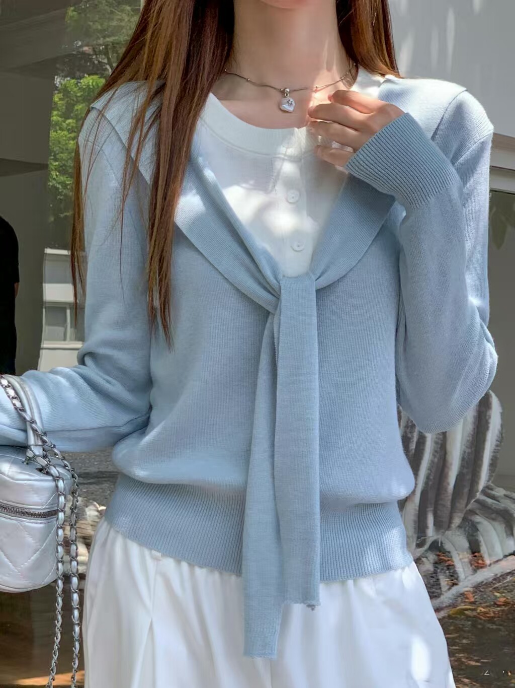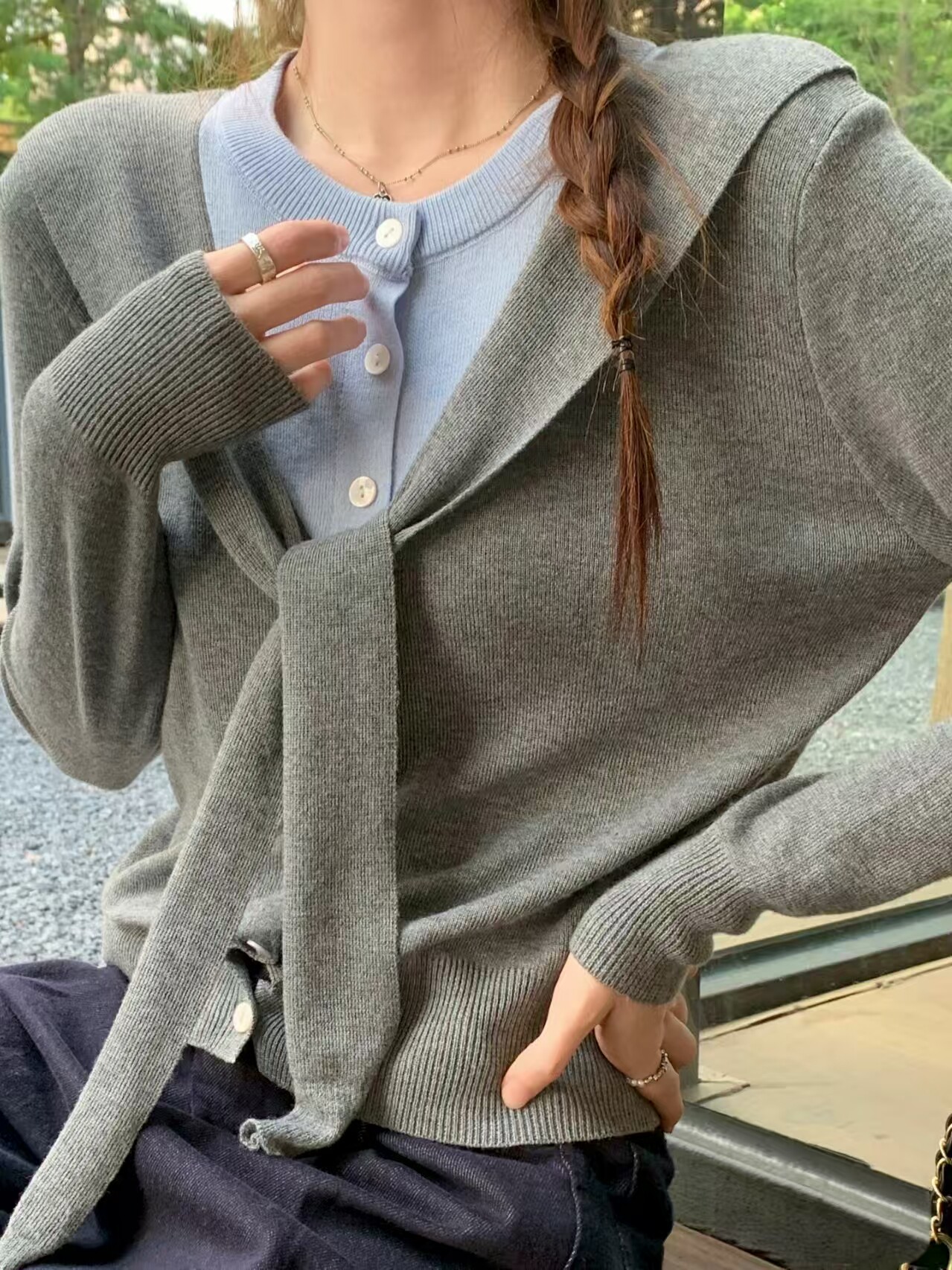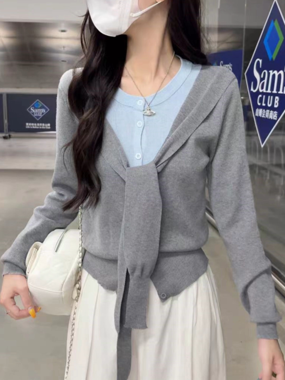 Korean Style Shawl Fake Two-Piece Knit Sweater for Women 2026 Early Spring New Loose Slimming Stylish Age-Reducing Long-Sleeve Top
