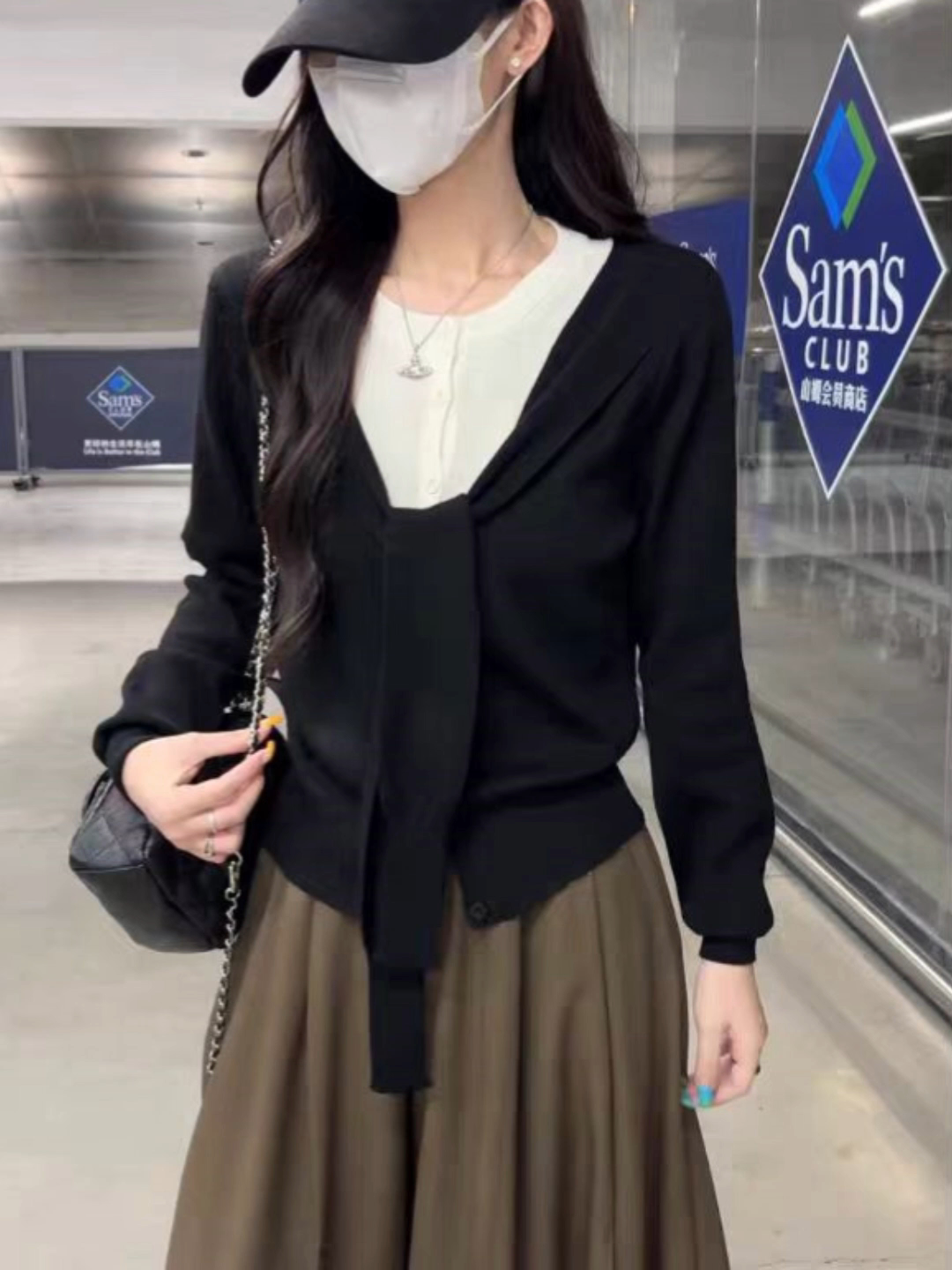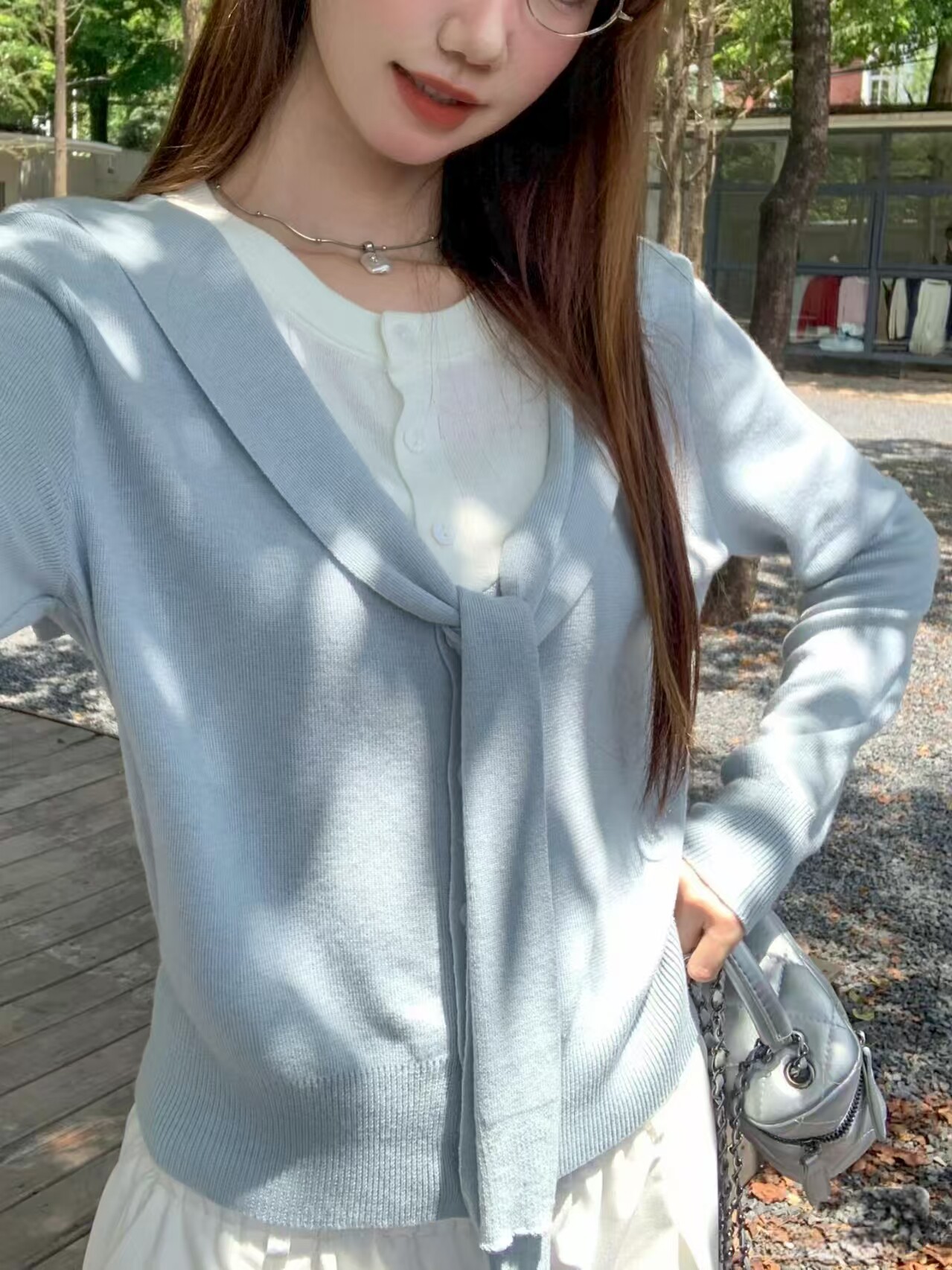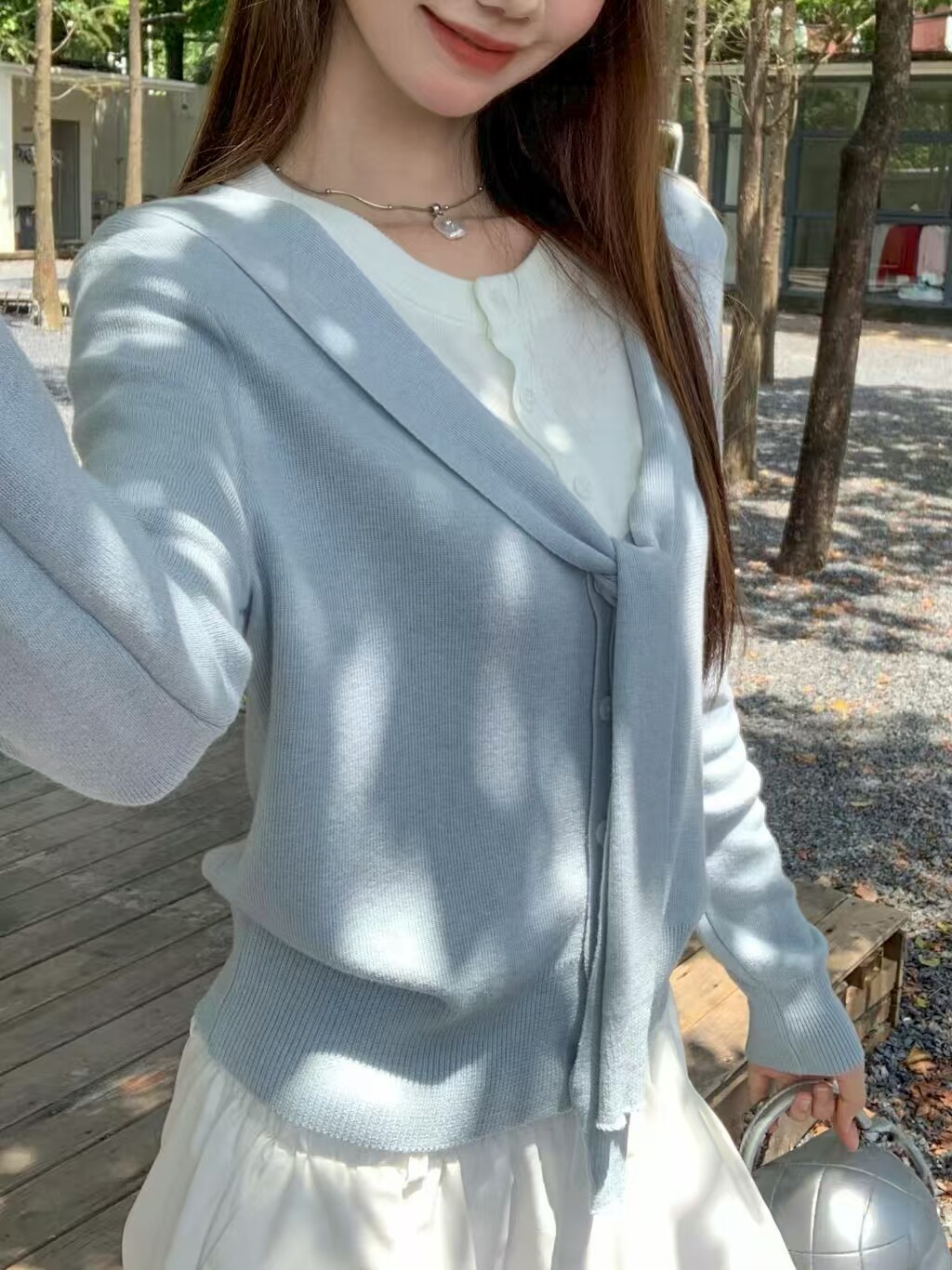 Korean Style Shawl Fake Two-Piece Knit Sweater for Women 2026 Early Spring New Loose Slimming Stylish Age-Reducing Long-Sleeve Top
