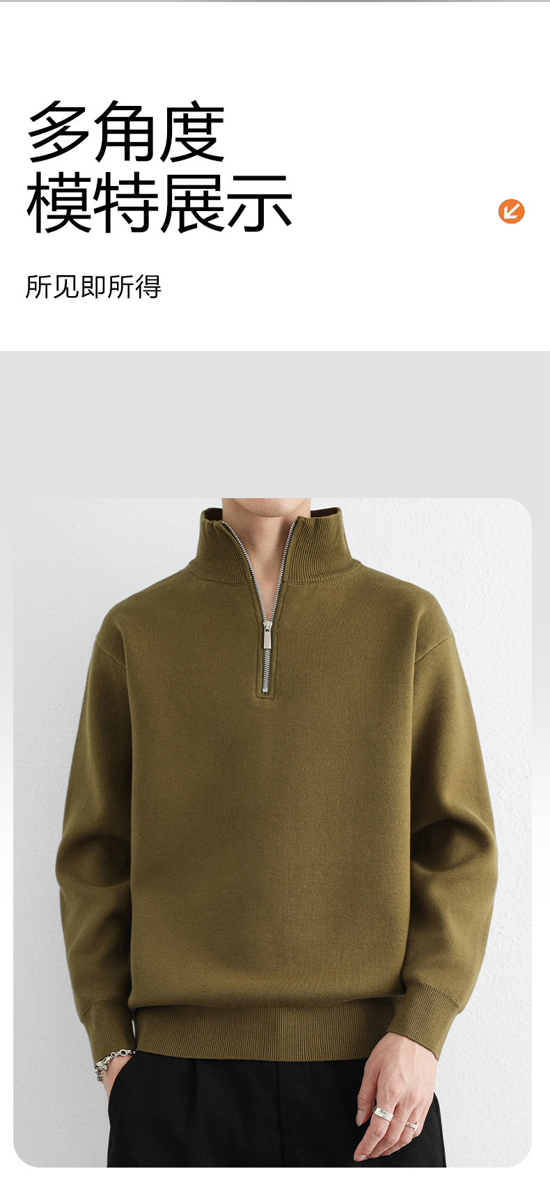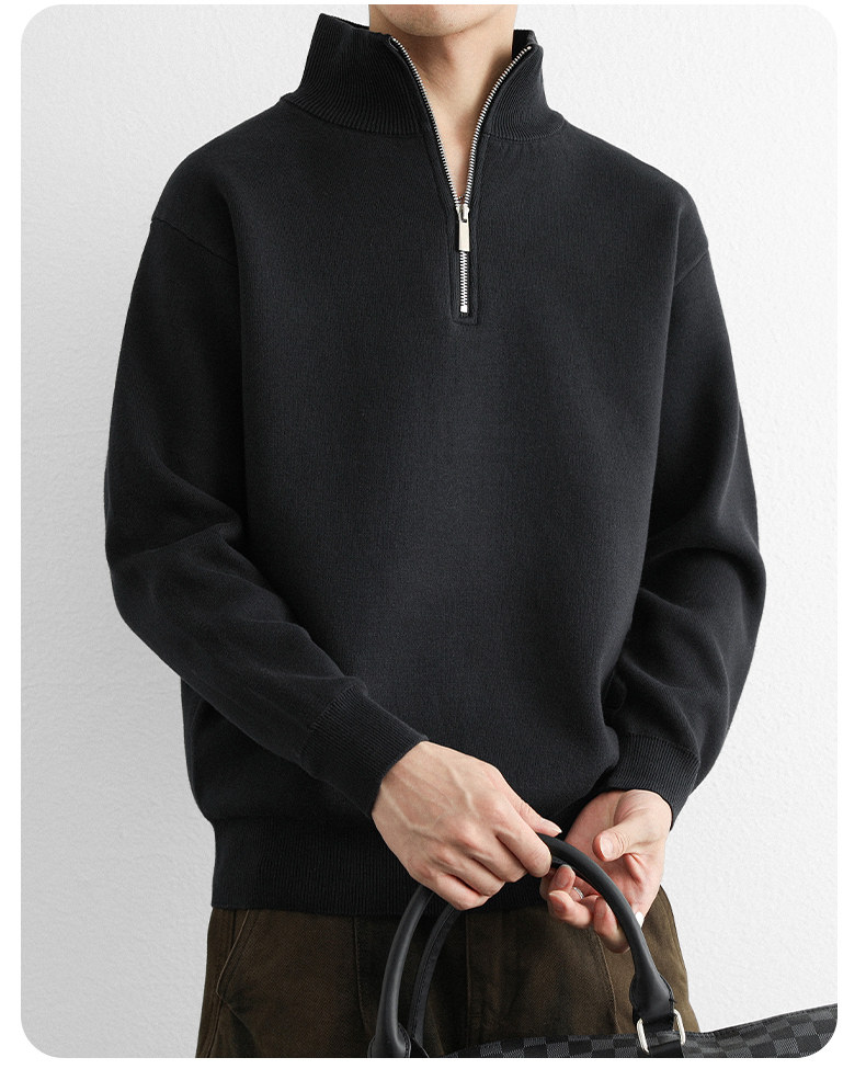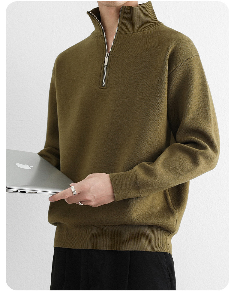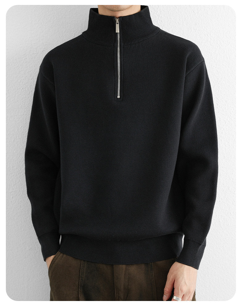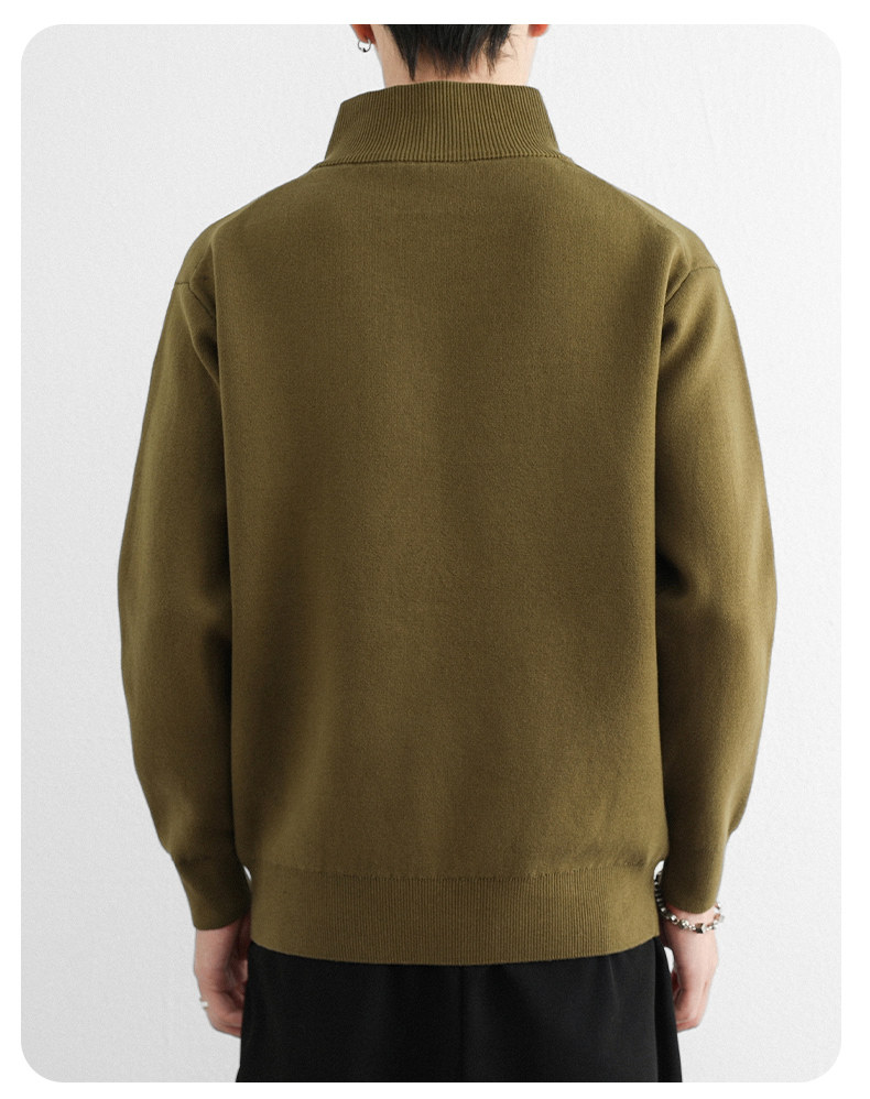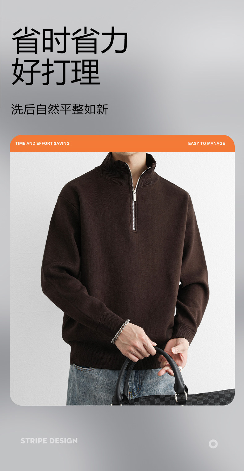 Designed pure cotton half-zip stand-up collar sweater for men in autumn and winter retro loose thickened sweater warm sweater