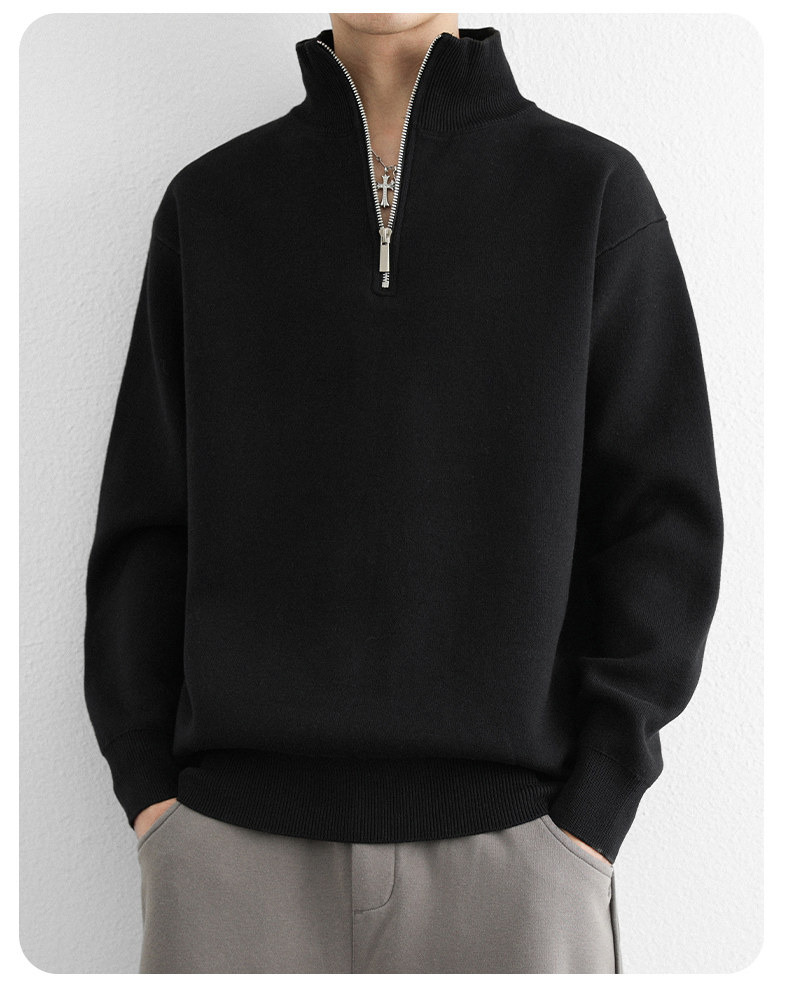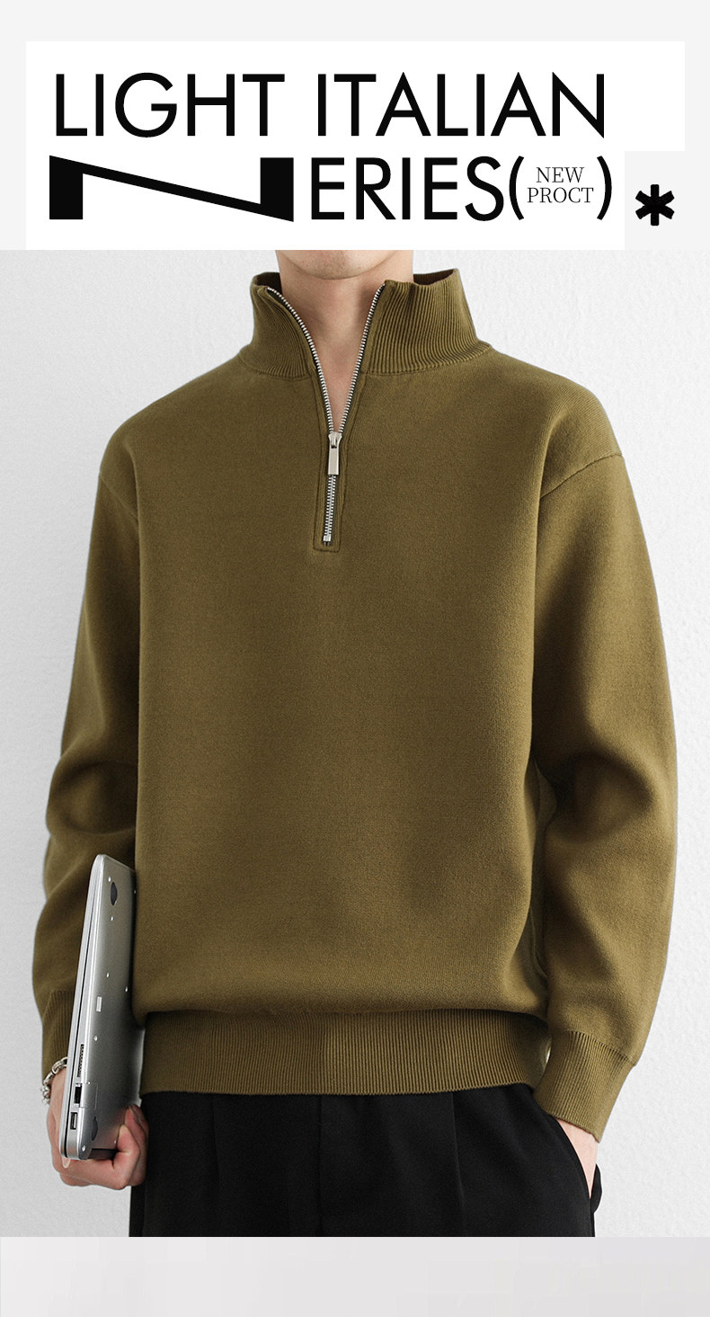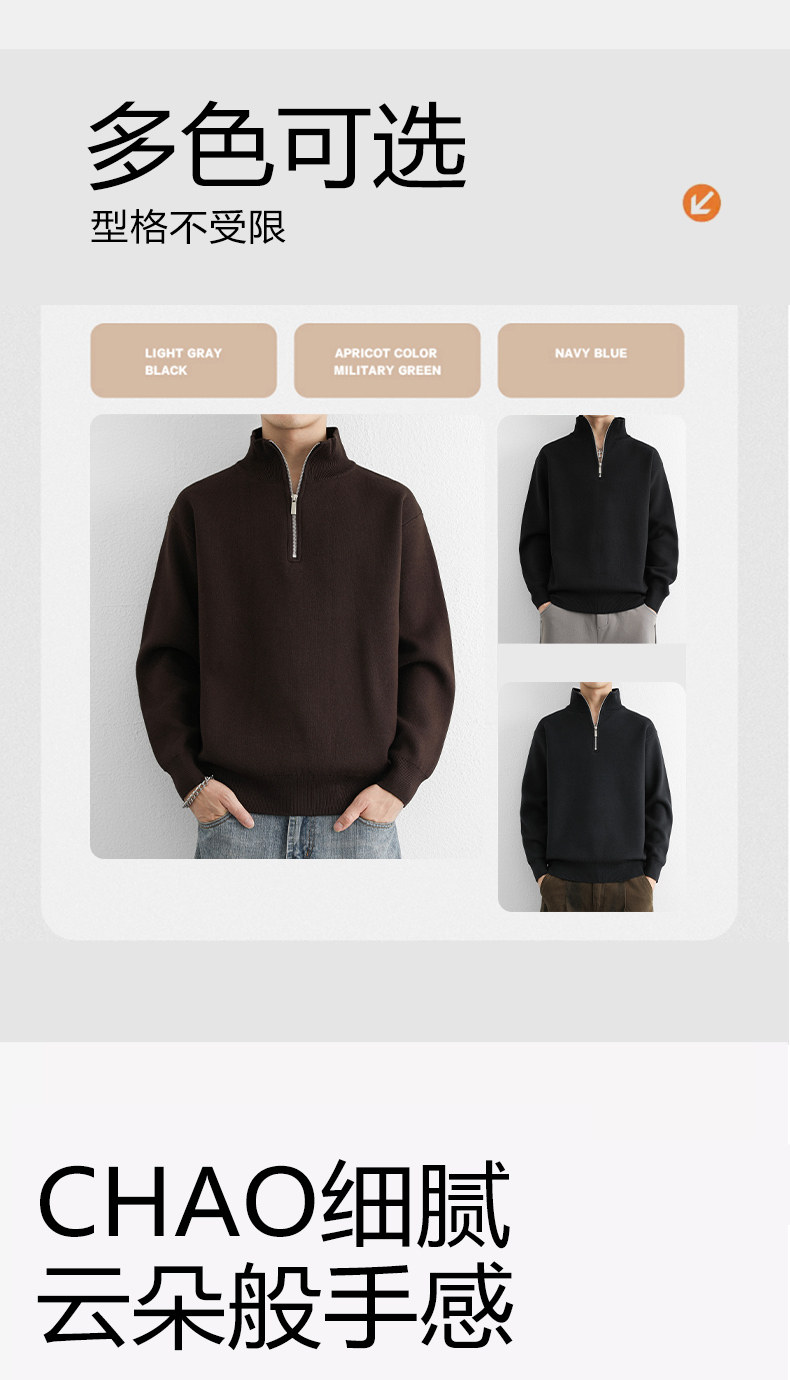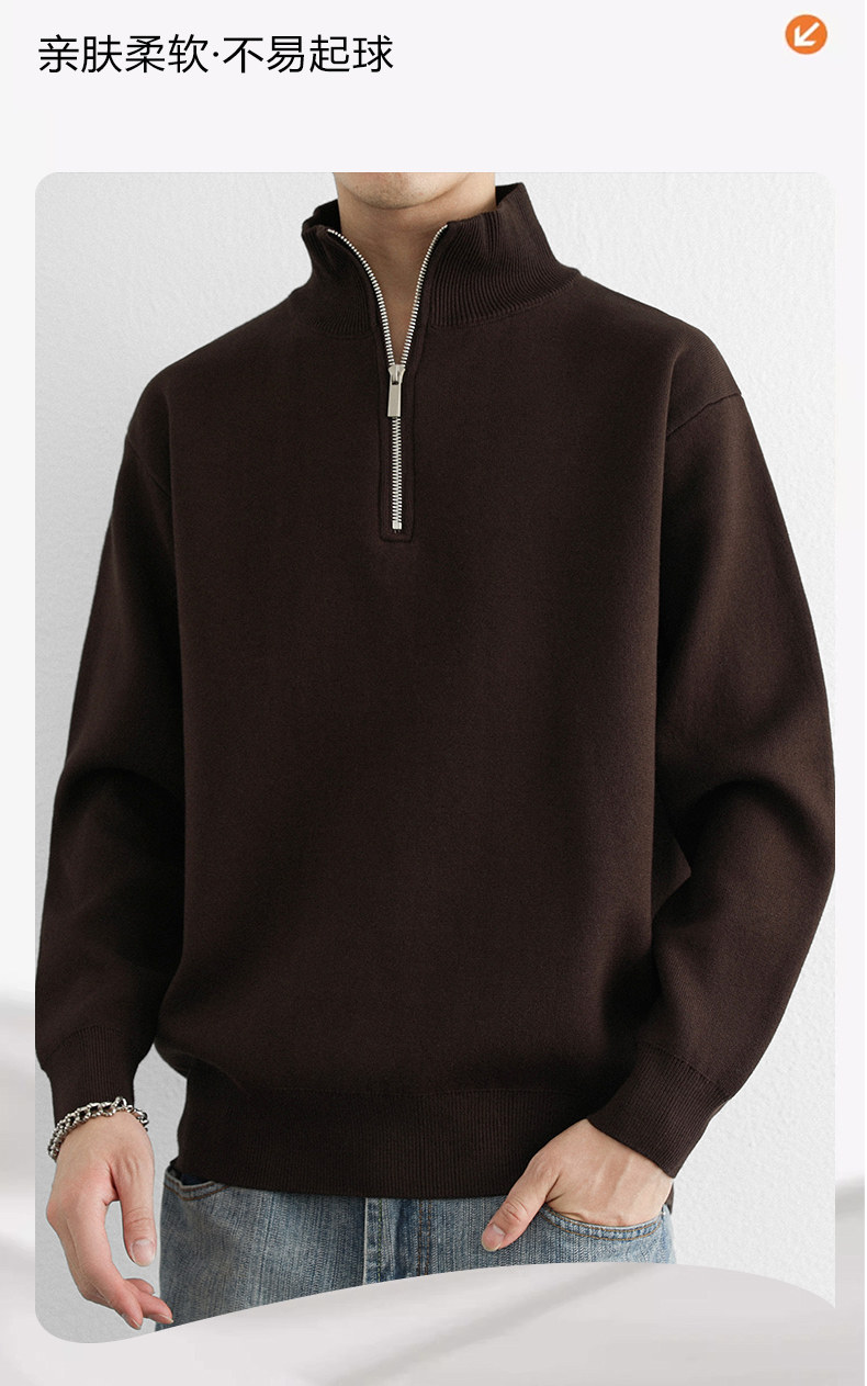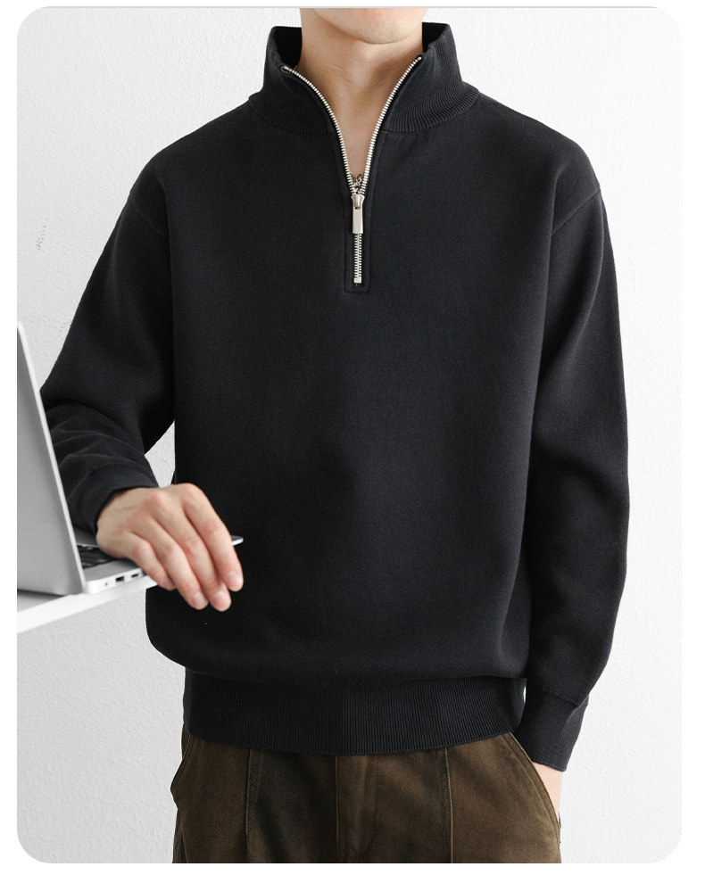Designed pure cotton half-zip stand-up collar sweater for men in autumn and winter retro loose thickened sweater warm sweater