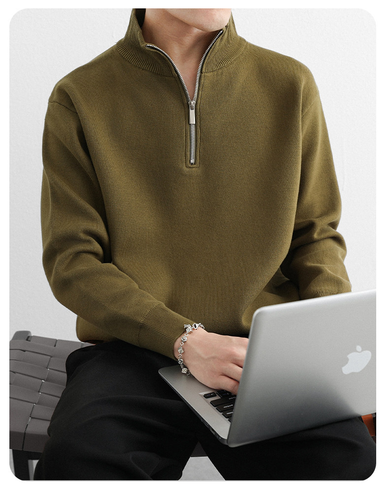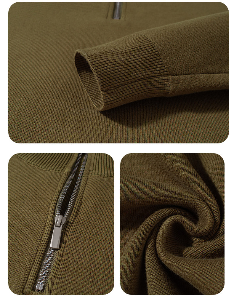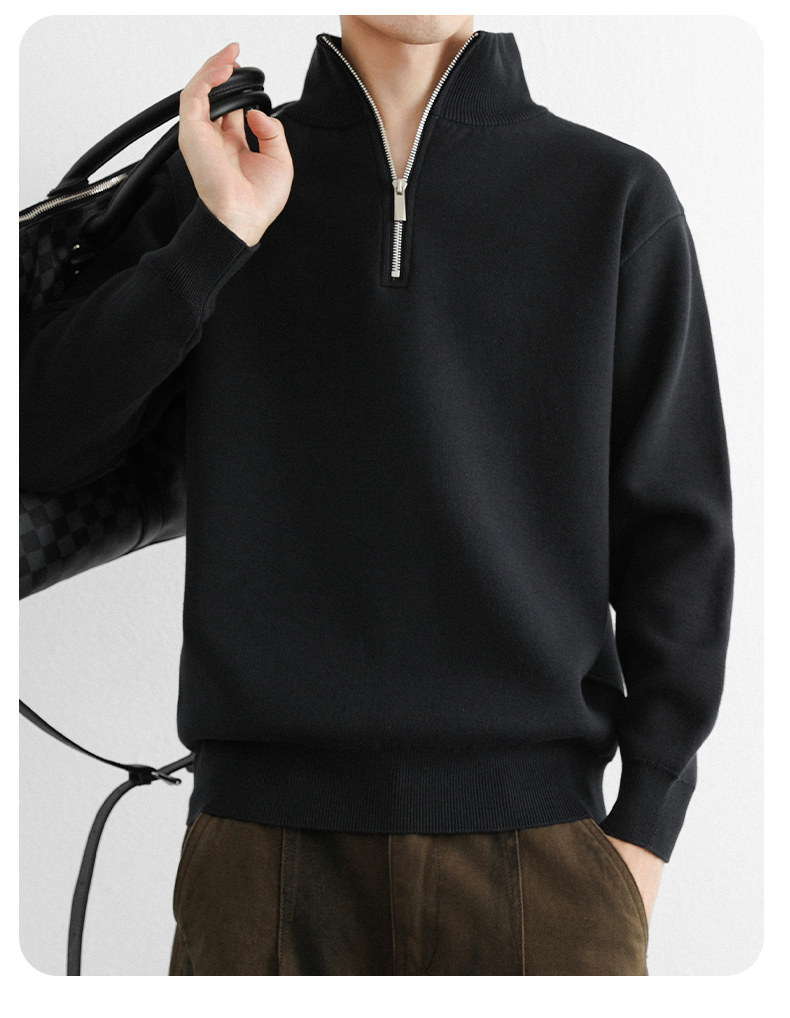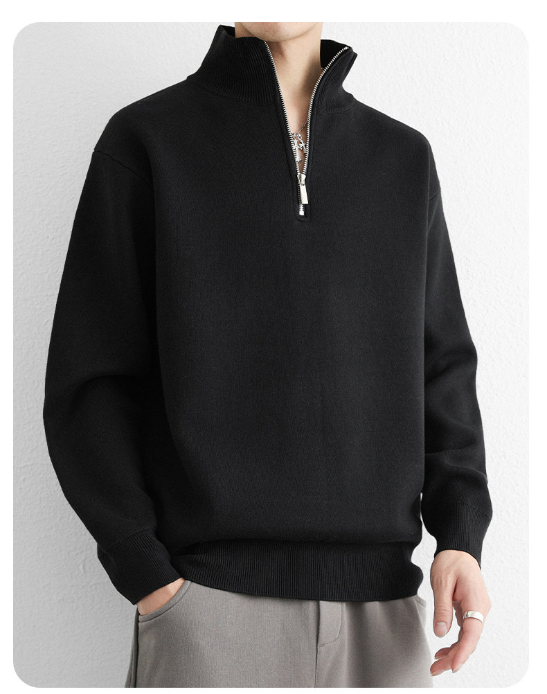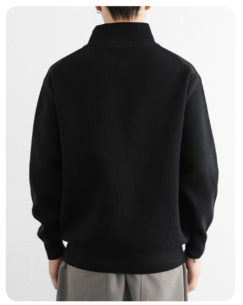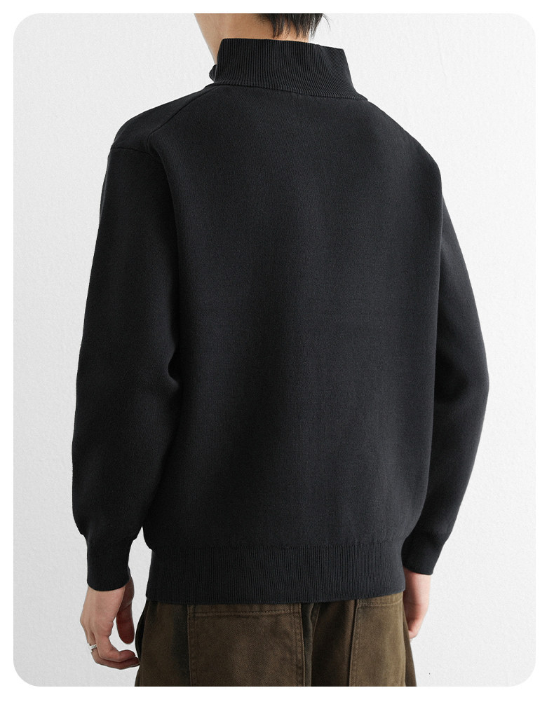 Designed pure cotton half-zip stand-up collar sweater for men in autumn and winter retro loose thickened sweater warm sweater