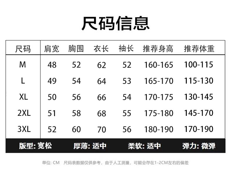 China (cm) 165 / 88-90 170 / 96-98 175 / 108-110 180 / 118-122 185 / 126-130
