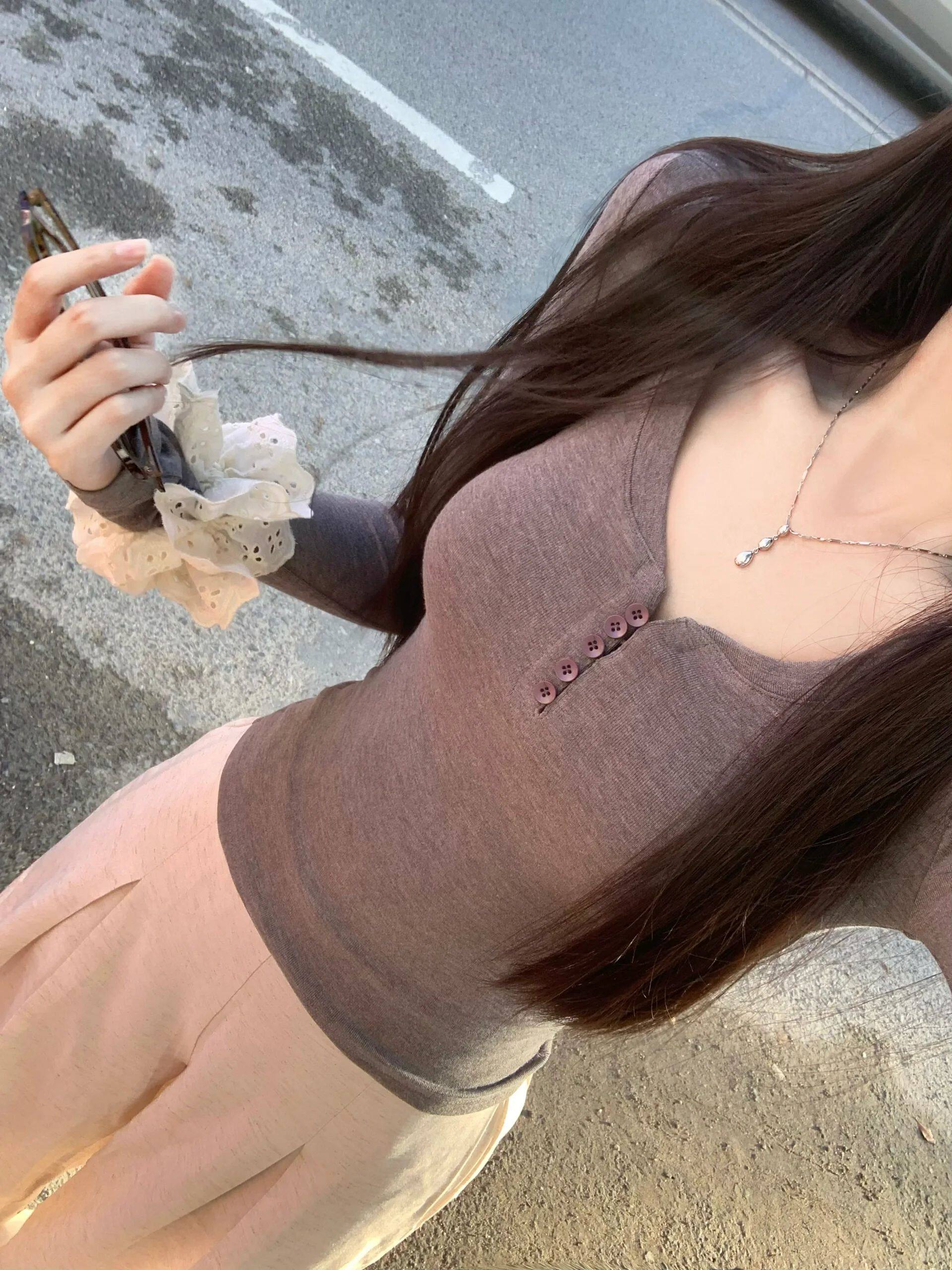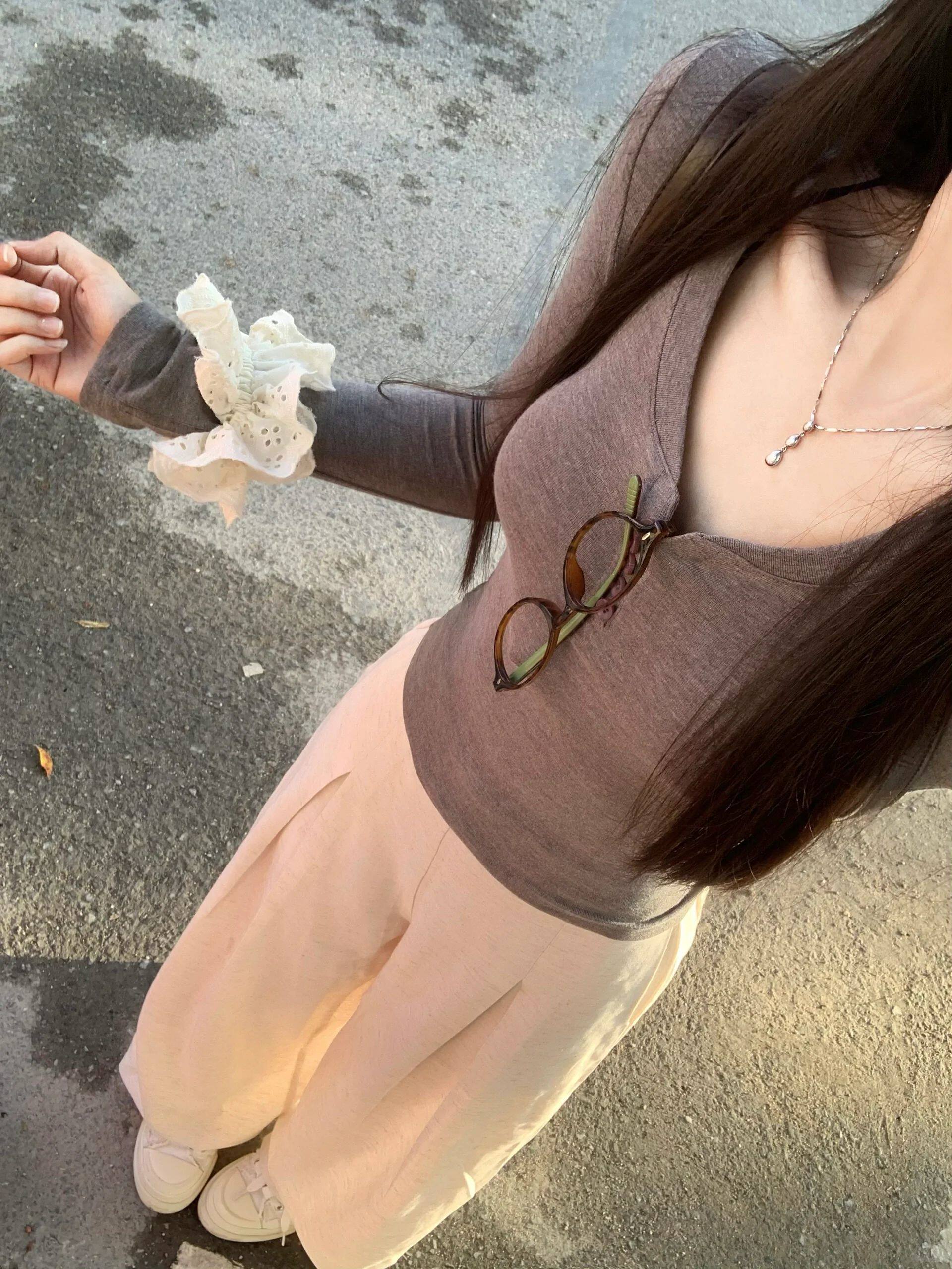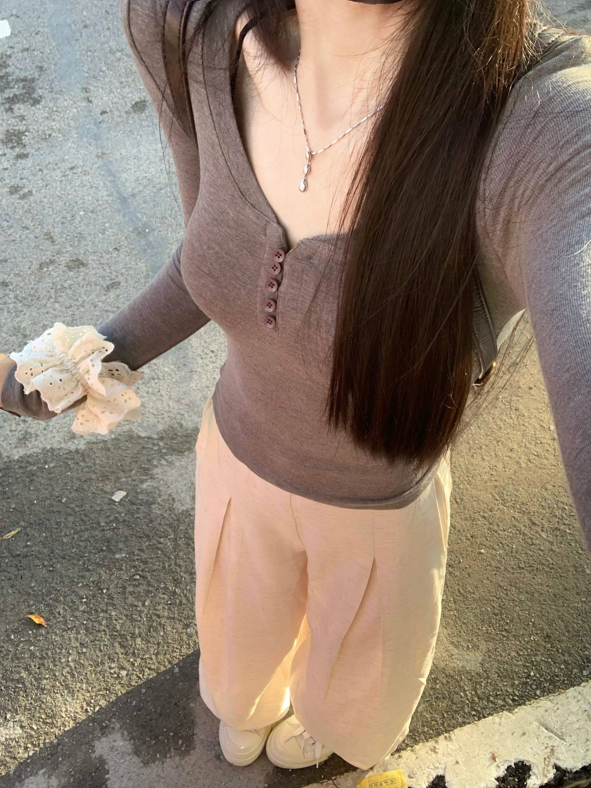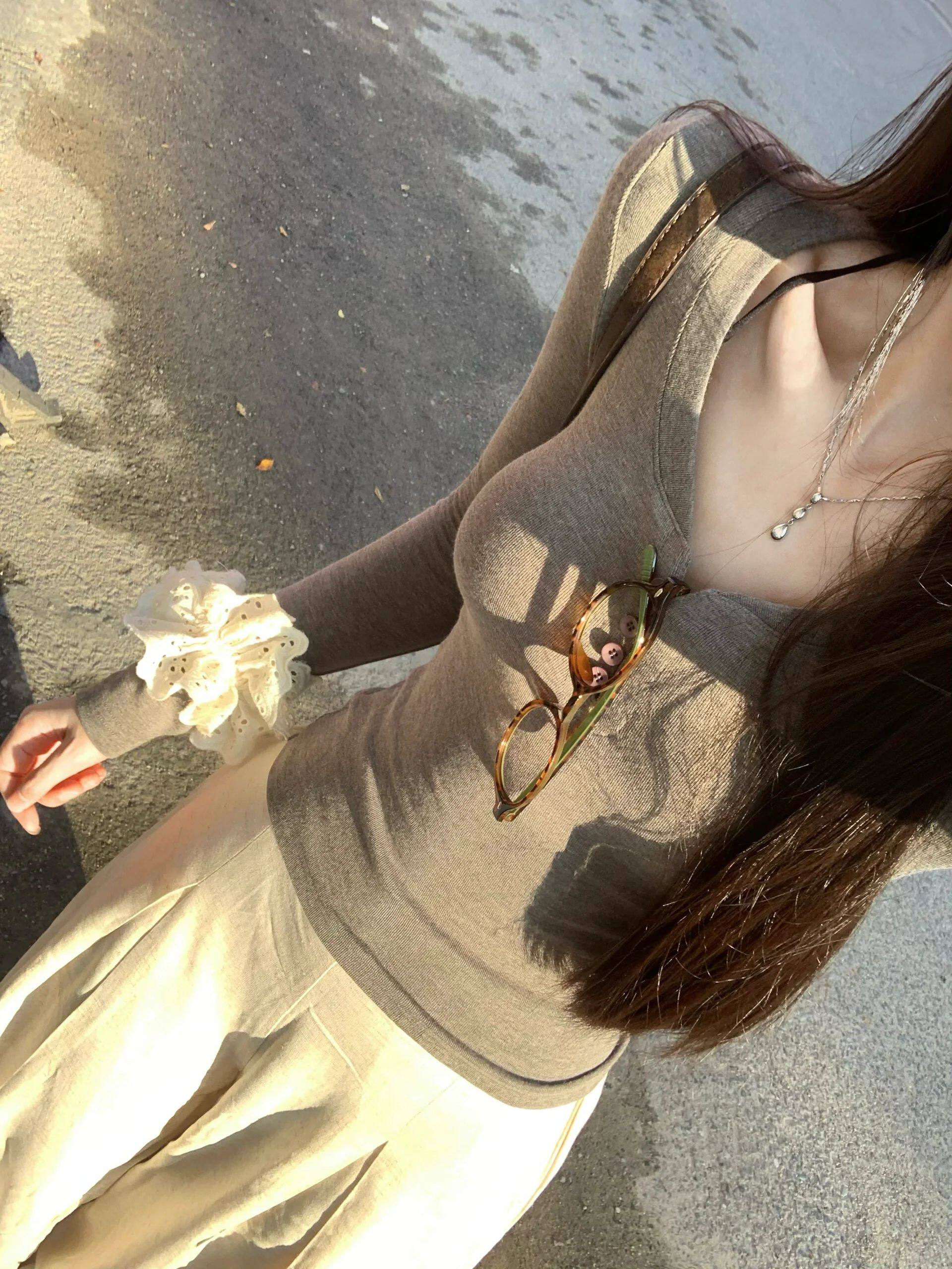 Trendy and Sexy V-Neck Long-Sleeve T-Shirt for Women, Autumn and Winter Design, Unique and Slim-Fitting Inner Layer Top