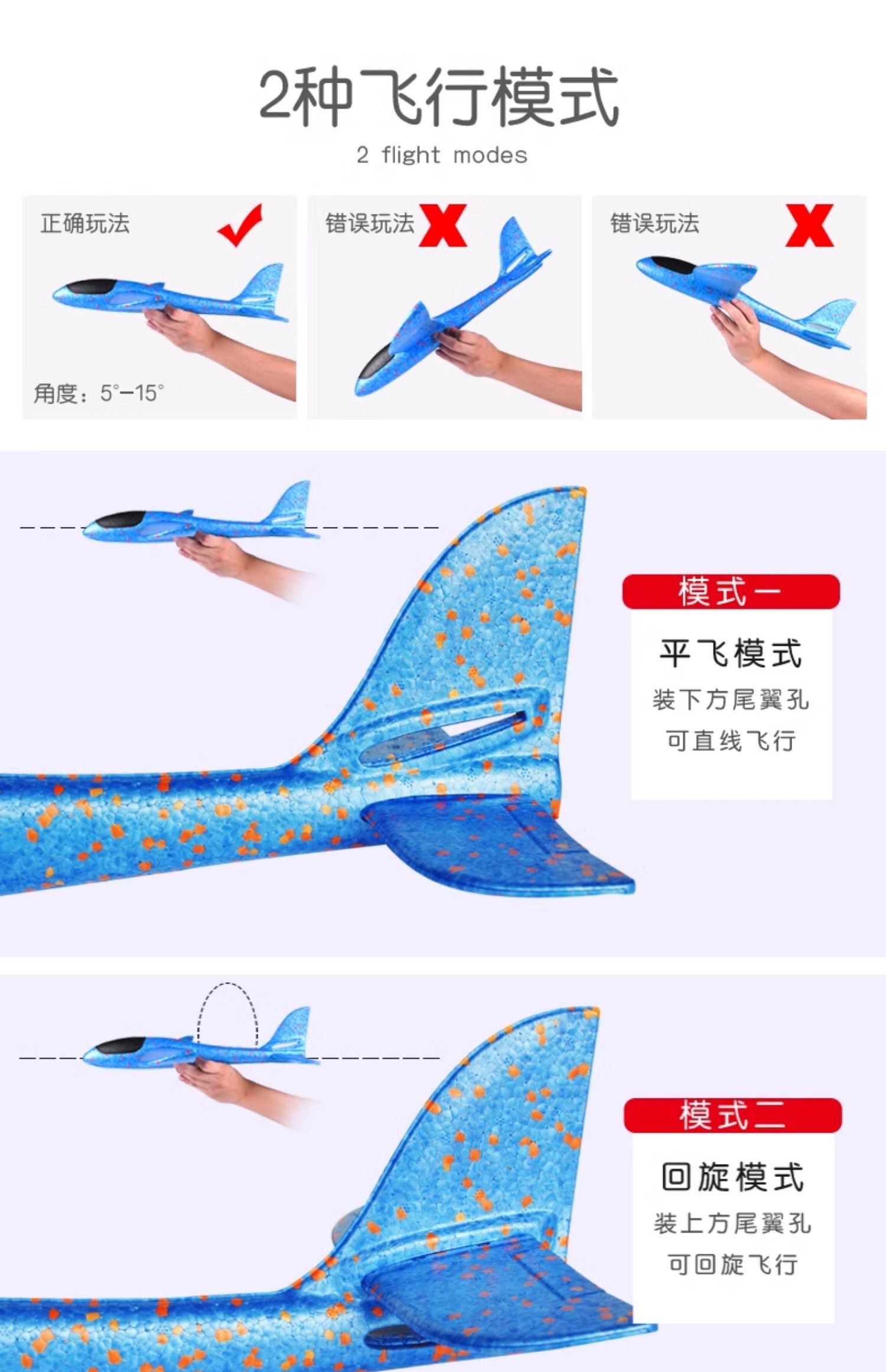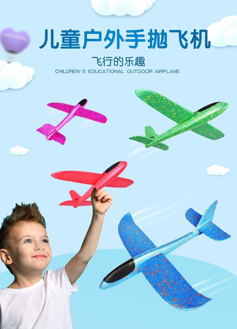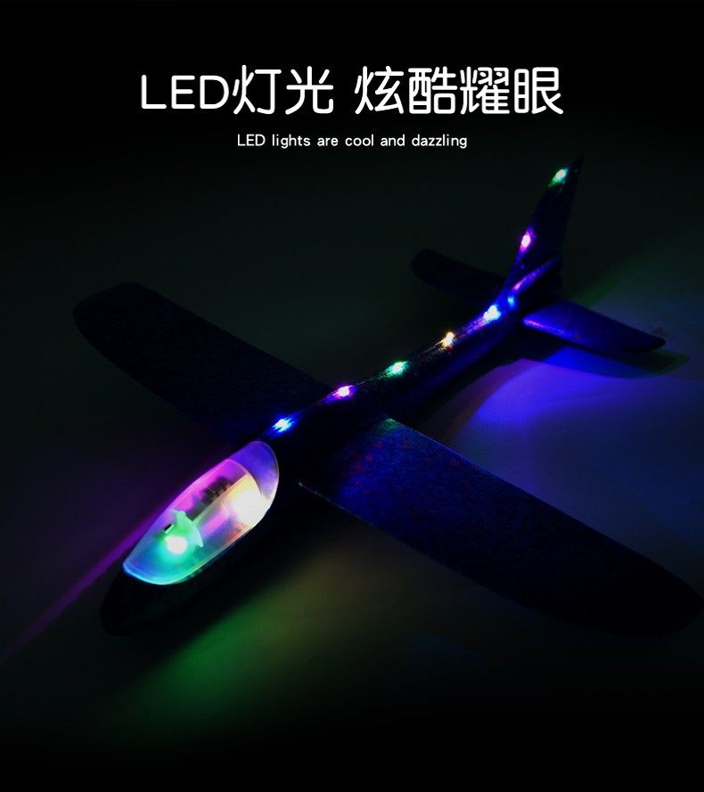 49cm Large Hand-Thrown Airplane Stunt Spinning Foam Thickened Airplane with Lights Children's Parent-Child Outdoor Interactive Toy