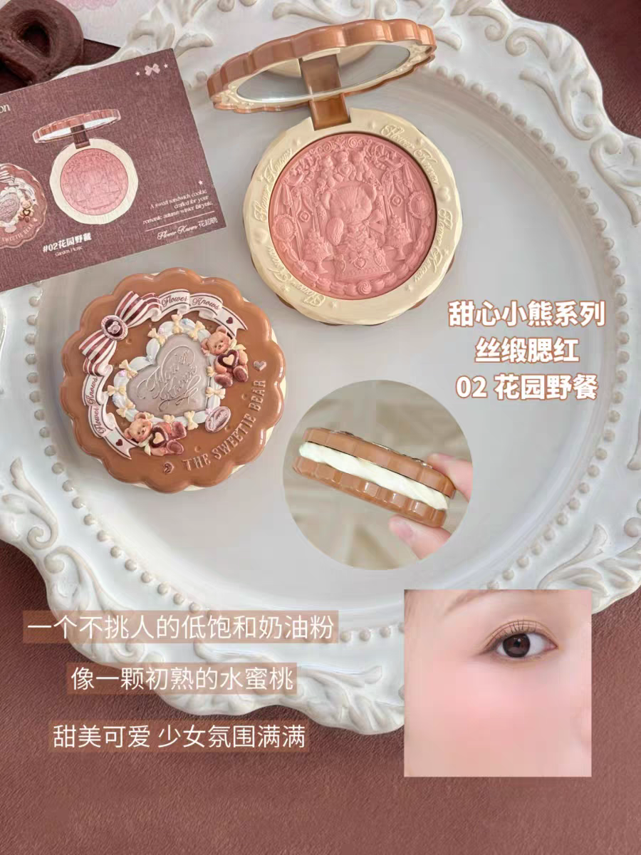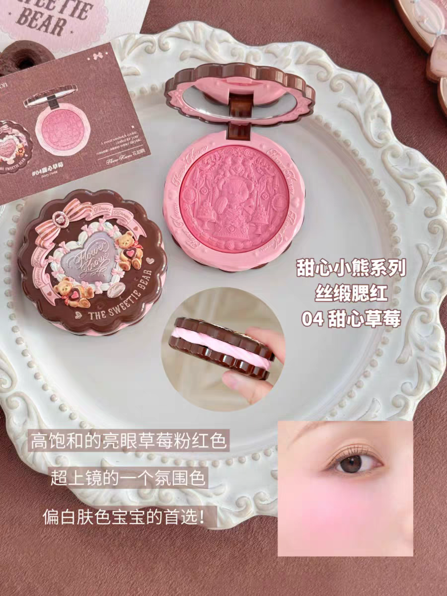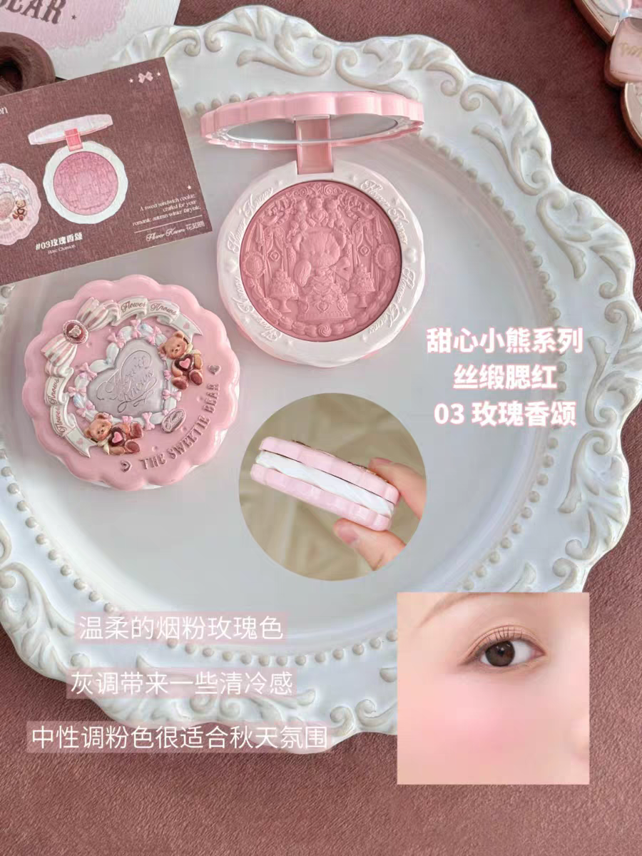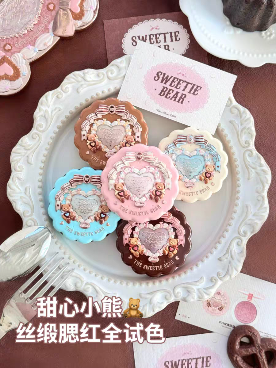 Product Name Flower Knows Sweetheart Bear Series Silk Satin Blush 01 Almond Cookie