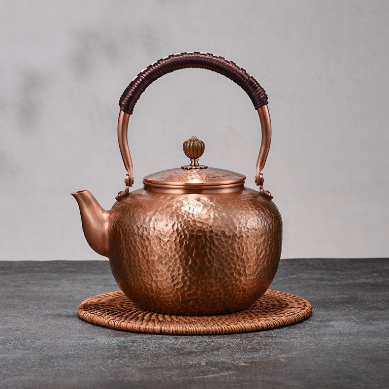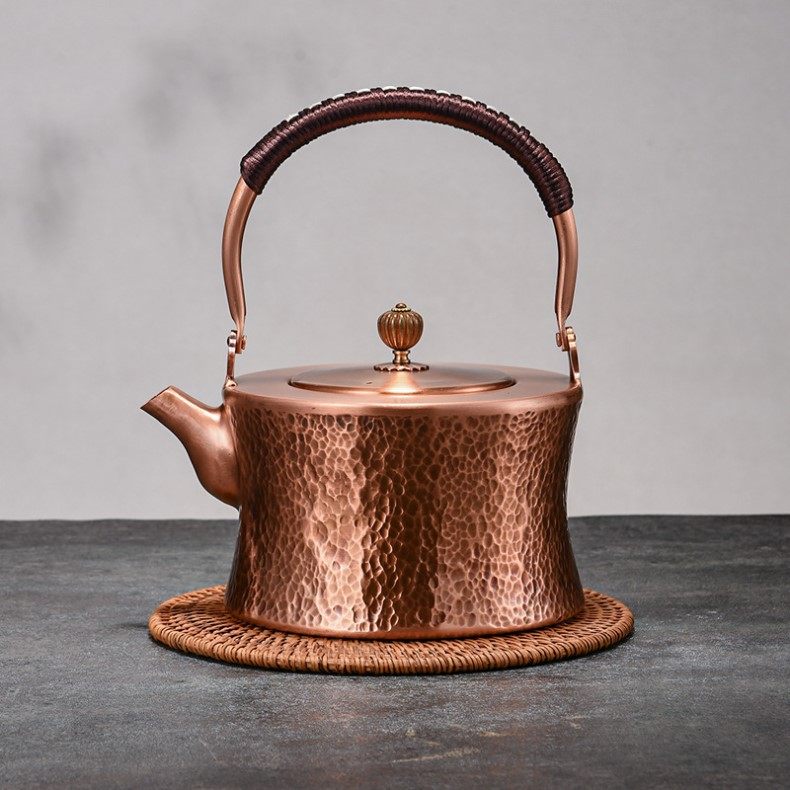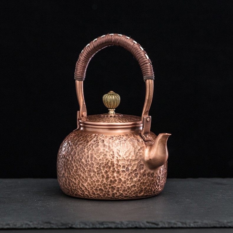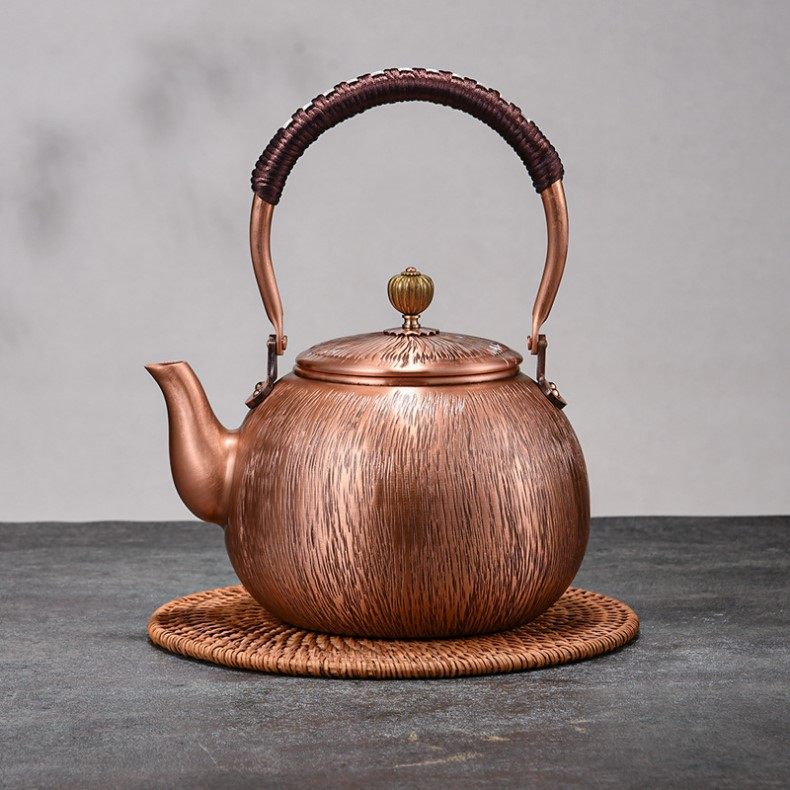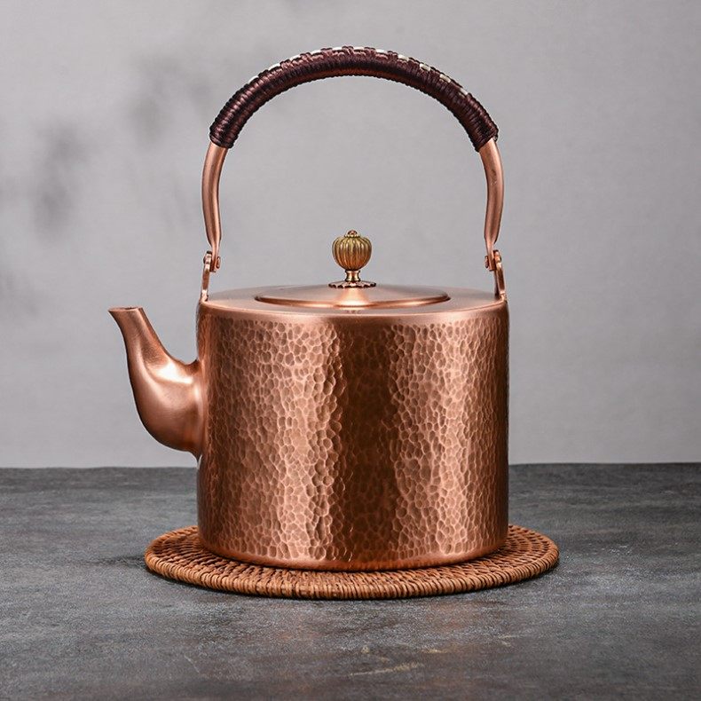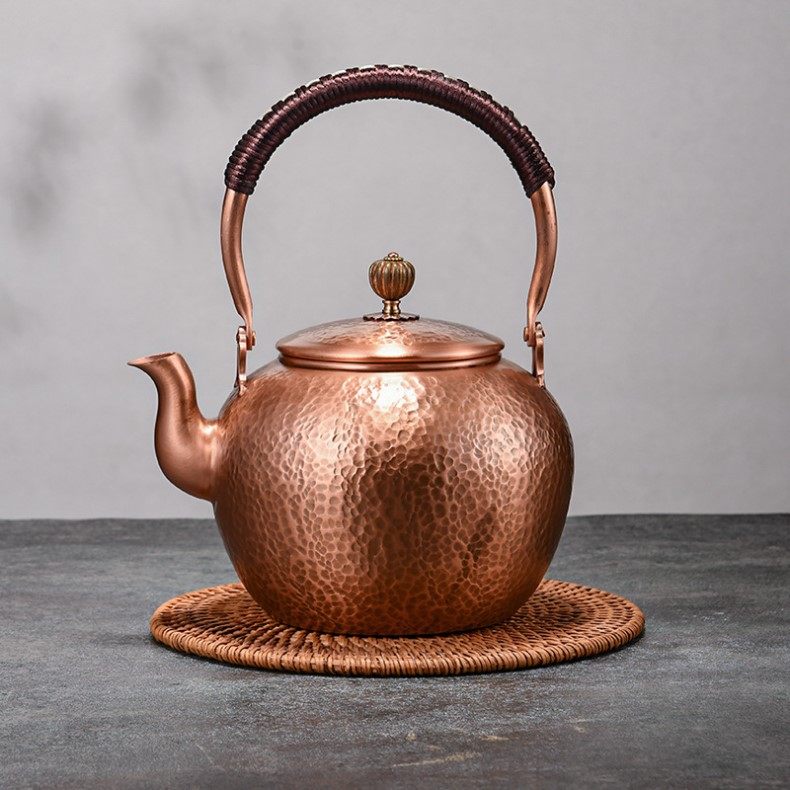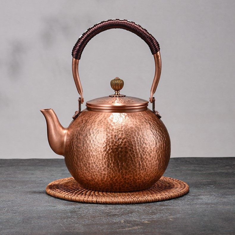 Purple Copper Kettle for Boiling Water and Brewing Tea, Handmade Pure Copper Teapot, Red Copper Household Tea Brewing Kettle with Handle, Tea Set