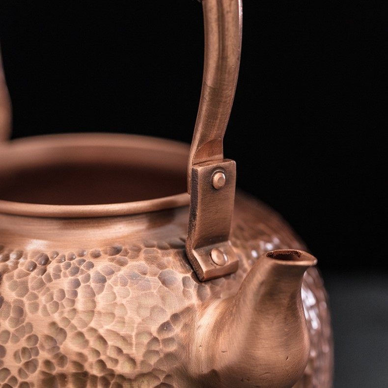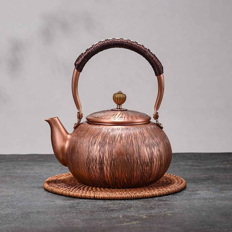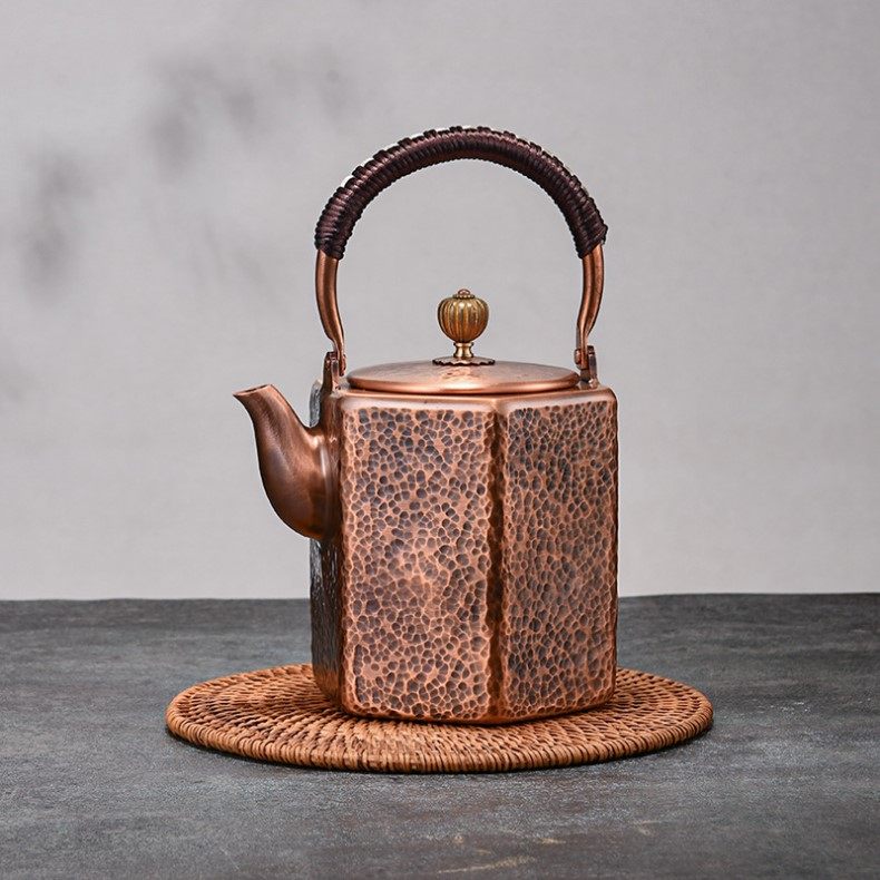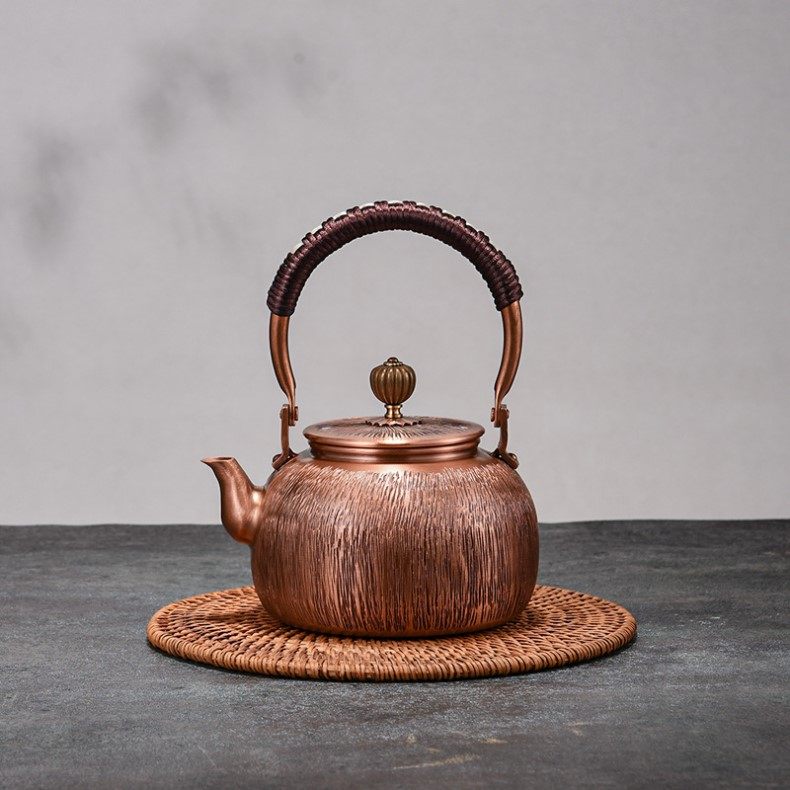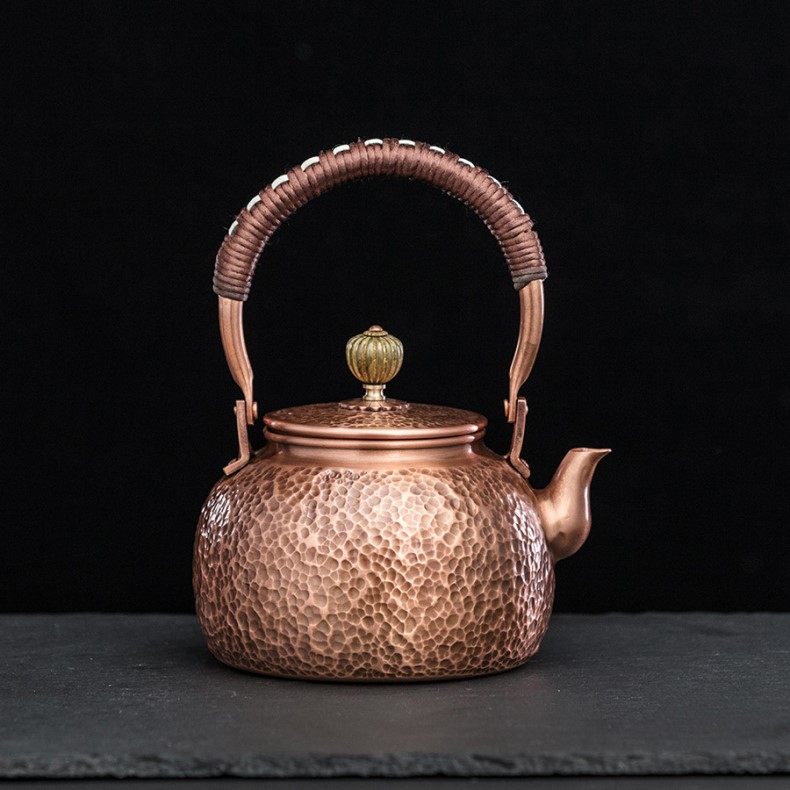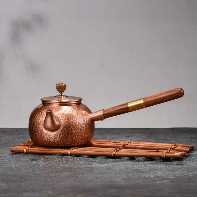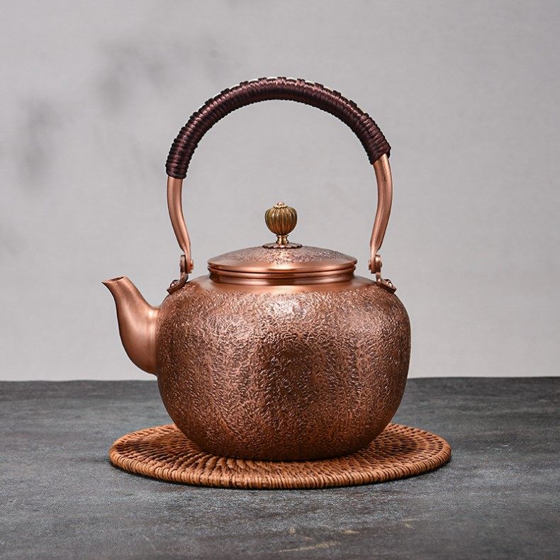 Purple Copper Kettle for Boiling Water and Brewing Tea, Handmade Pure Copper Teapot, Red Copper Household Tea Brewing Kettle with Handle, Tea Set