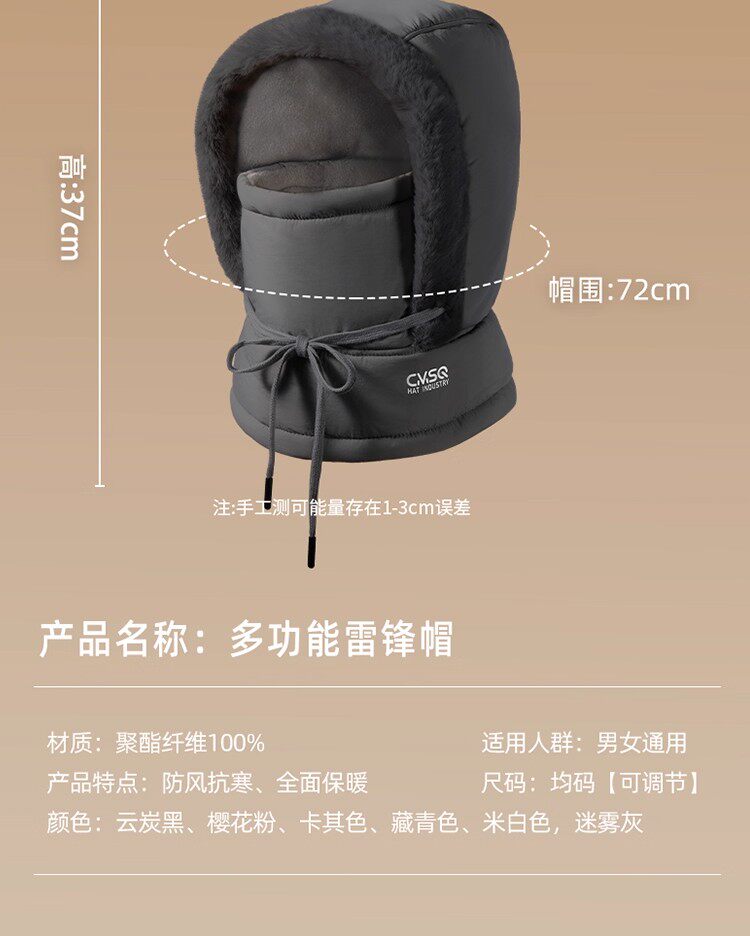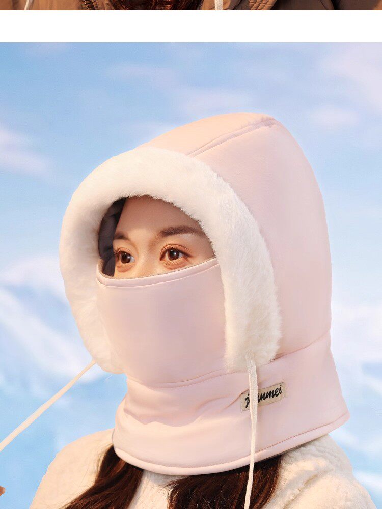 2025 New Winter Warm Hat Women's Ear Protection Plus Velvet Thickened Coldproof and Windproof Mask Integrated Cycling Lei Feng Hat