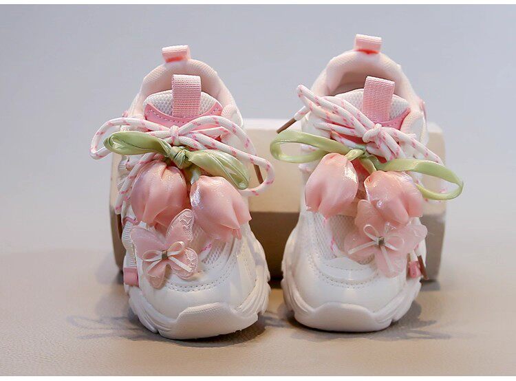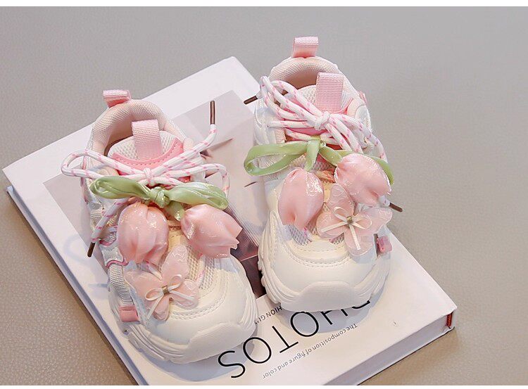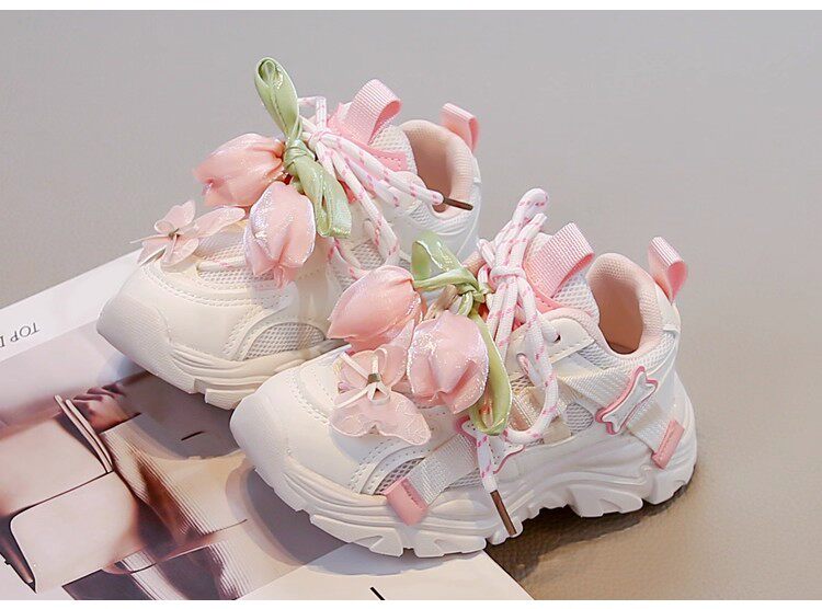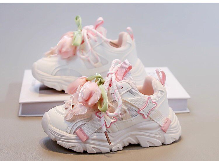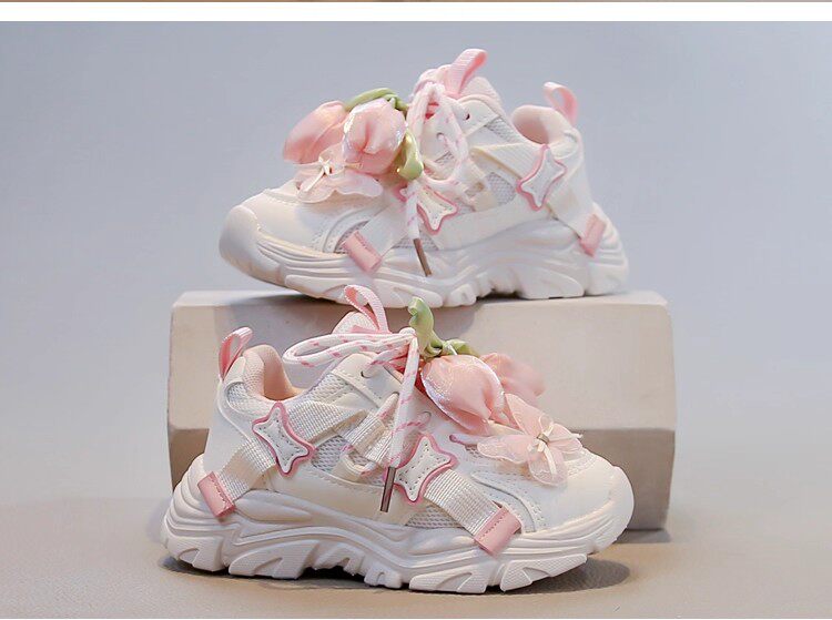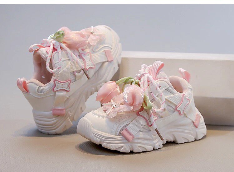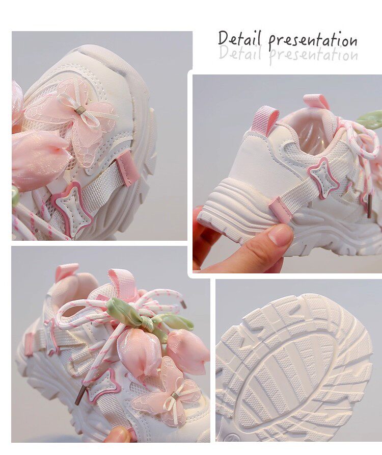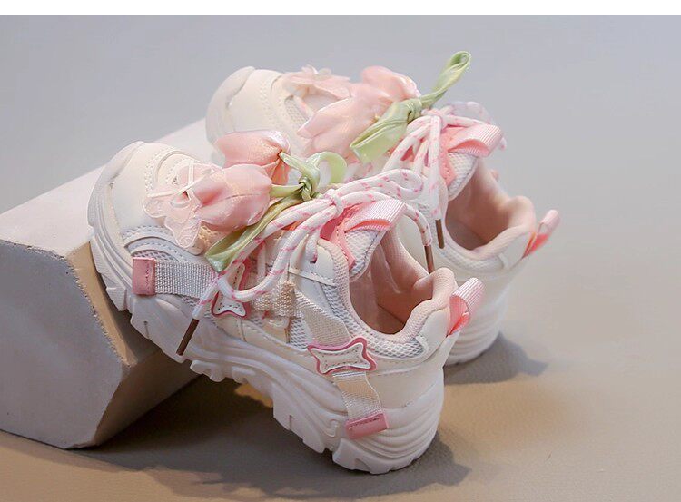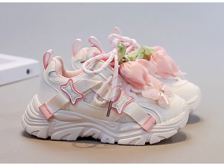 Dhwa Girls' Sports Shoes 2025 Spring and Autumn New Style Mesh Breathable Soft Sole Non-Slip Bowknot Casual Dad Shoes Trendy