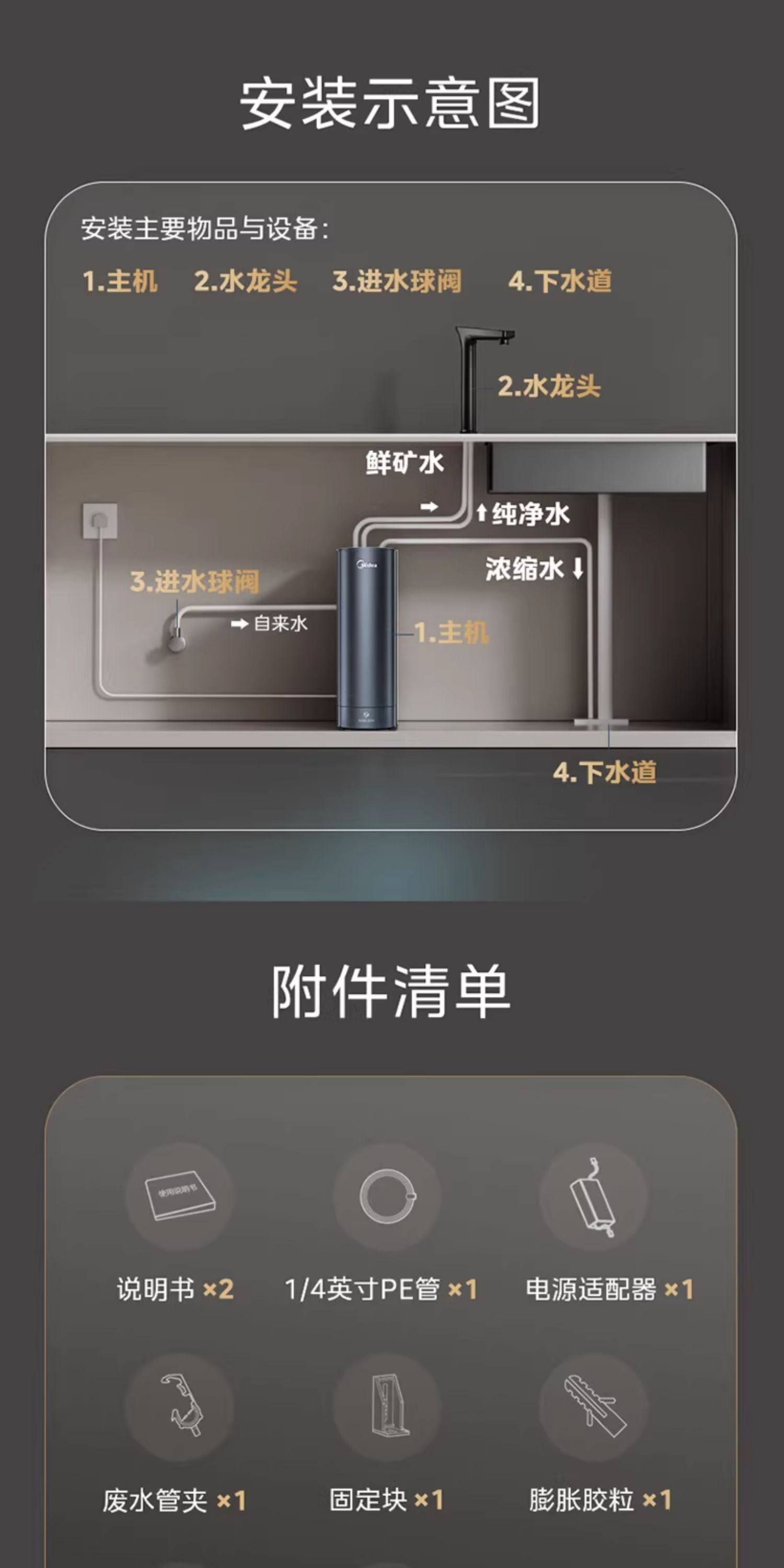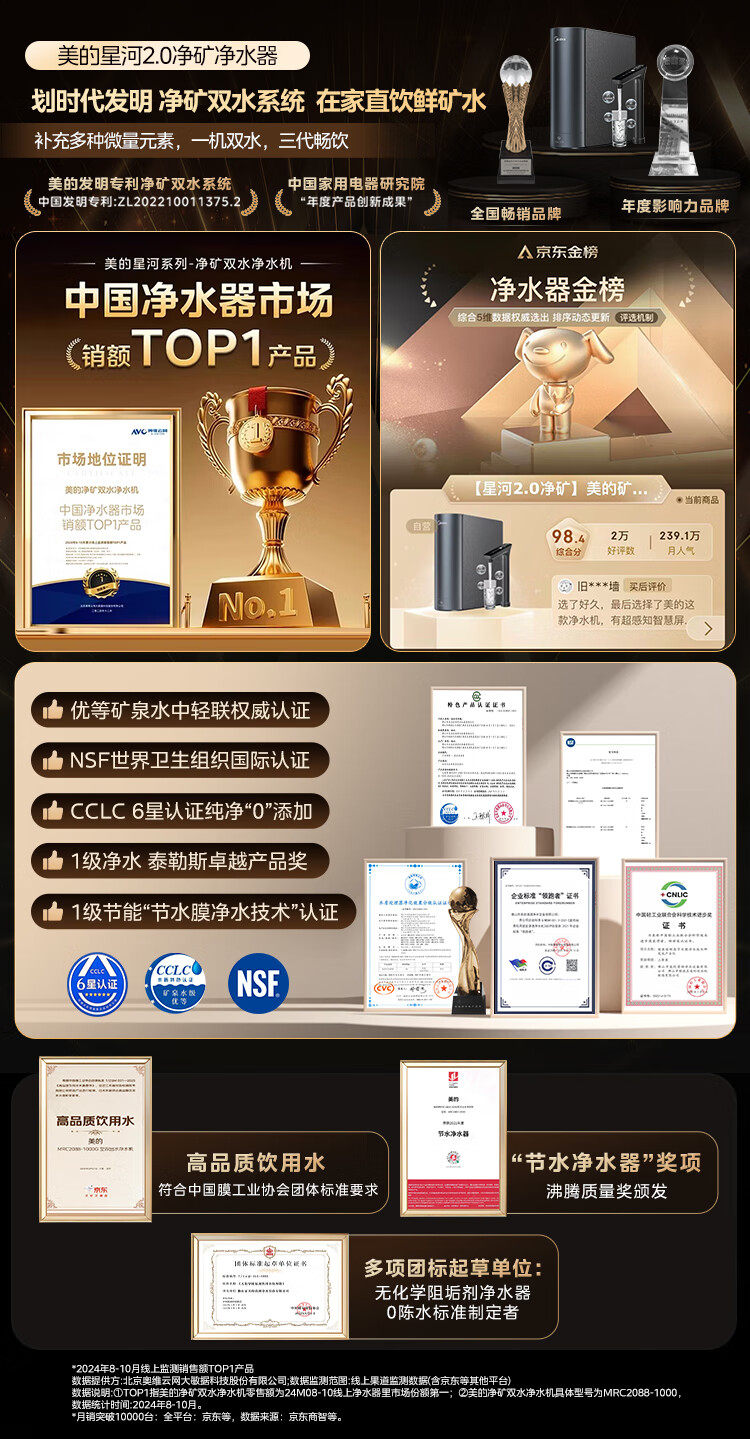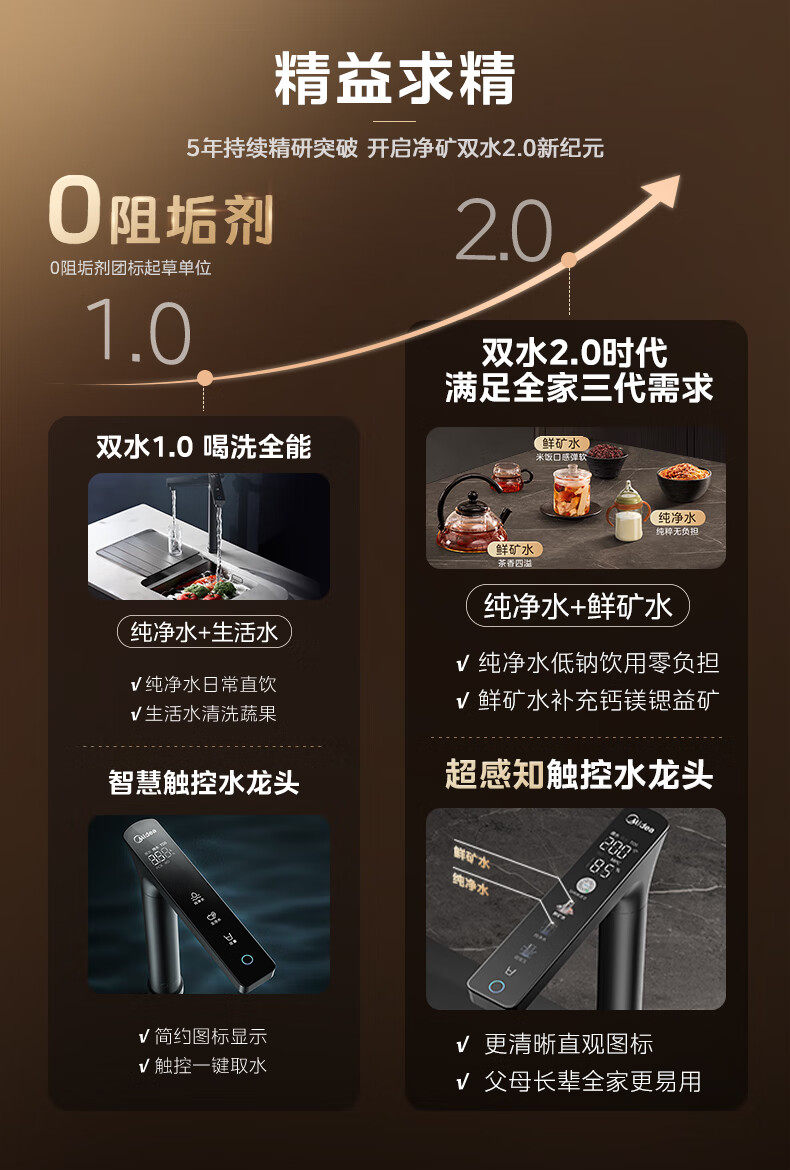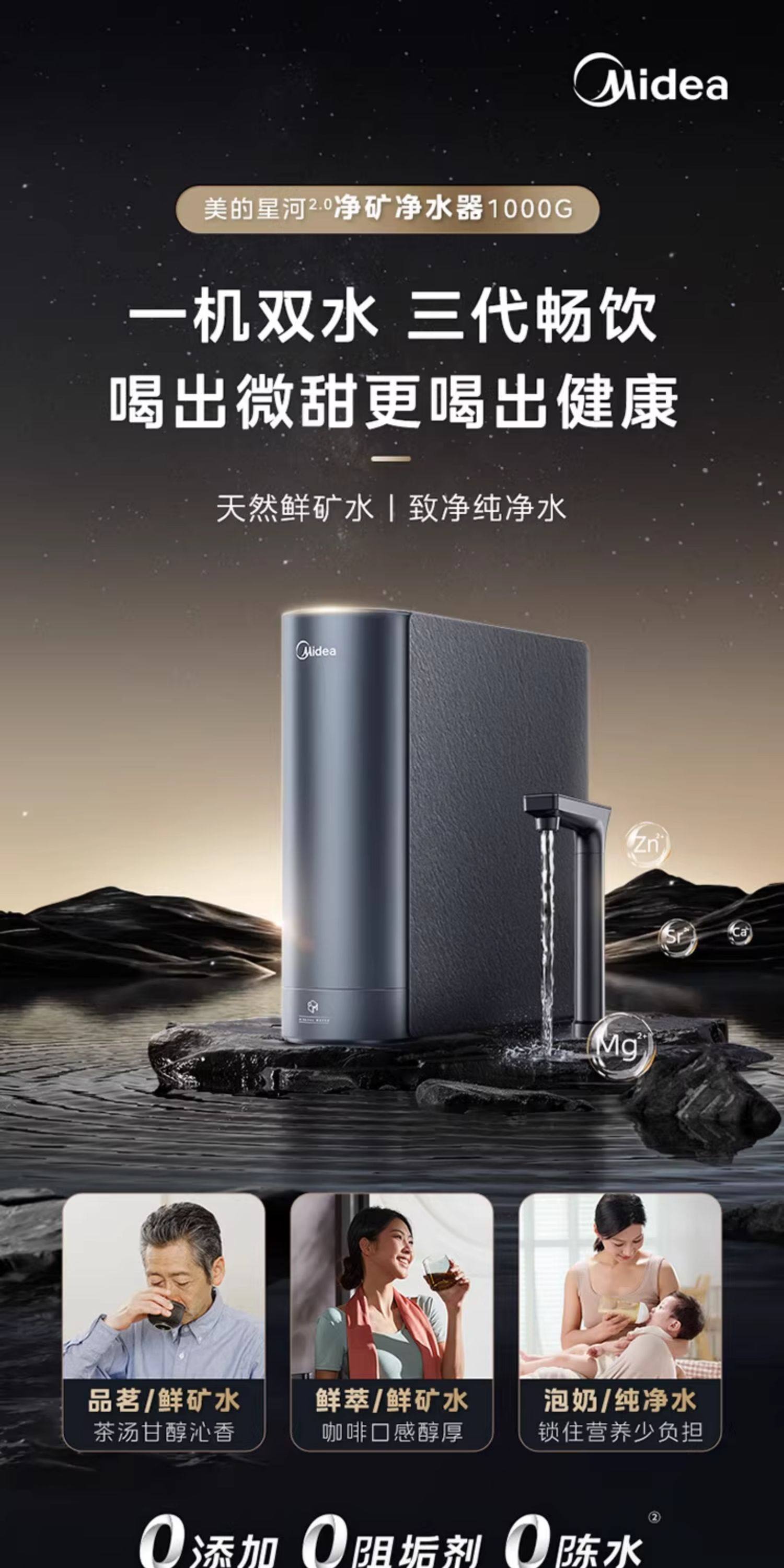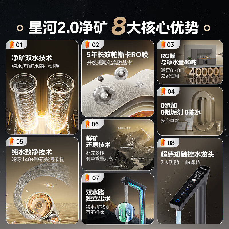 Midea Galaxy 2.0 Net Mineral 0 Antiscalant Water Purifier Household Direct Drinking RO Reverse Osmosis Kitchen Fresh Mineral Water 1000G
