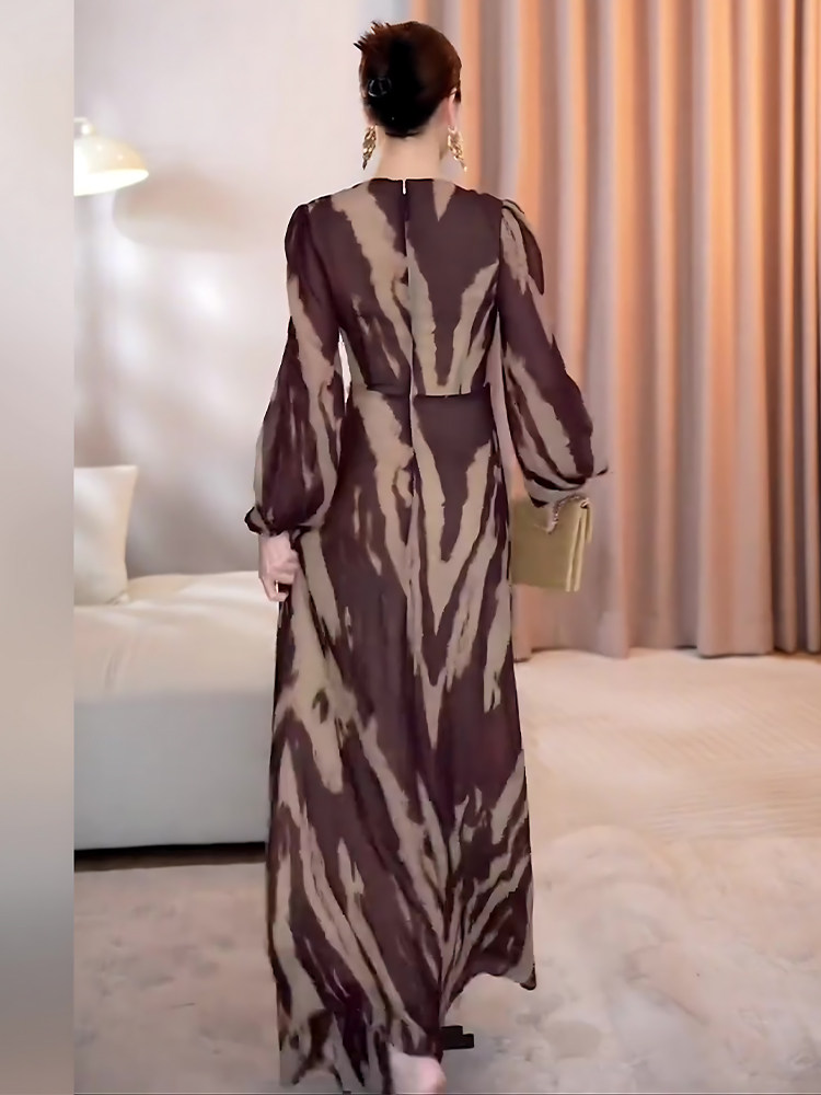 Mijie 2025 Autumn New Fashionable Age-Reducing Coffee-Colored Leopard Print Gradient Dress, Elegant and High-End, Waist-Cinching and Slimming Dress