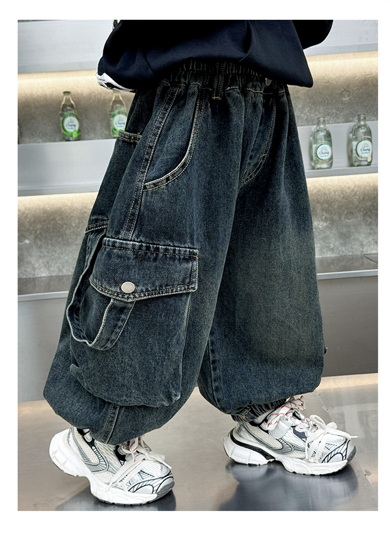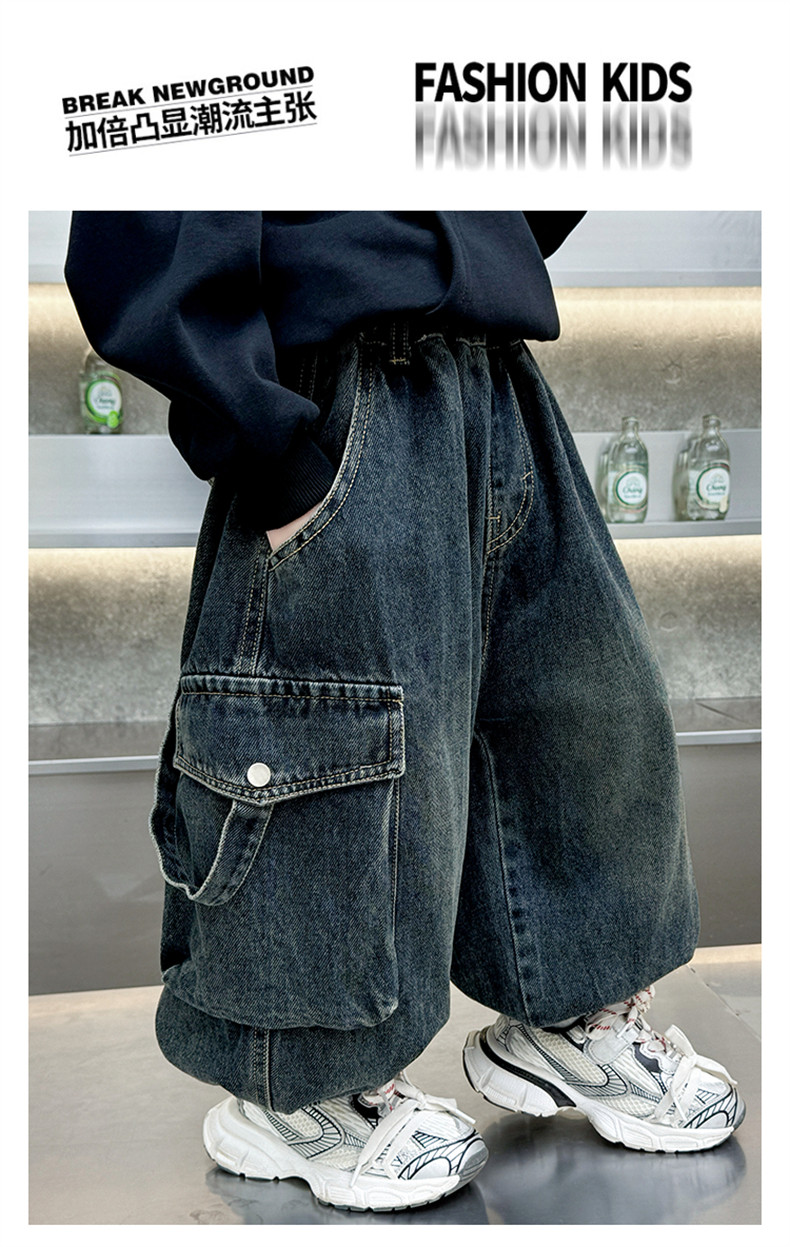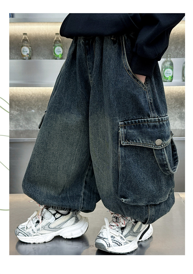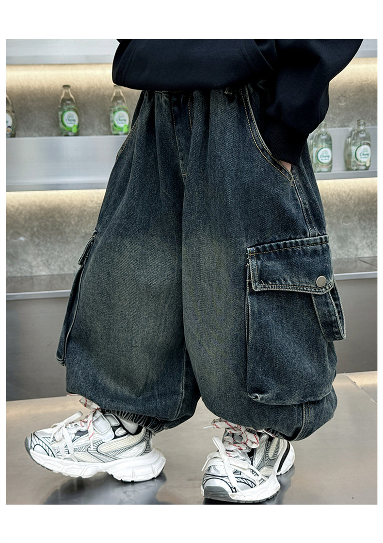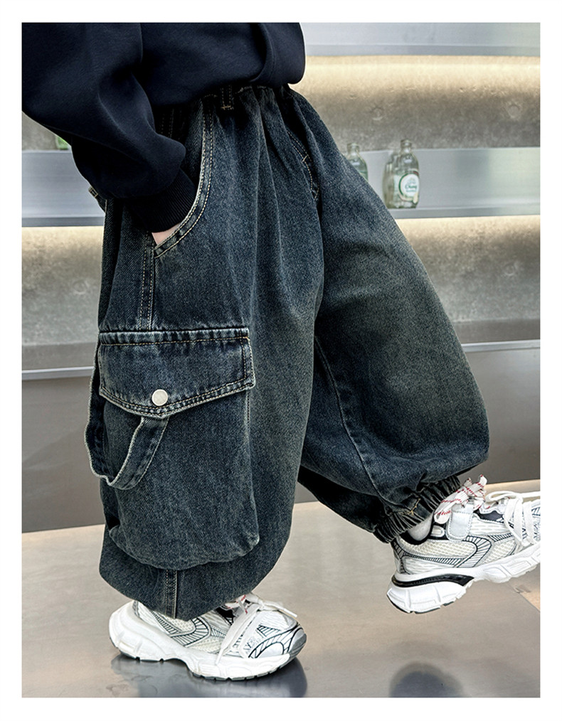 Boys' Fleece-Lined Pants Autumn and Winter 2025 New Children's Fleece-Lined Jeans Boys' Thickened Warm Cargo Pants