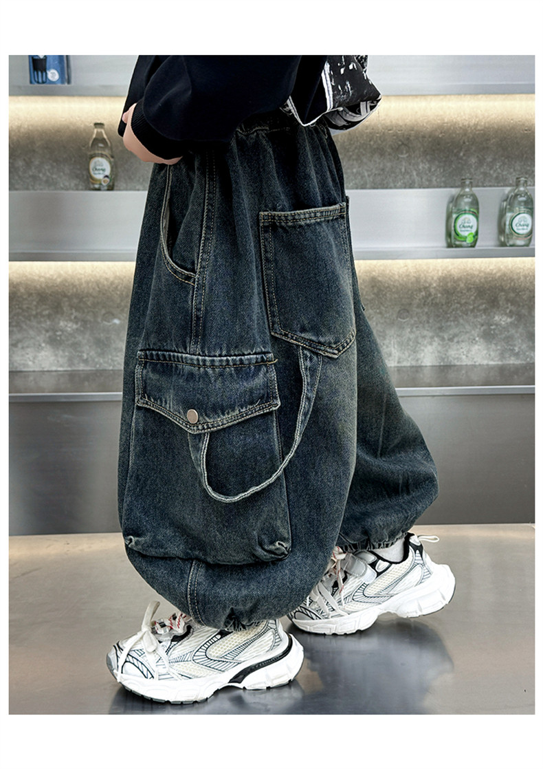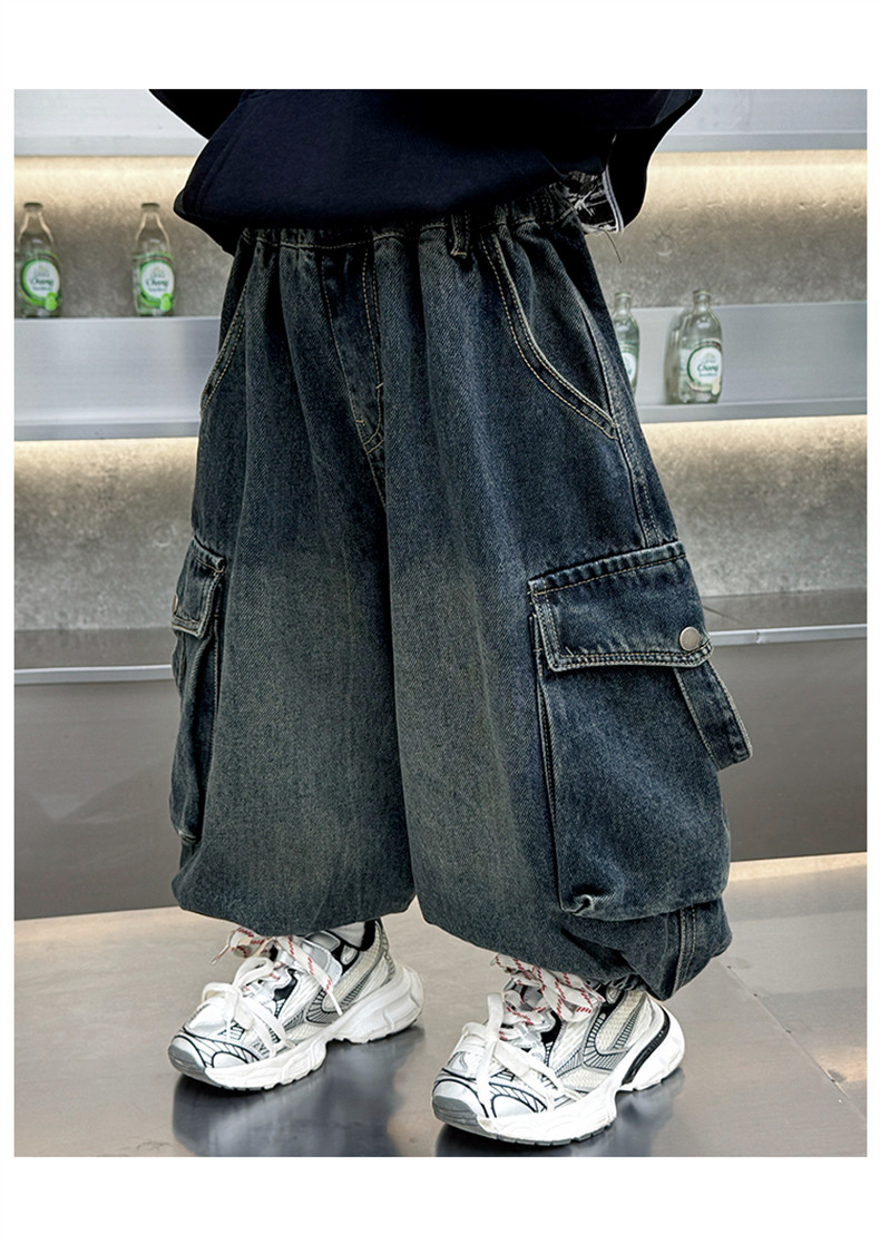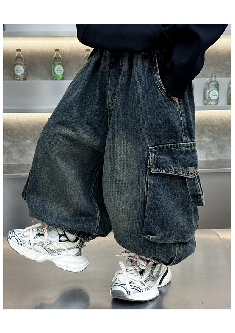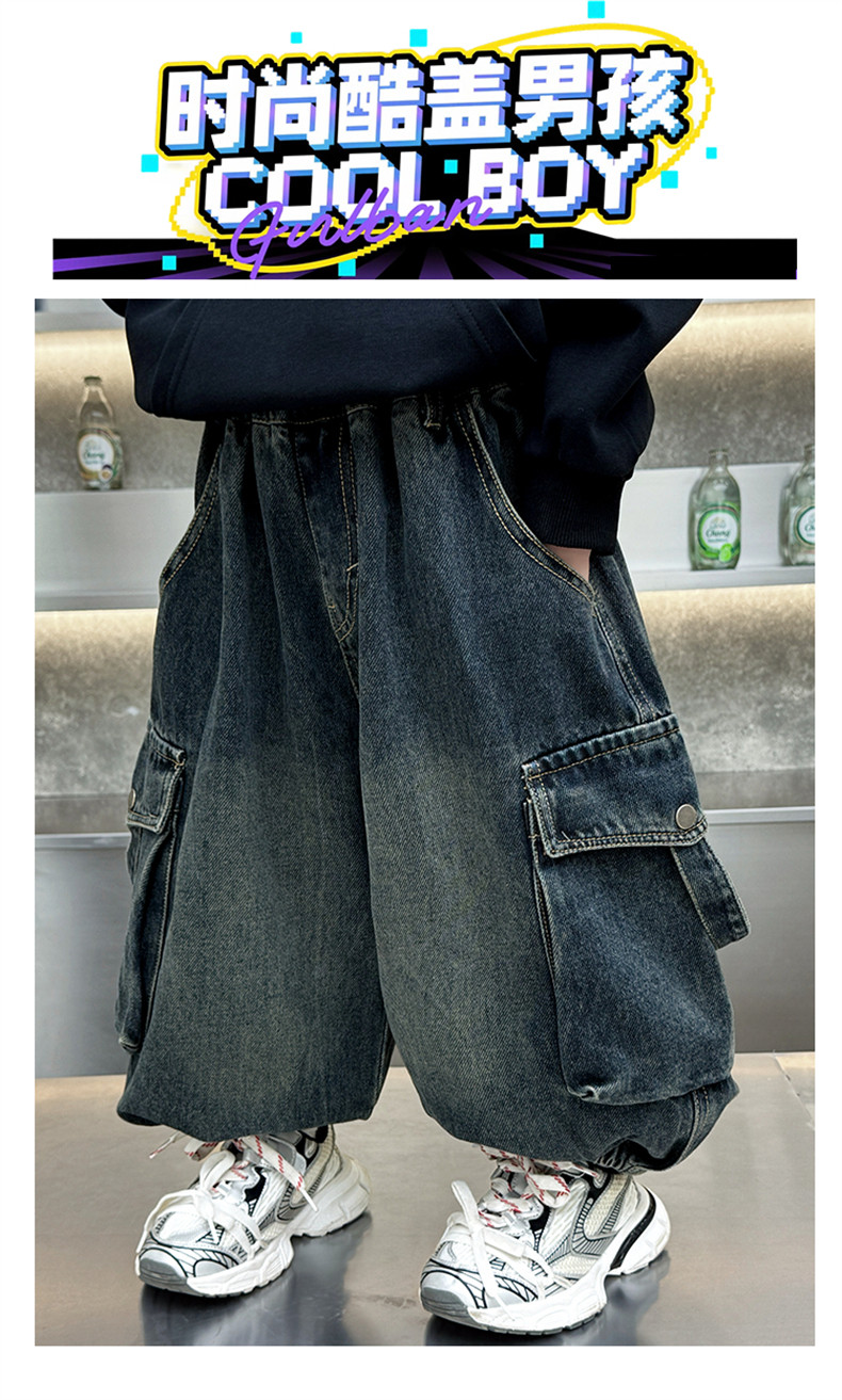 Boys' Fleece-Lined Pants Autumn and Winter 2025 New Children's Fleece-Lined Jeans Boys' Thickened Warm Cargo Pants