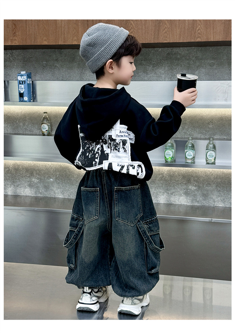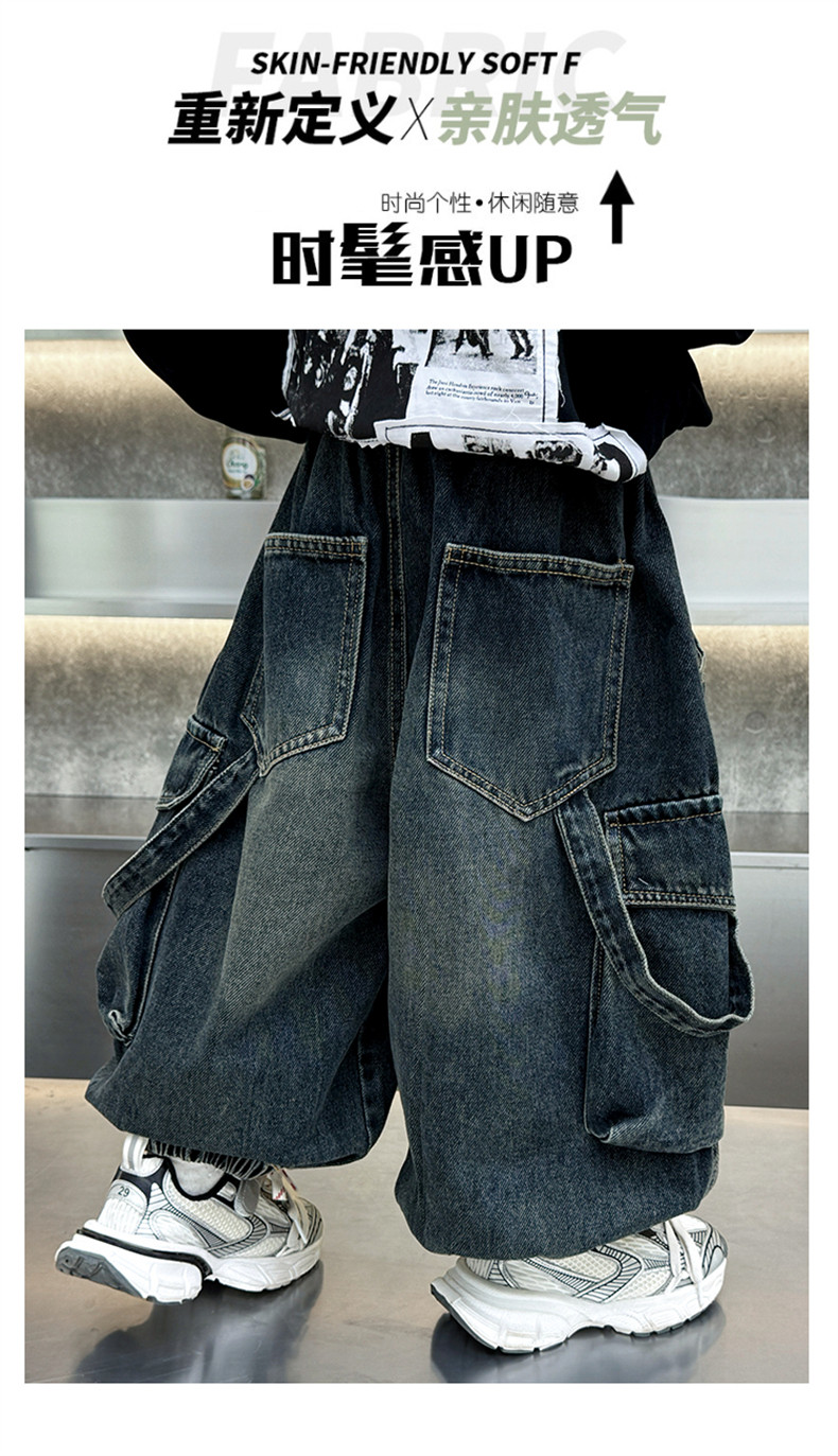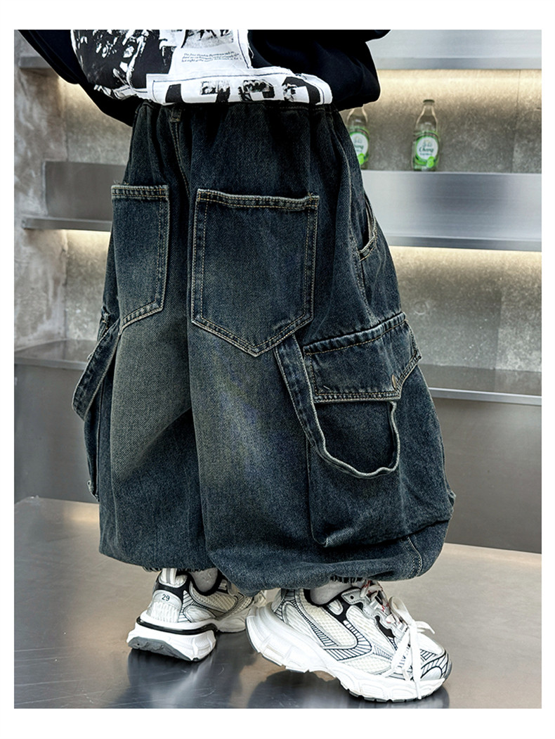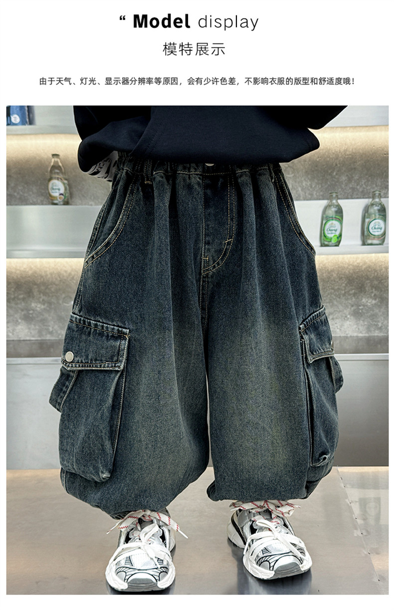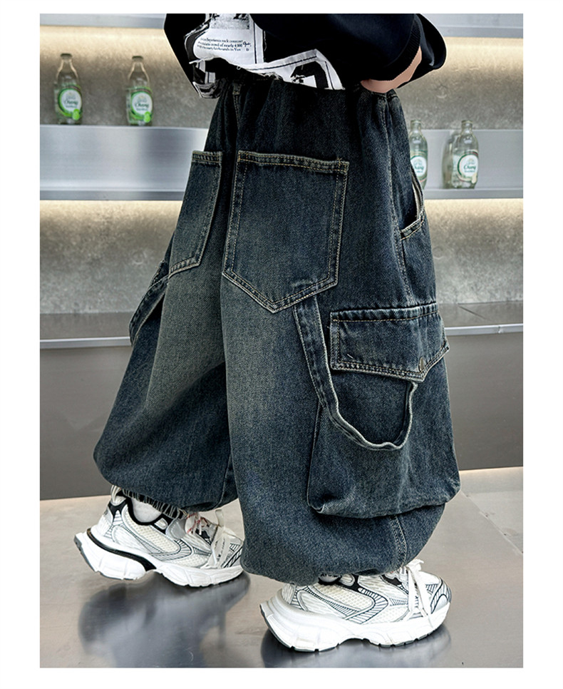 Boys' Fleece-Lined Pants Autumn and Winter 2025 New Children's Fleece-Lined Jeans Boys' Thickened Warm Cargo Pants