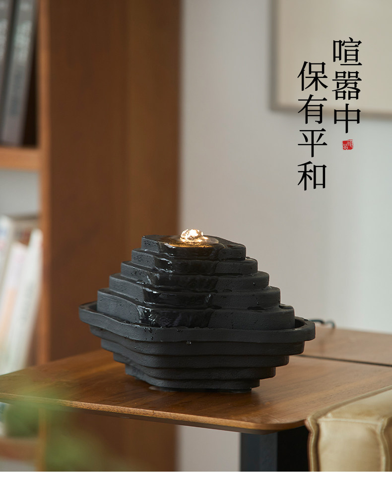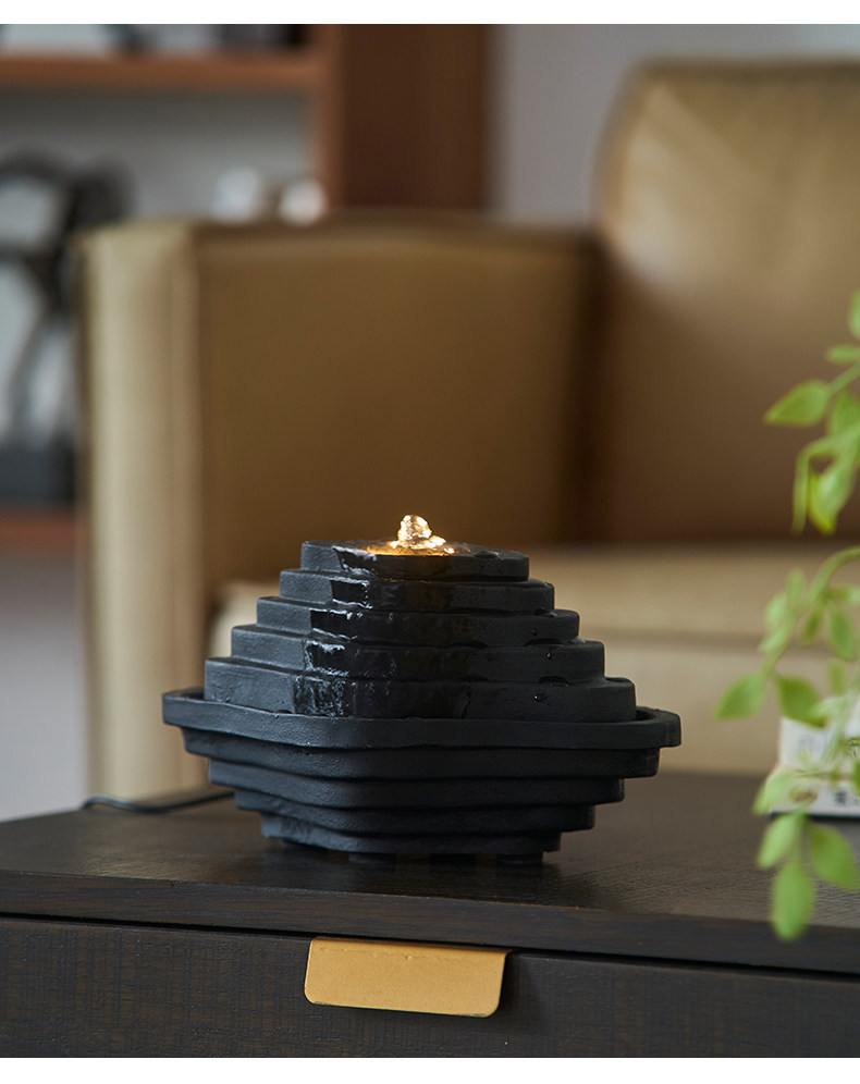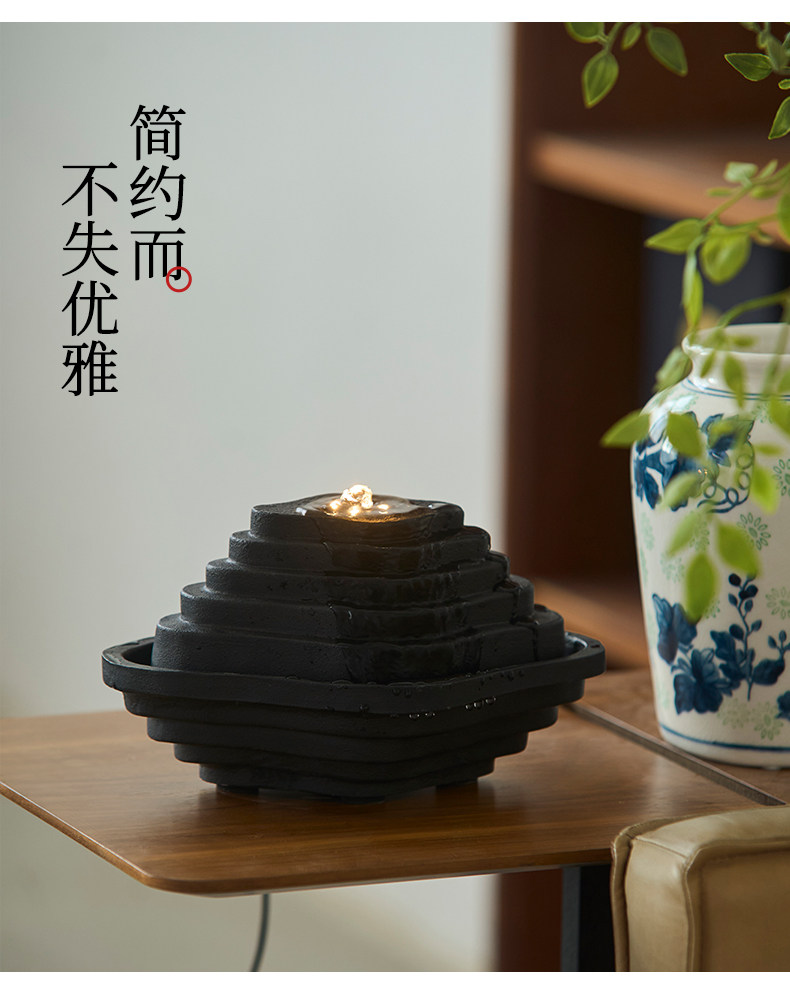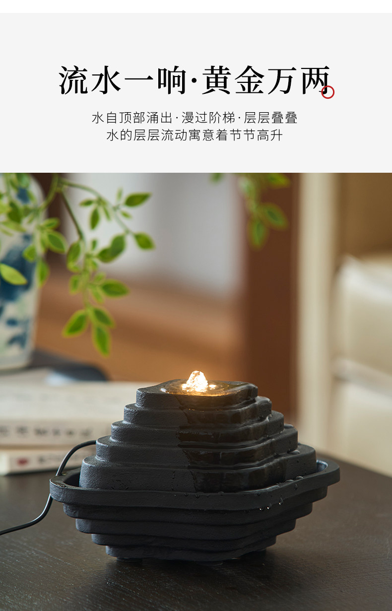 Zen-Inspired Mountain Living, New Chinese-Style Terraced Water Feature, Circulating Water, Living Room, Study, High-End, Niche, Office, Light Luxury