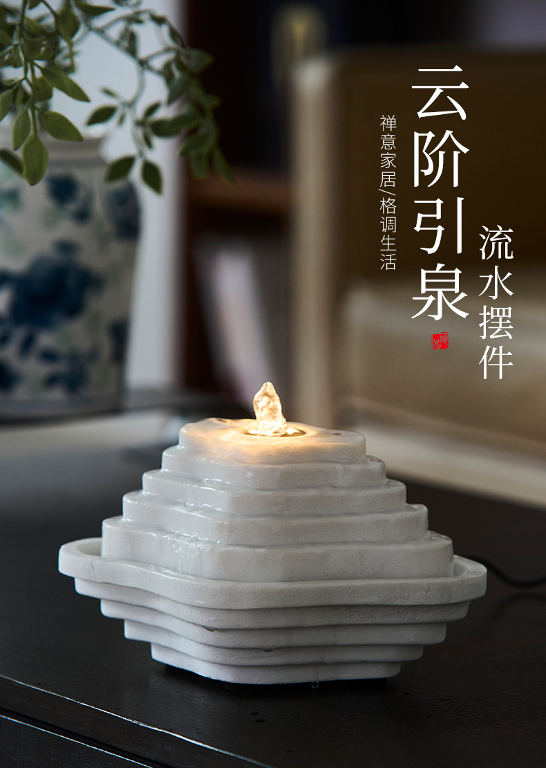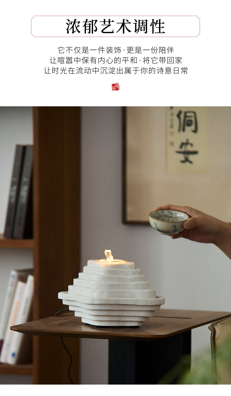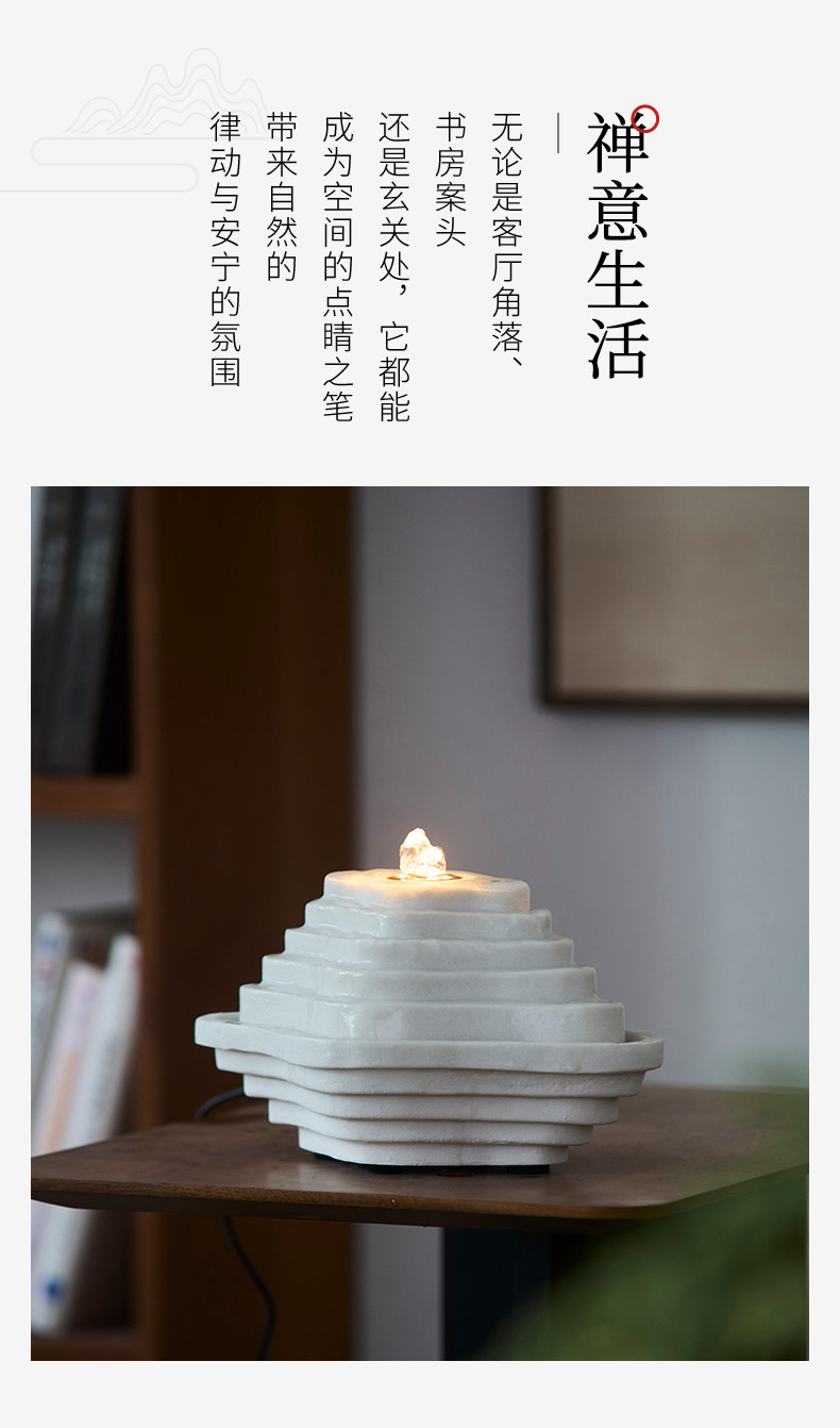 Zen-Inspired Mountain Living, New Chinese-Style Terraced Water Feature, Circulating Water, Living Room, Study, High-End, Niche, Office, Light Luxury