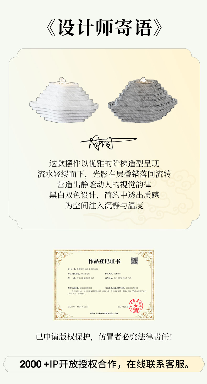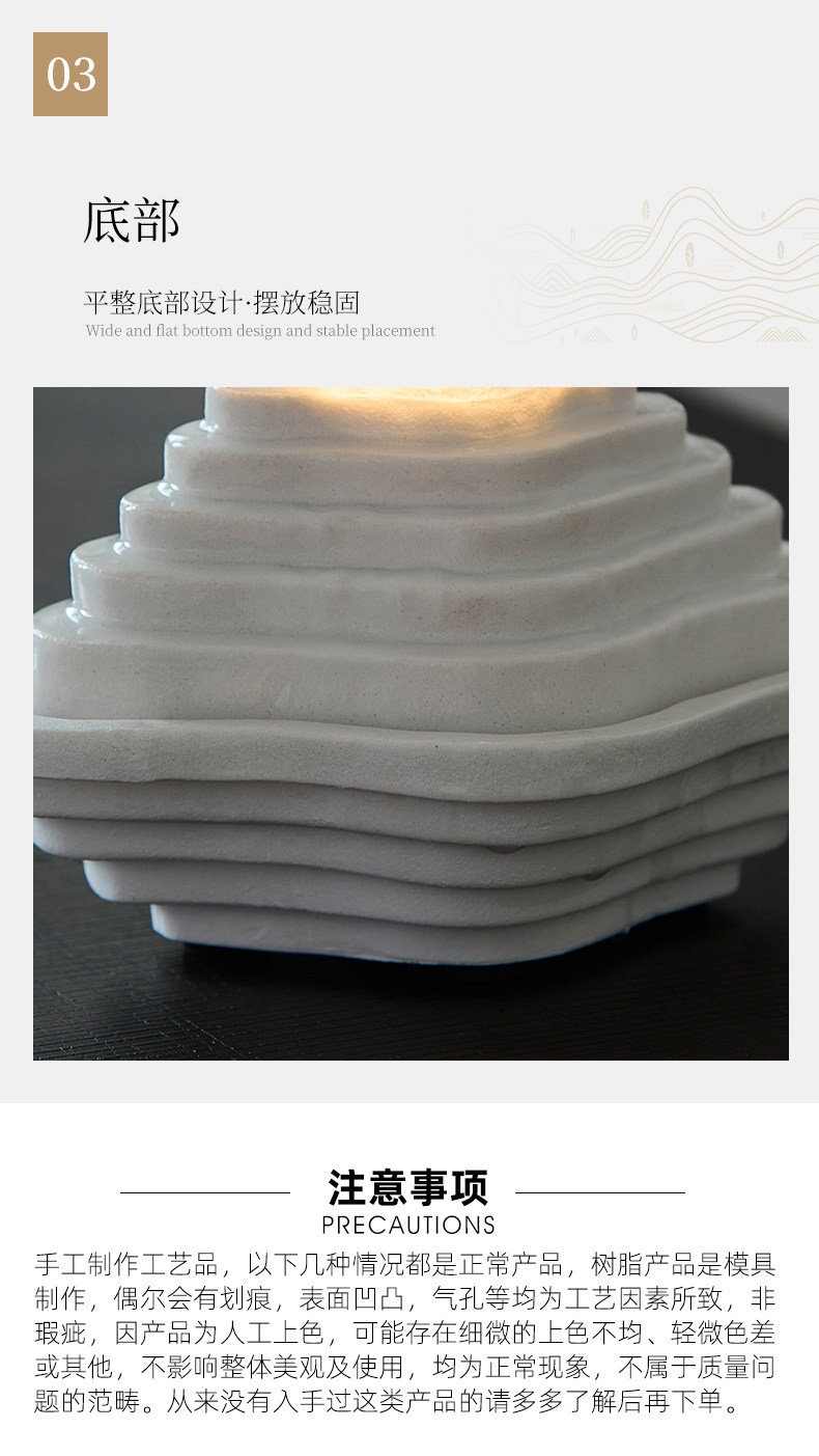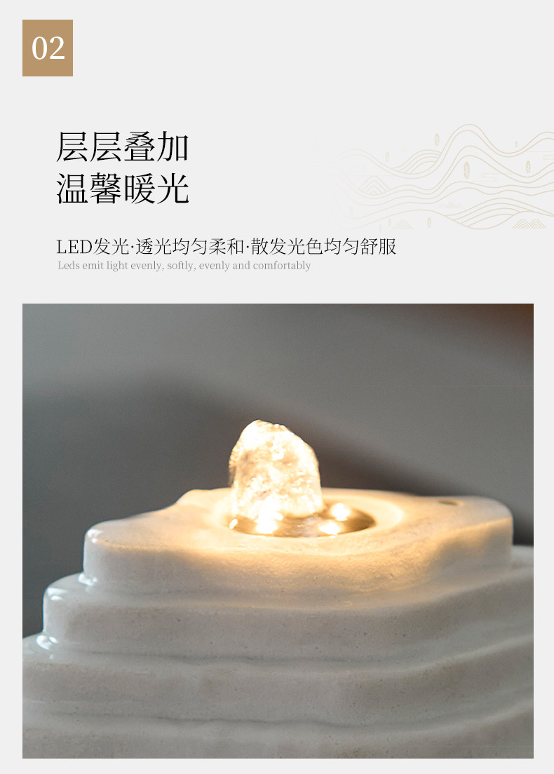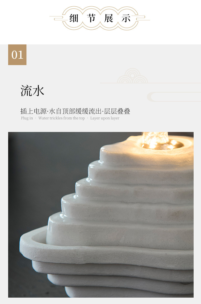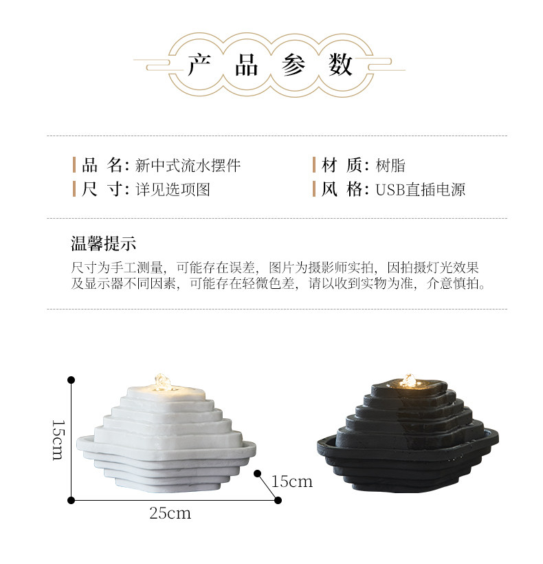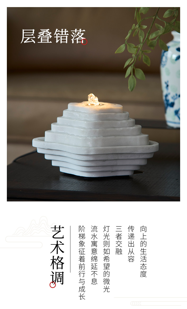 Color Classification Oriental Zen Black Terraced Water Feature Tabletop Lamp,Minimalist White Terraced Water Feature with Dynamic Lighting