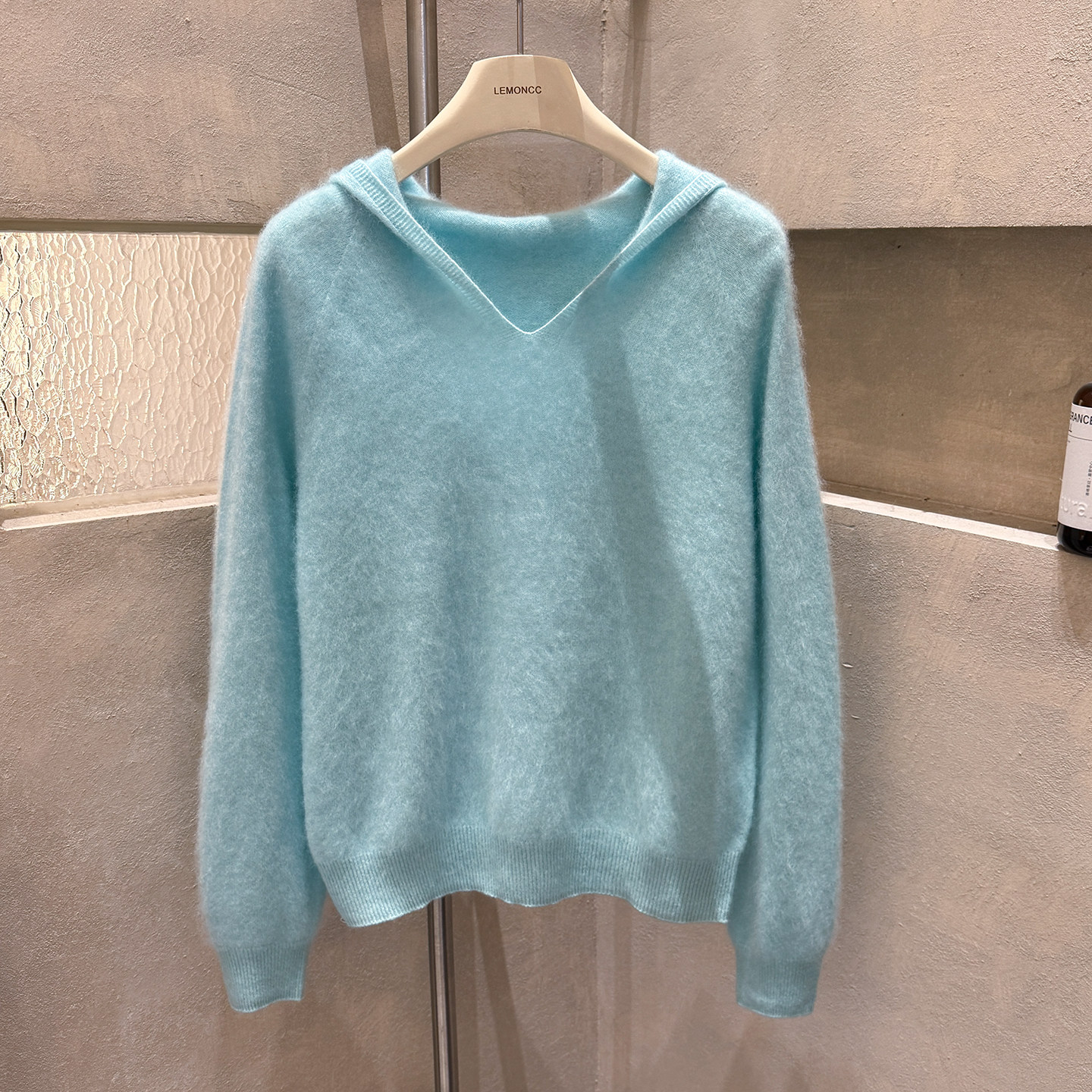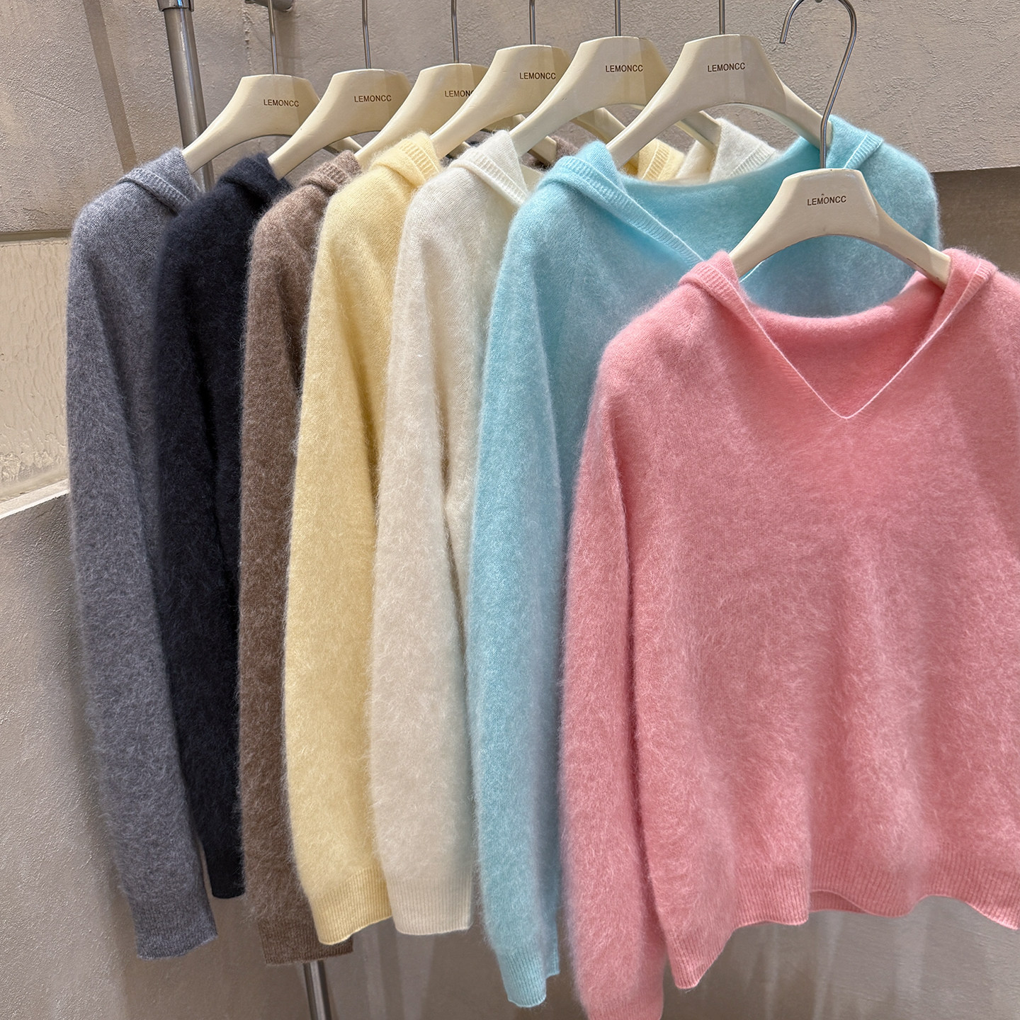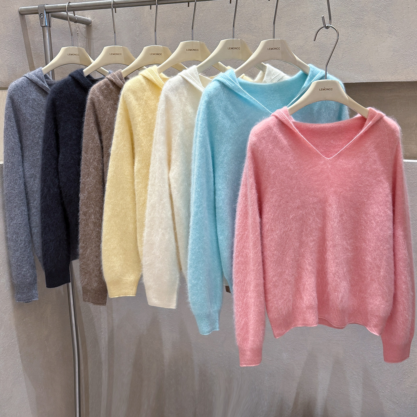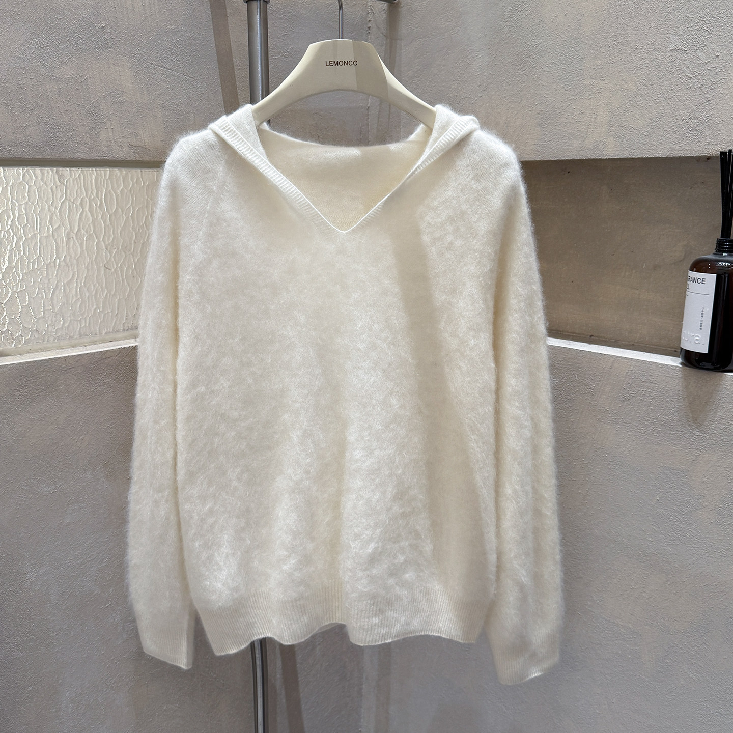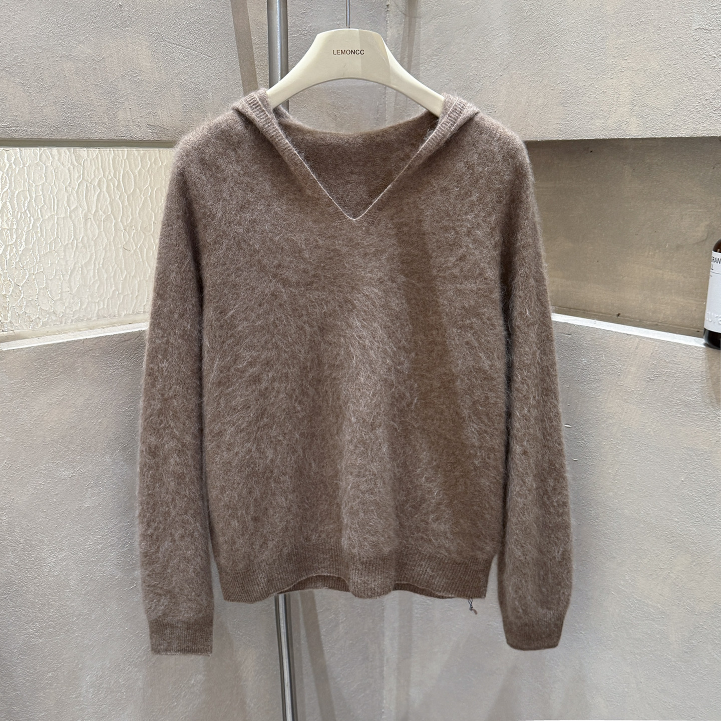 Brushed hoodie wool + cashmere soft fufu long-sleeved one-line ready-to-wear knitted sweater