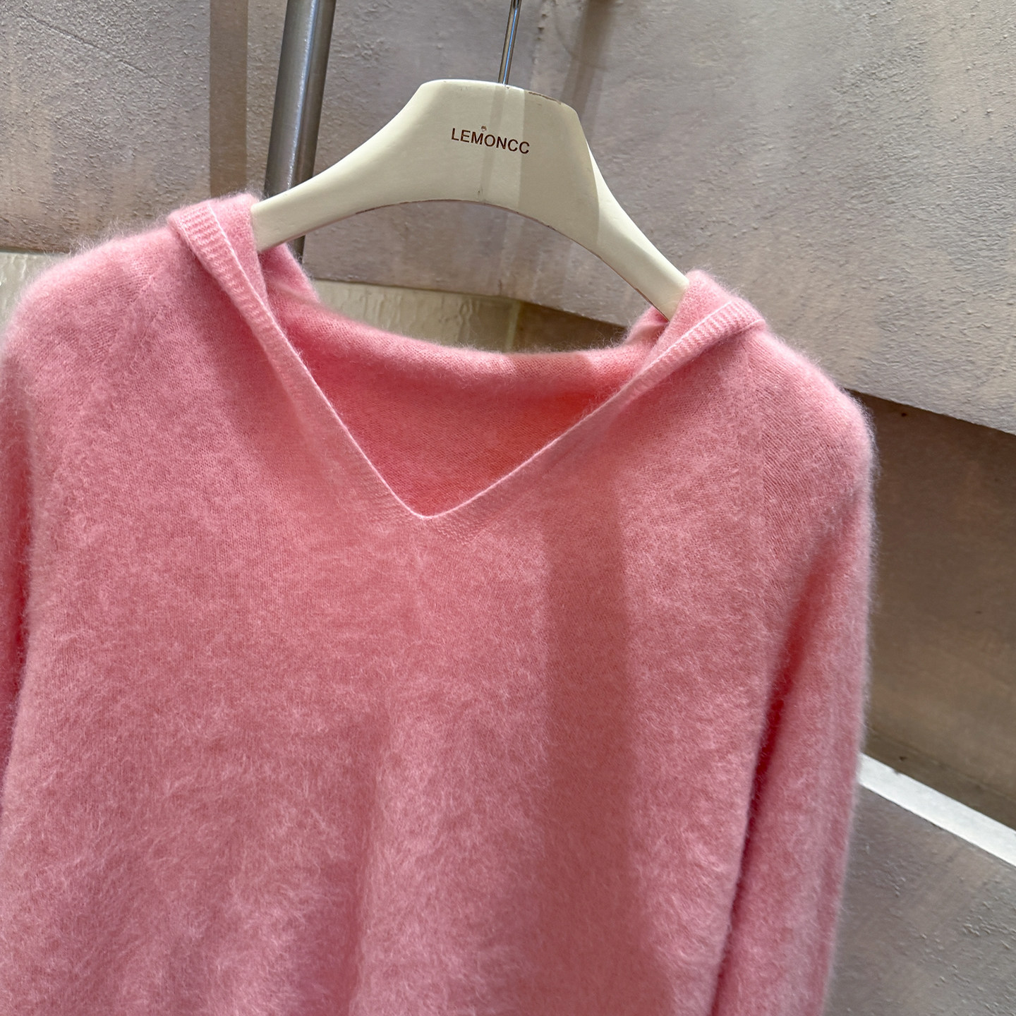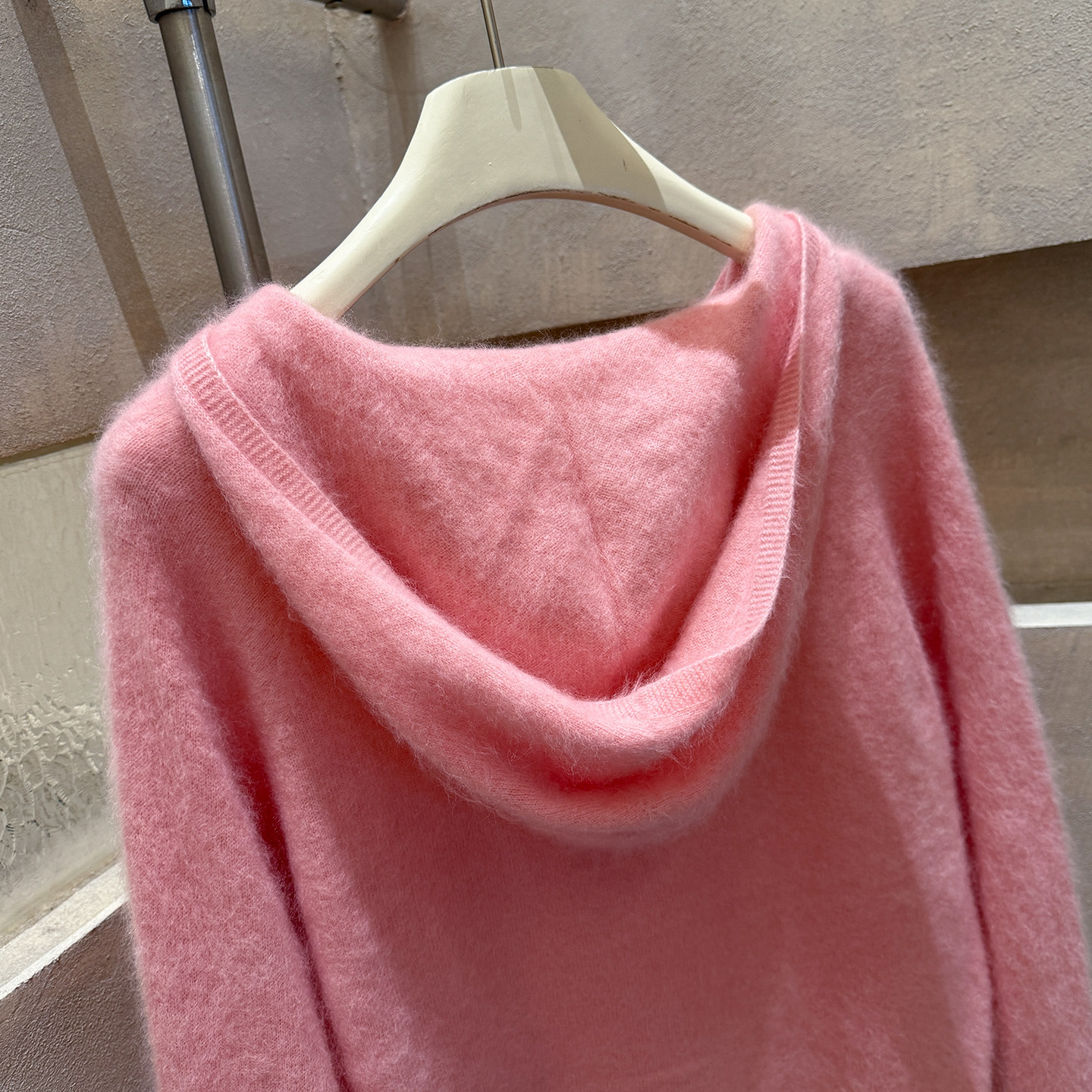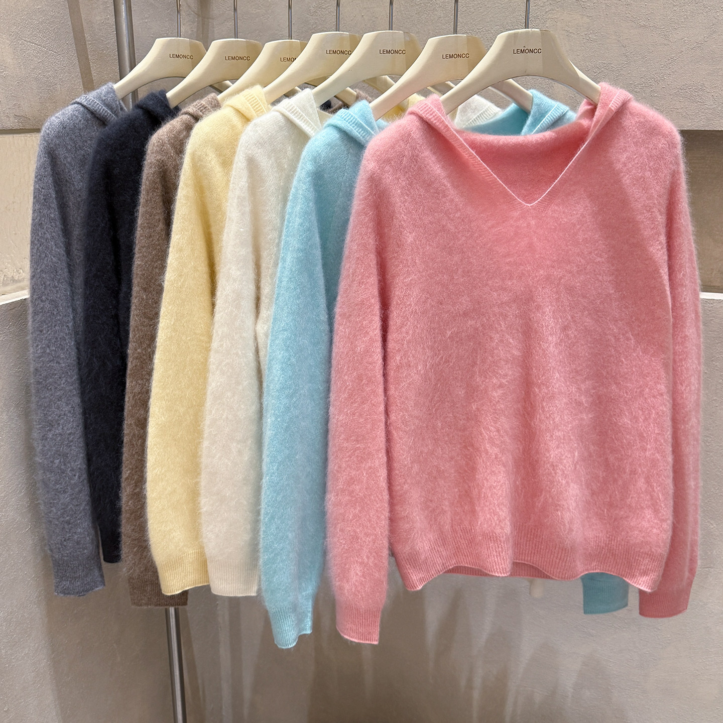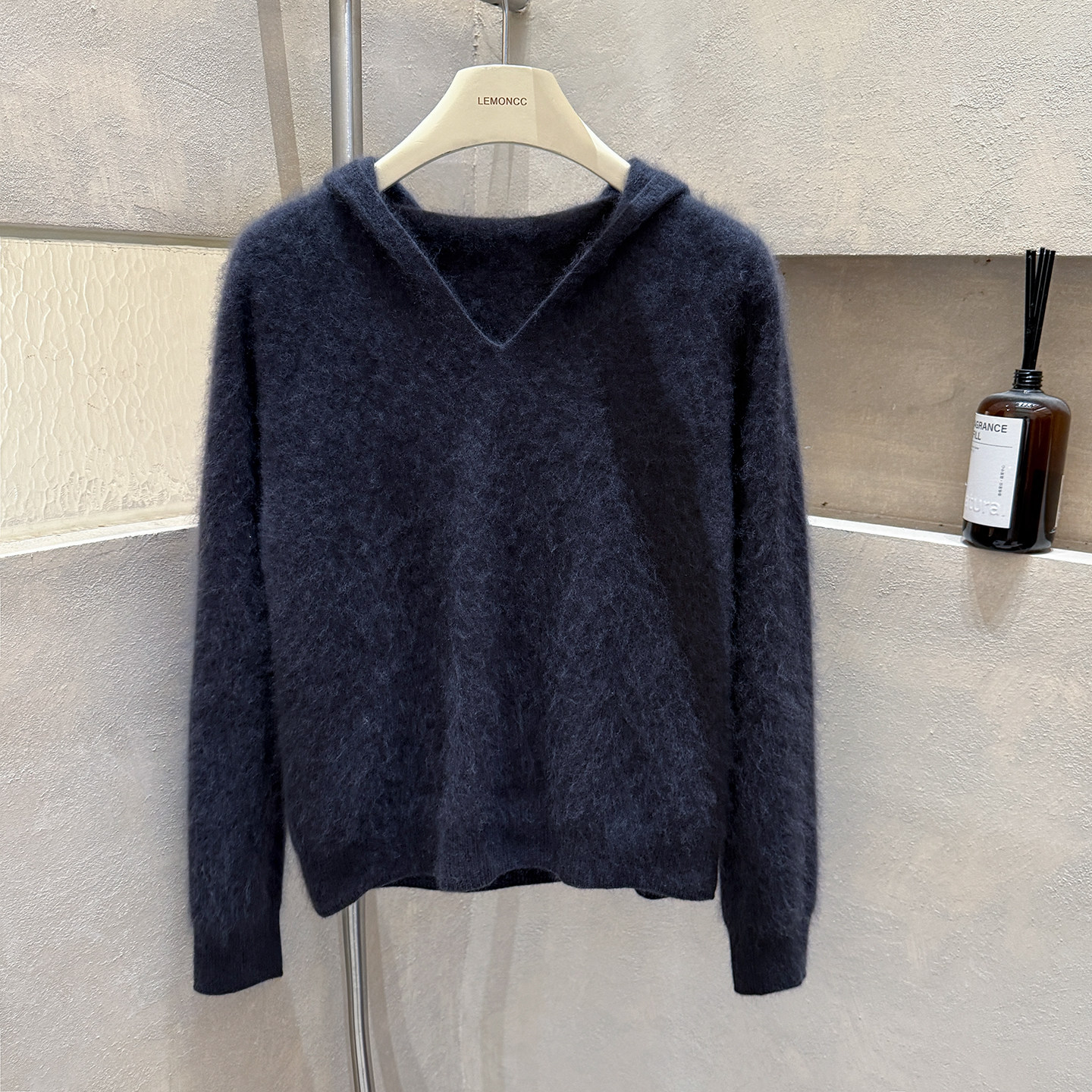 Brushed hoodie wool + cashmere soft fufu long-sleeved one-line ready-to-wear knitted sweater