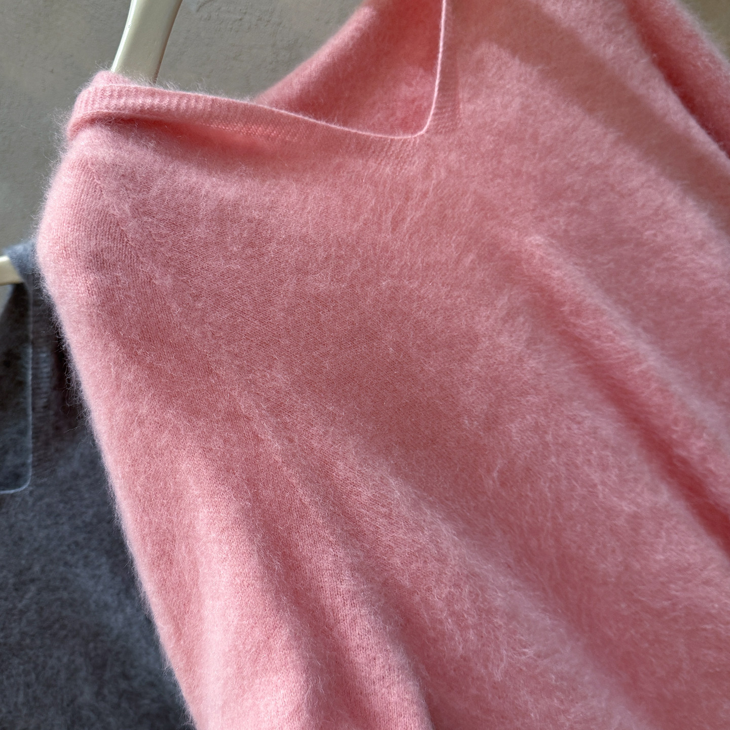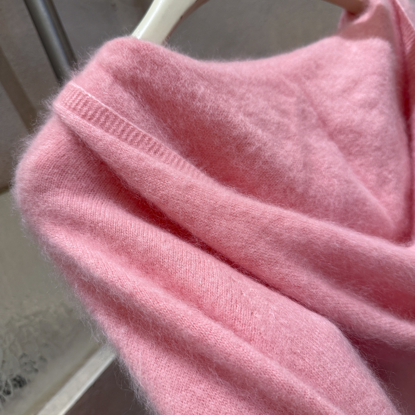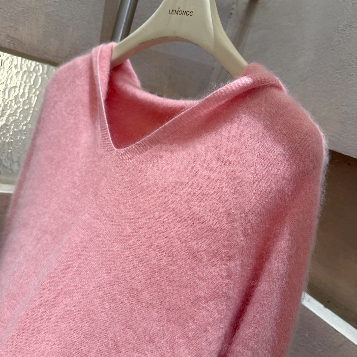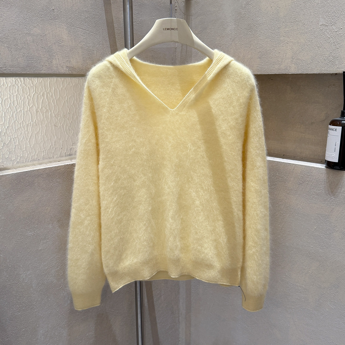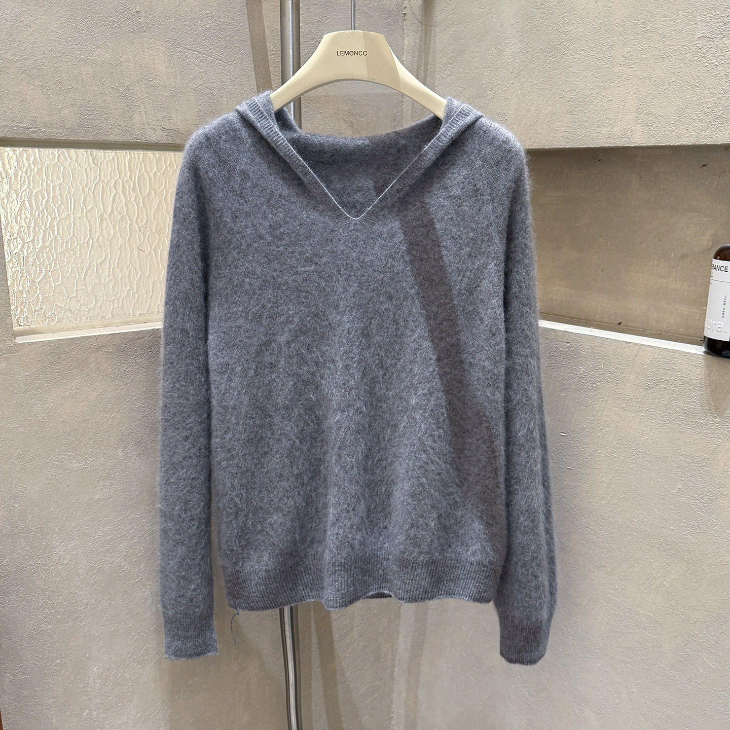 Brushed hoodie wool + cashmere soft fufu long-sleeved one-line ready-to-wear knitted sweater
