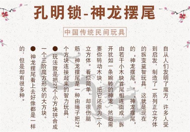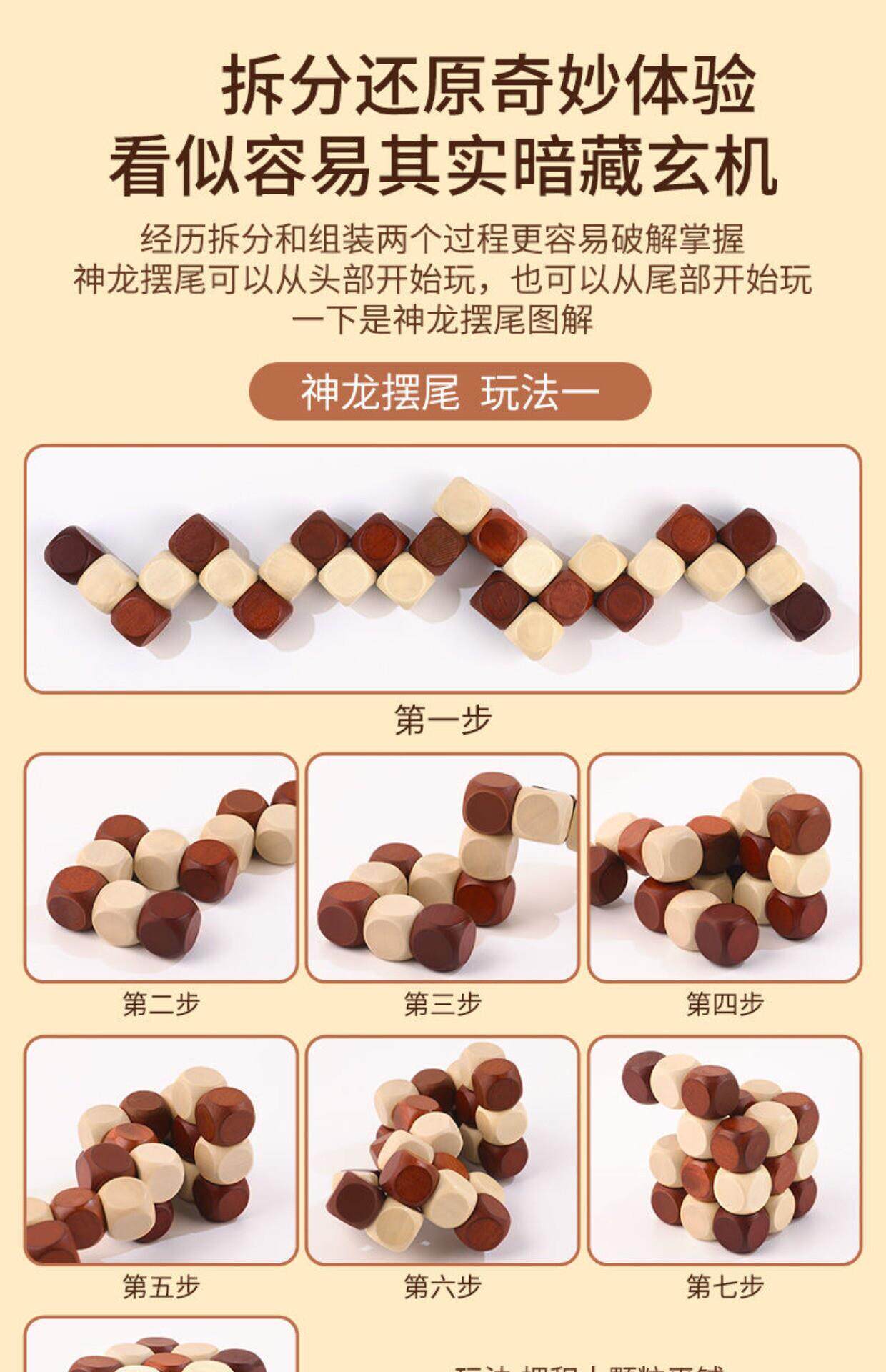 Kongming Lock Full Set Dragon Tail Magic Cube Children's Educational Toy Classical Intelligence Teaching Competition Wooden Magic Cube