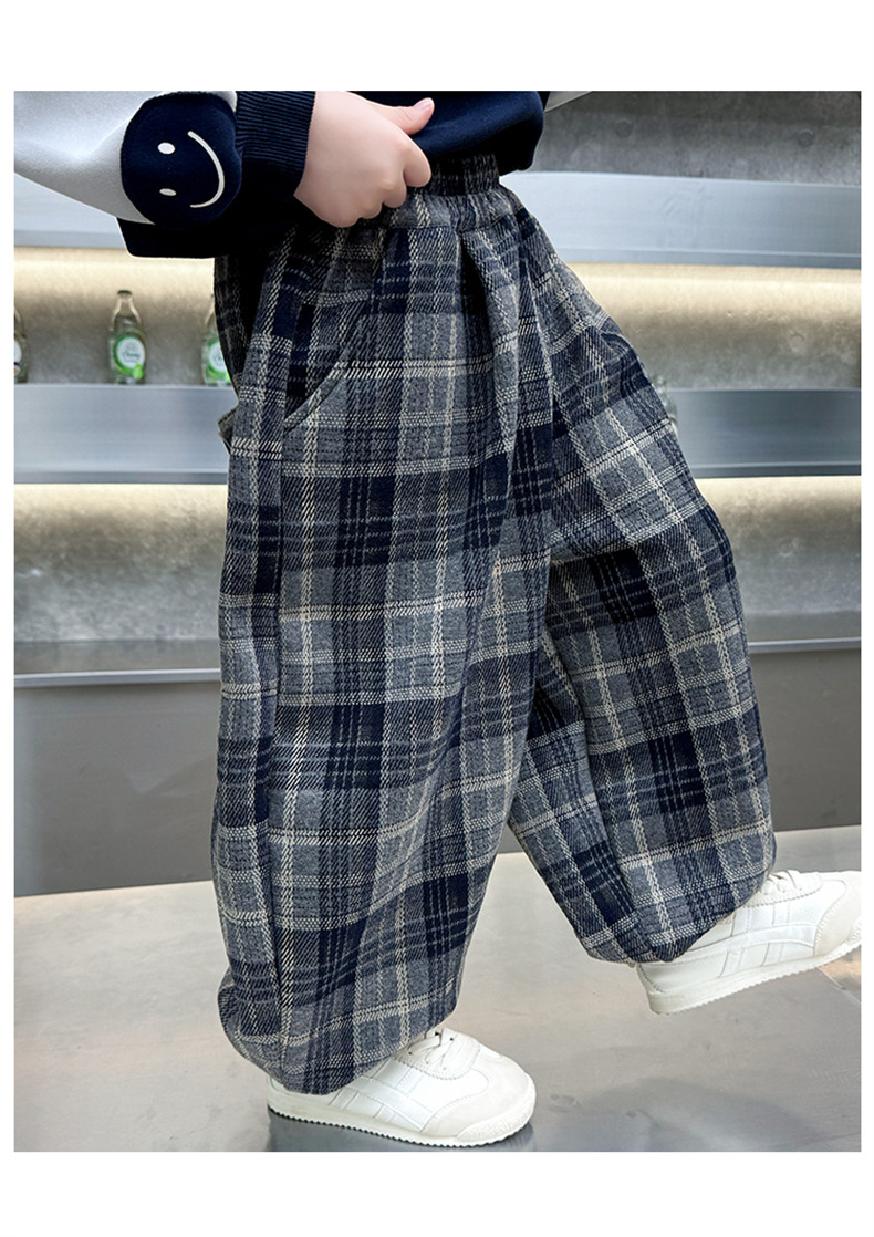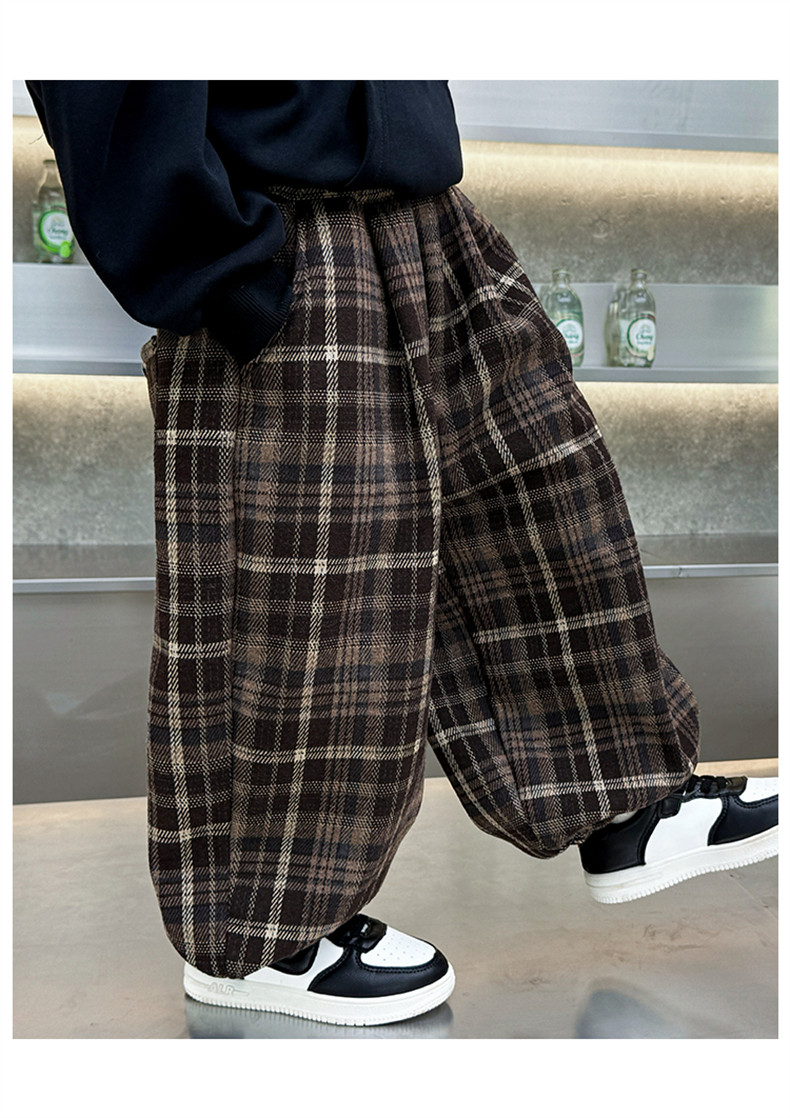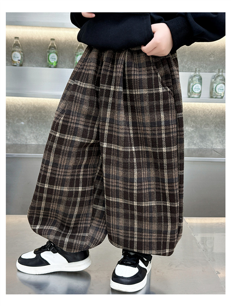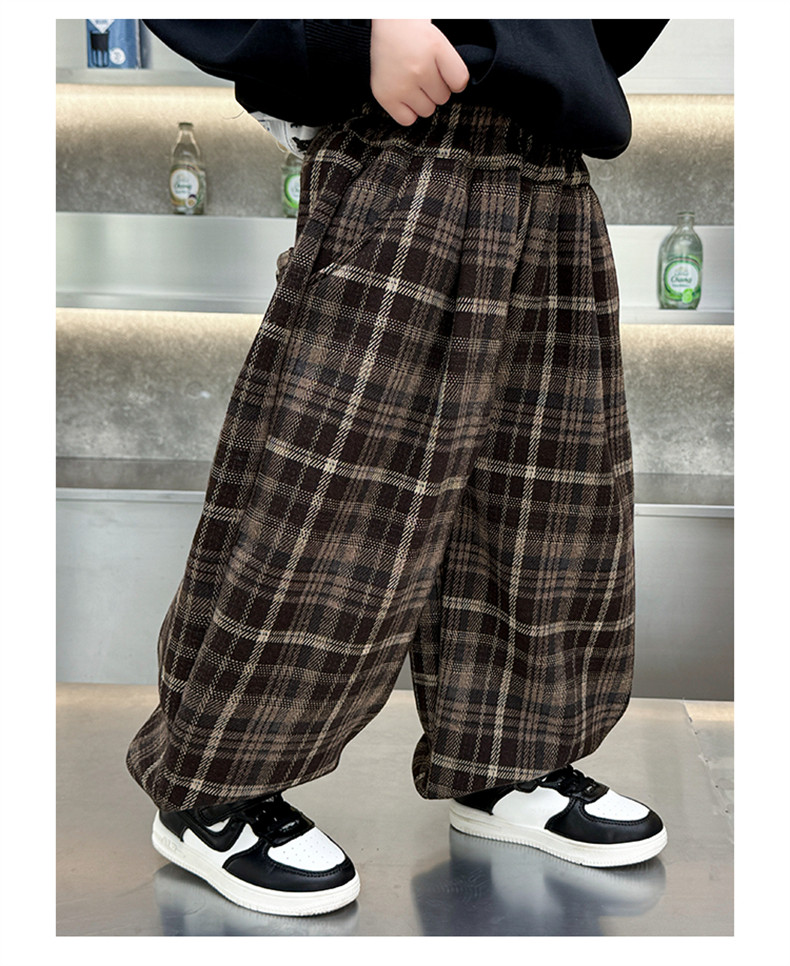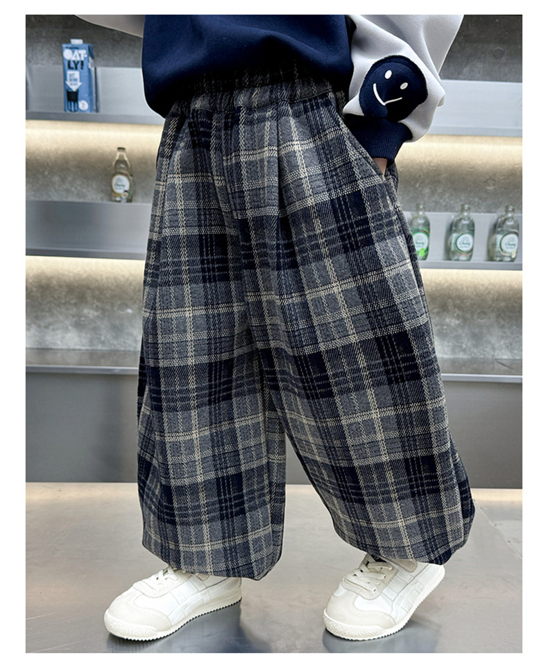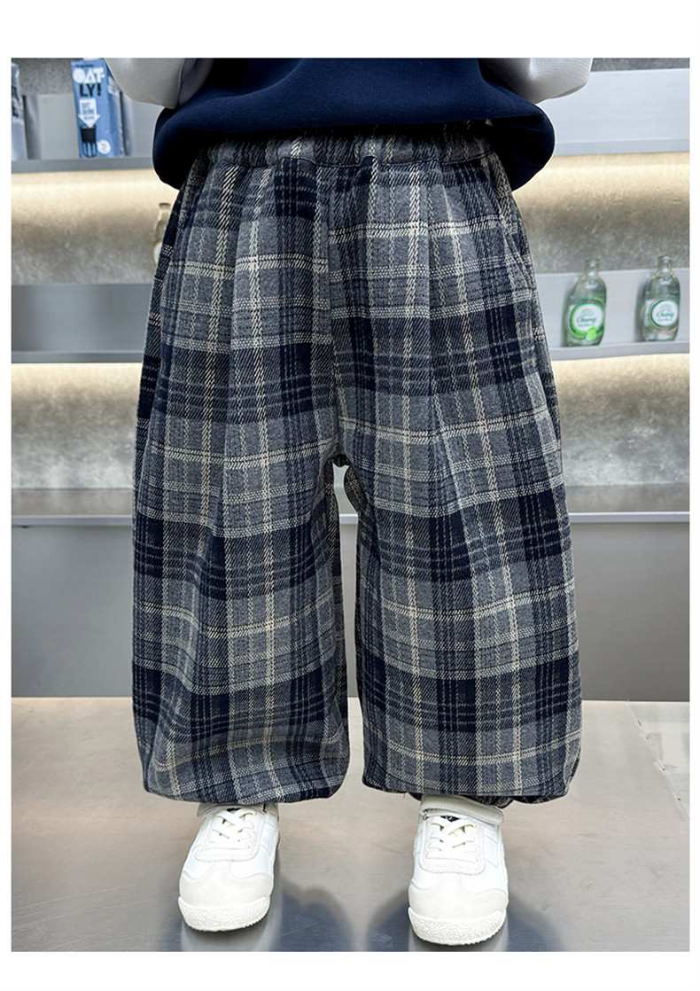 Boys' Fleece-Lined Pants 2025 New Winter Baby Harem Pants Children's Lantern Pants Plaid Autumn and Winter Clothing