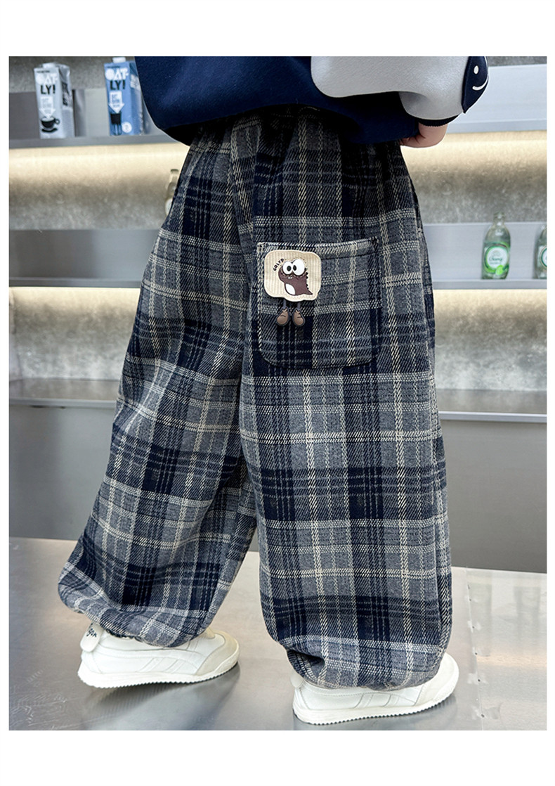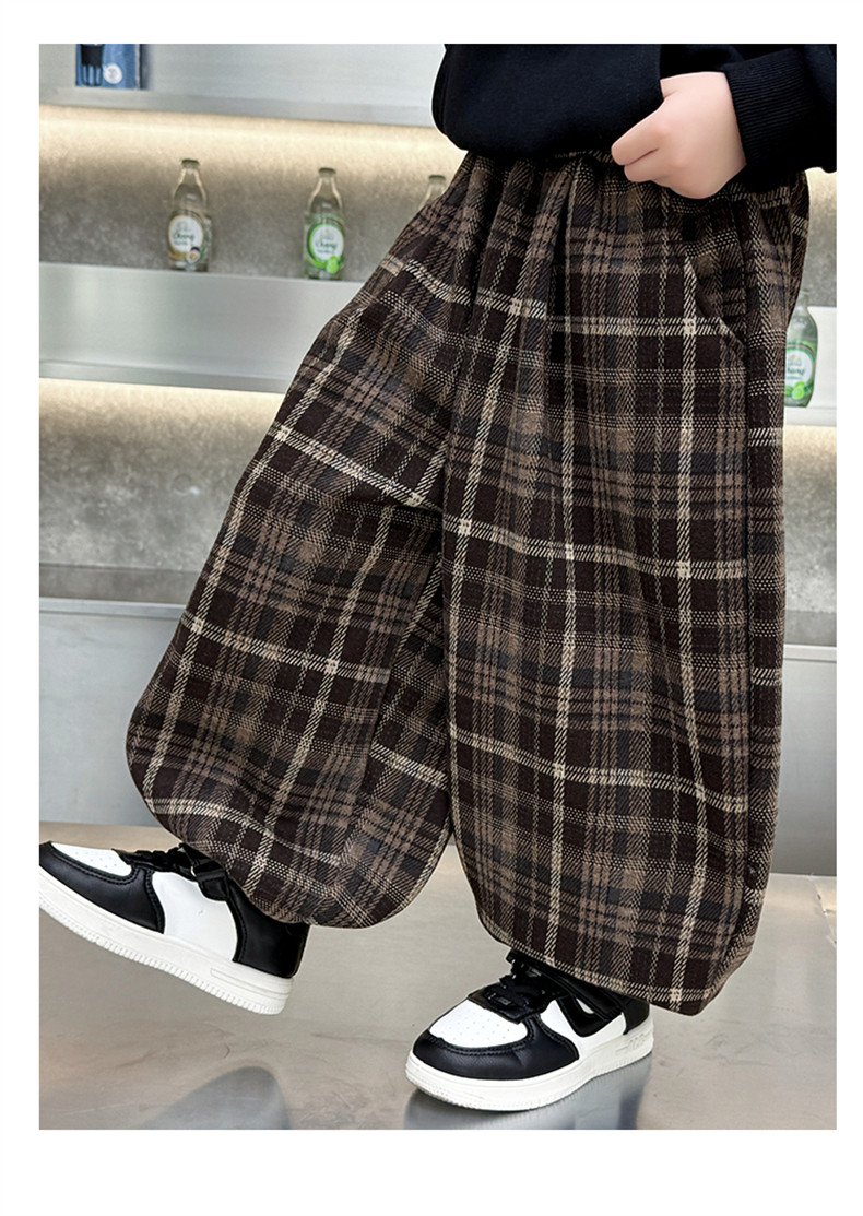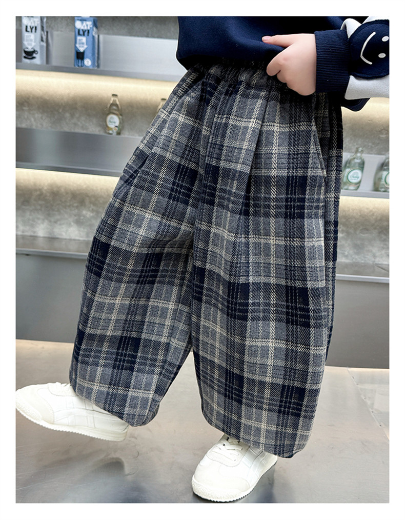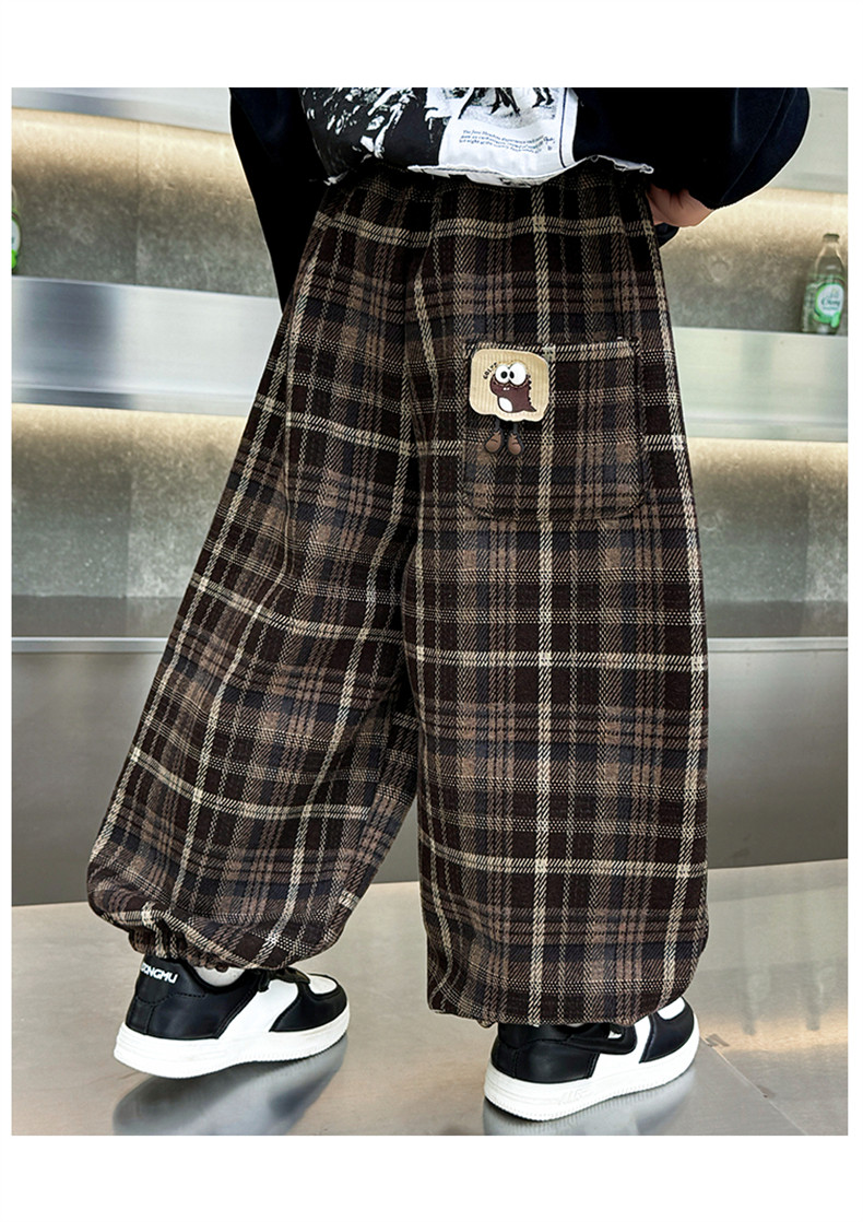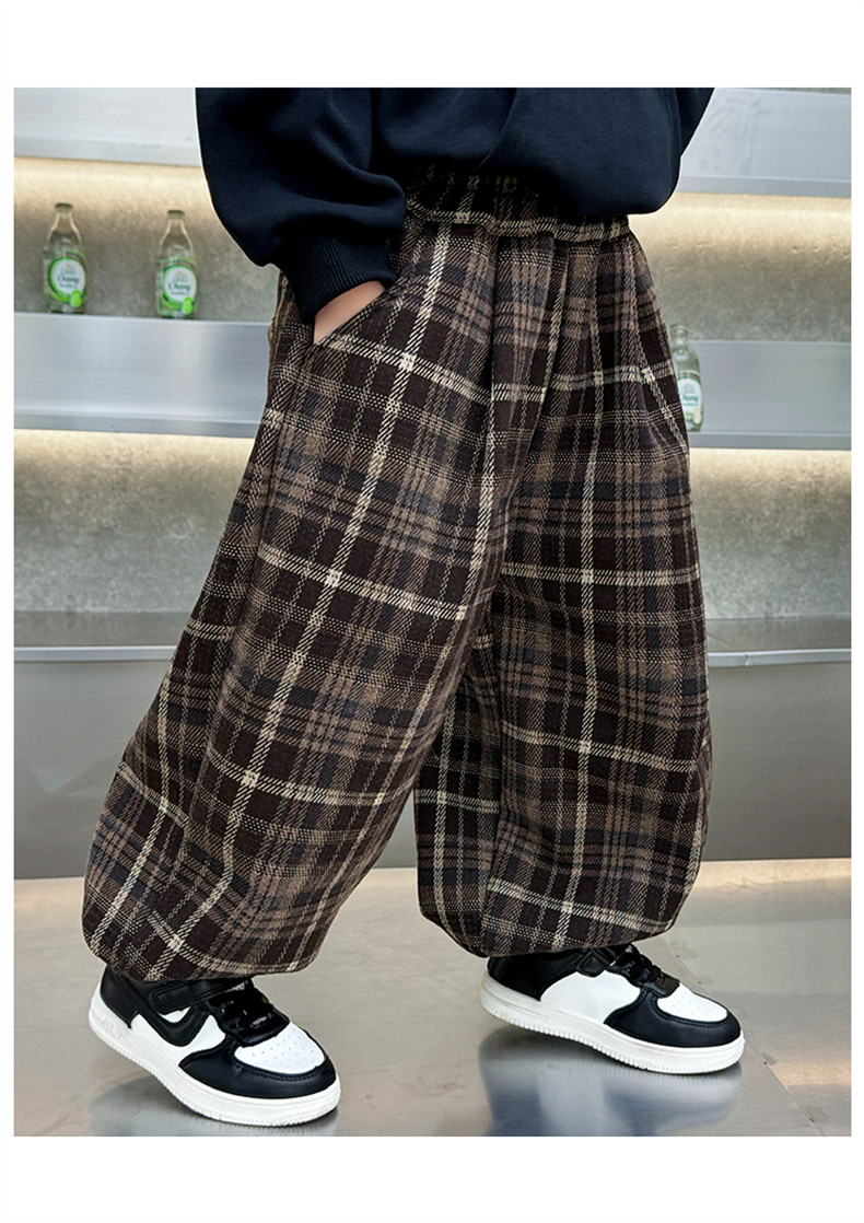 Boys' Fleece-Lined Pants 2025 New Winter Baby Harem Pants Children's Lantern Pants Plaid Autumn and Winter Clothing