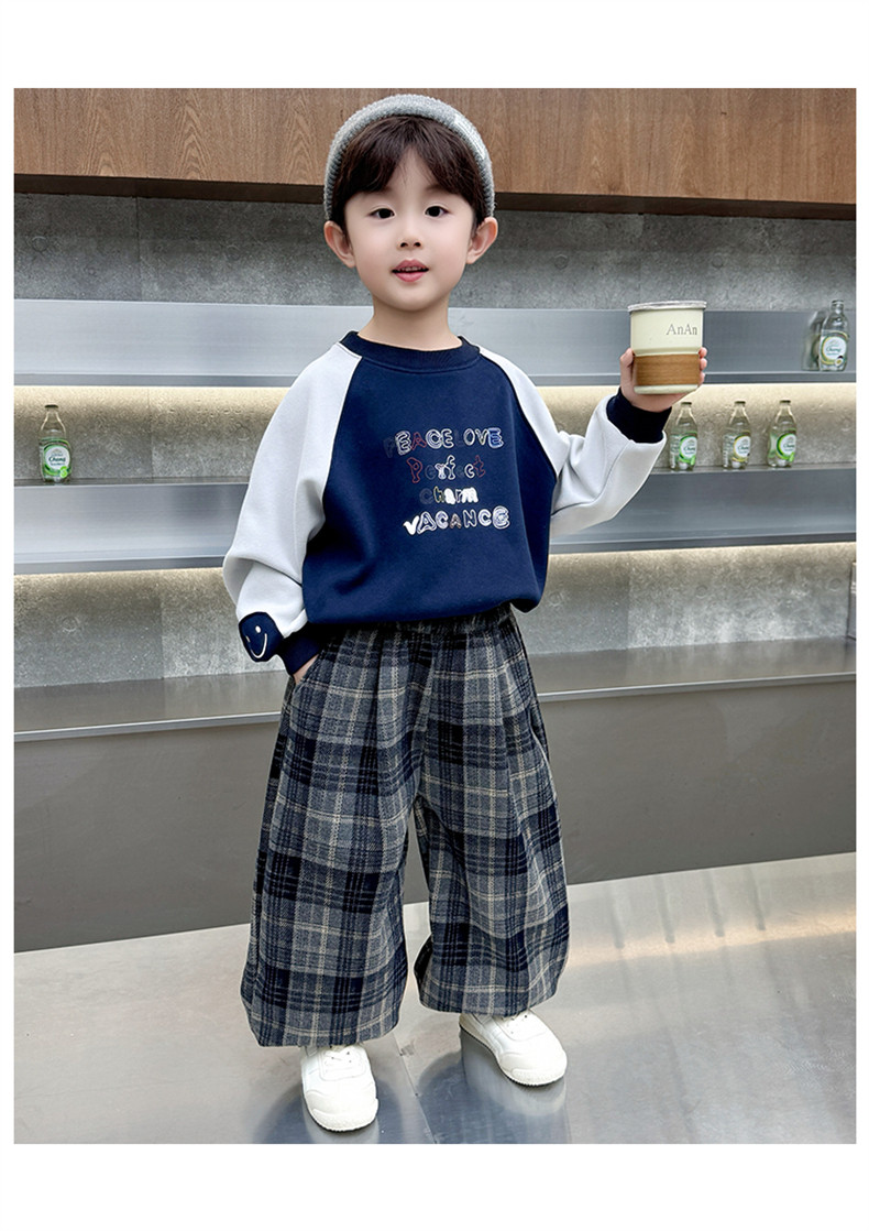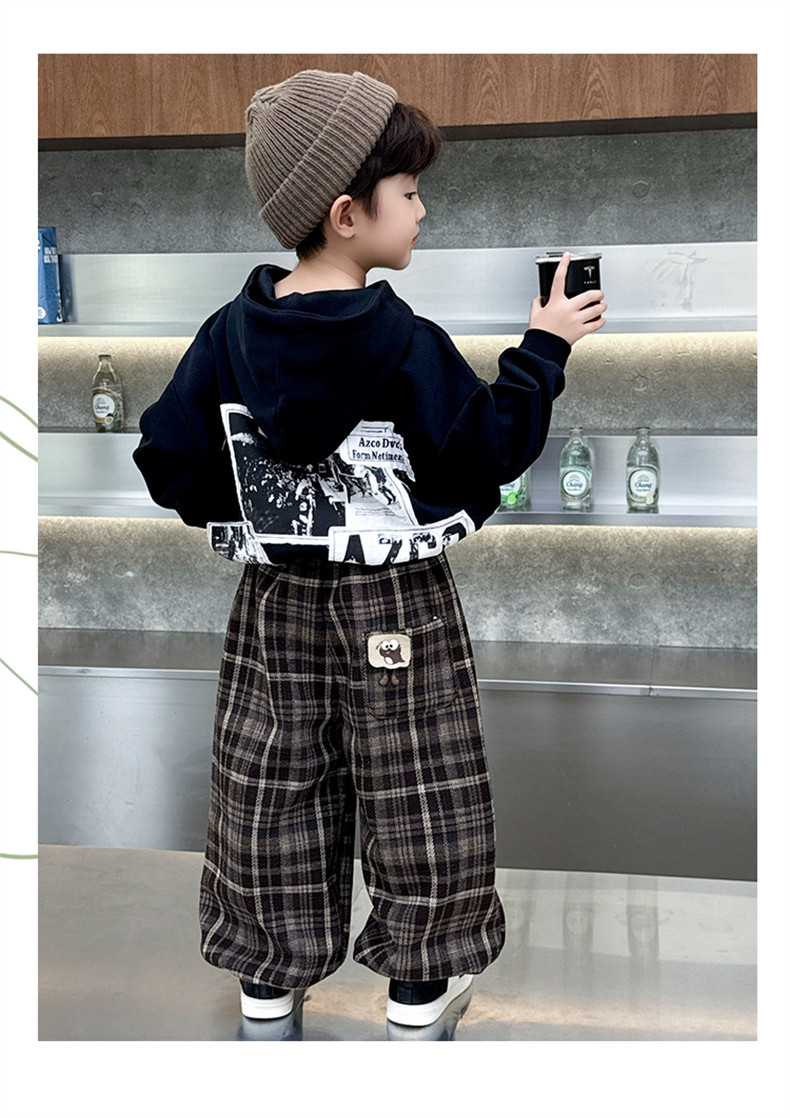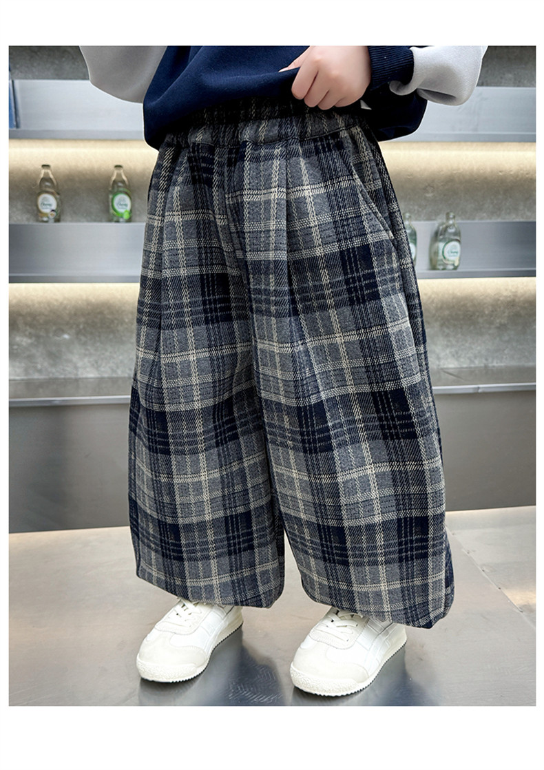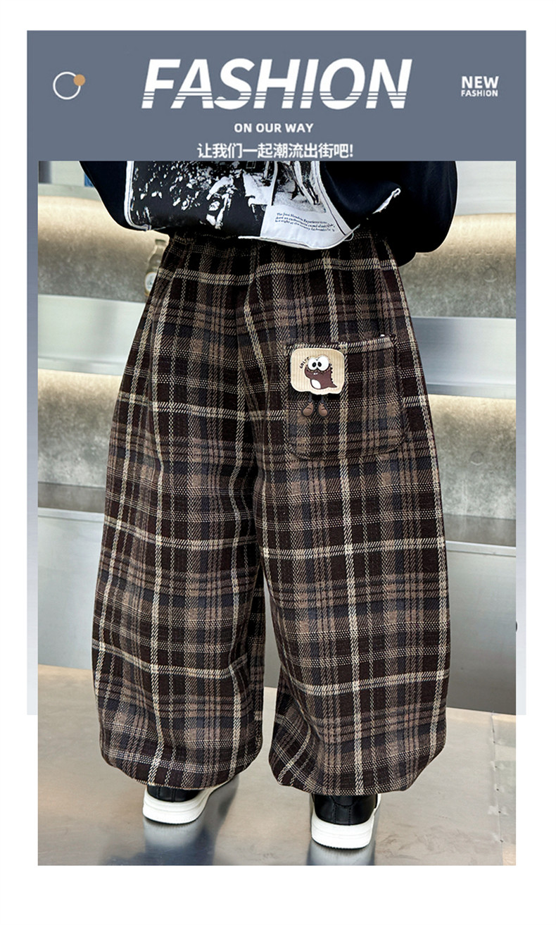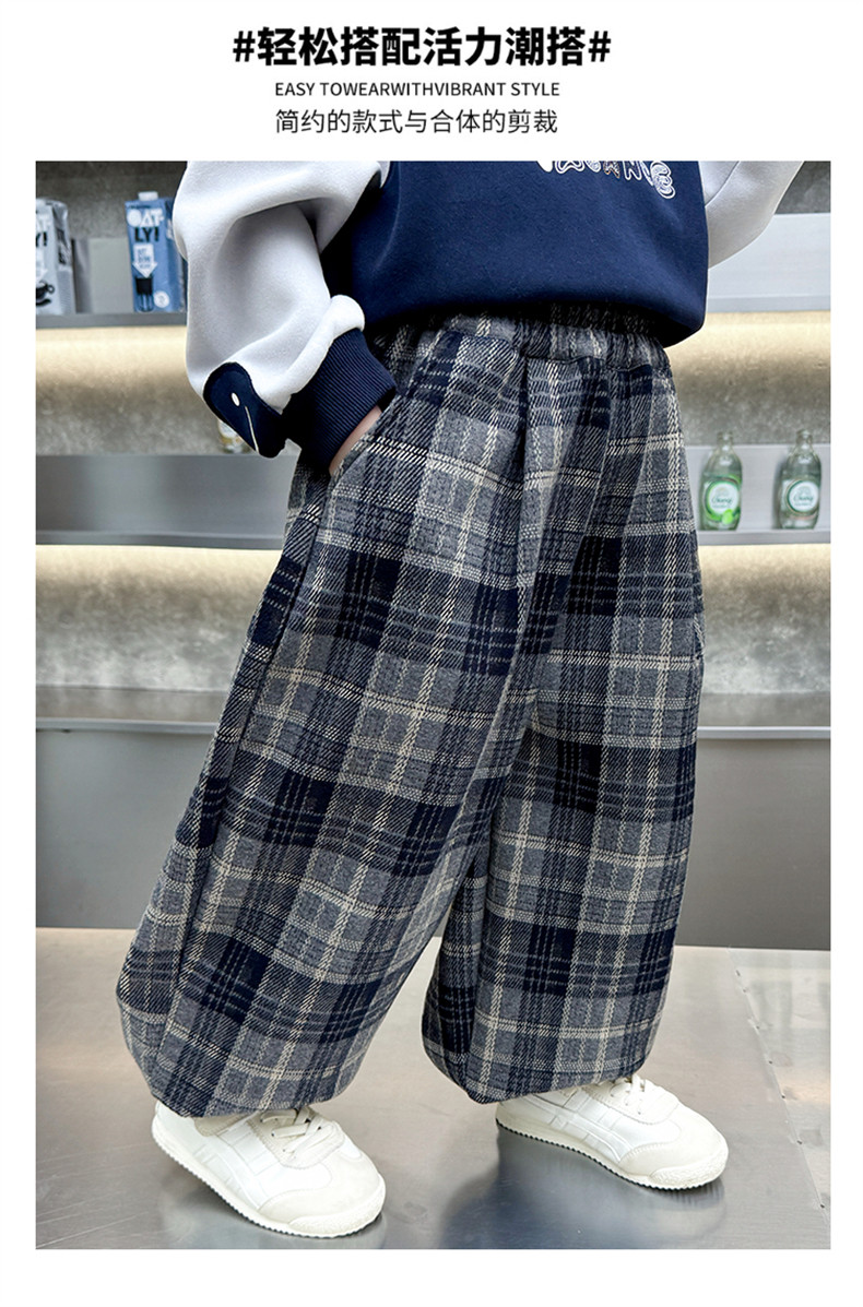 Boys' Fleece-Lined Pants 2025 New Winter Baby Harem Pants Children's Lantern Pants Plaid Autumn and Winter Clothing