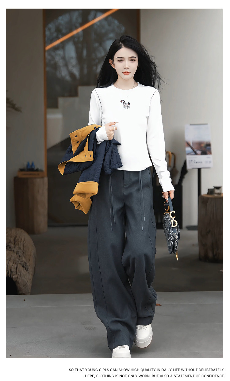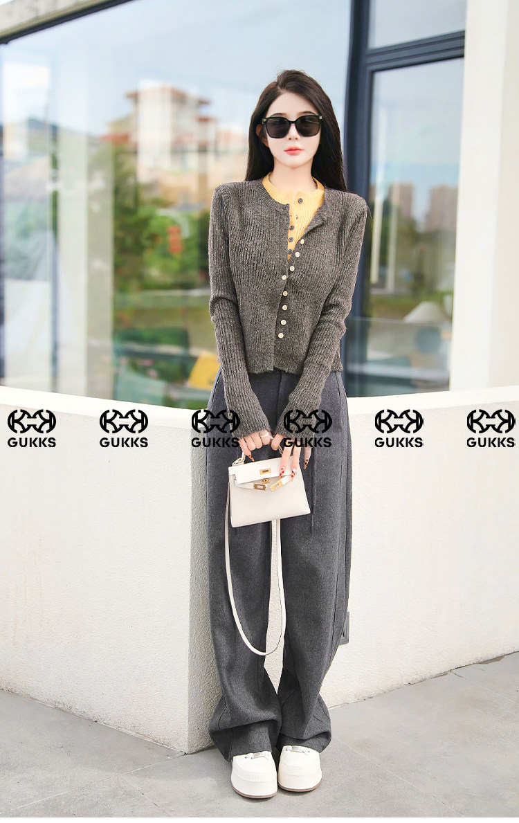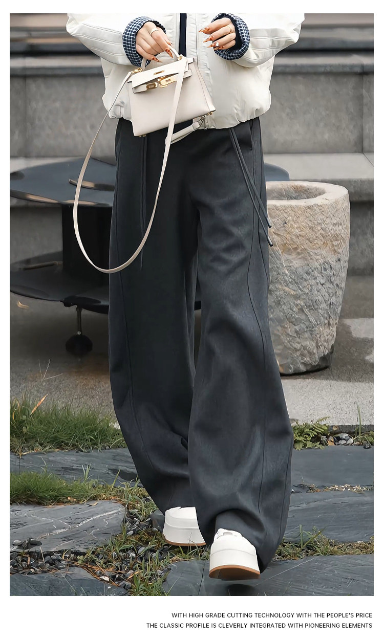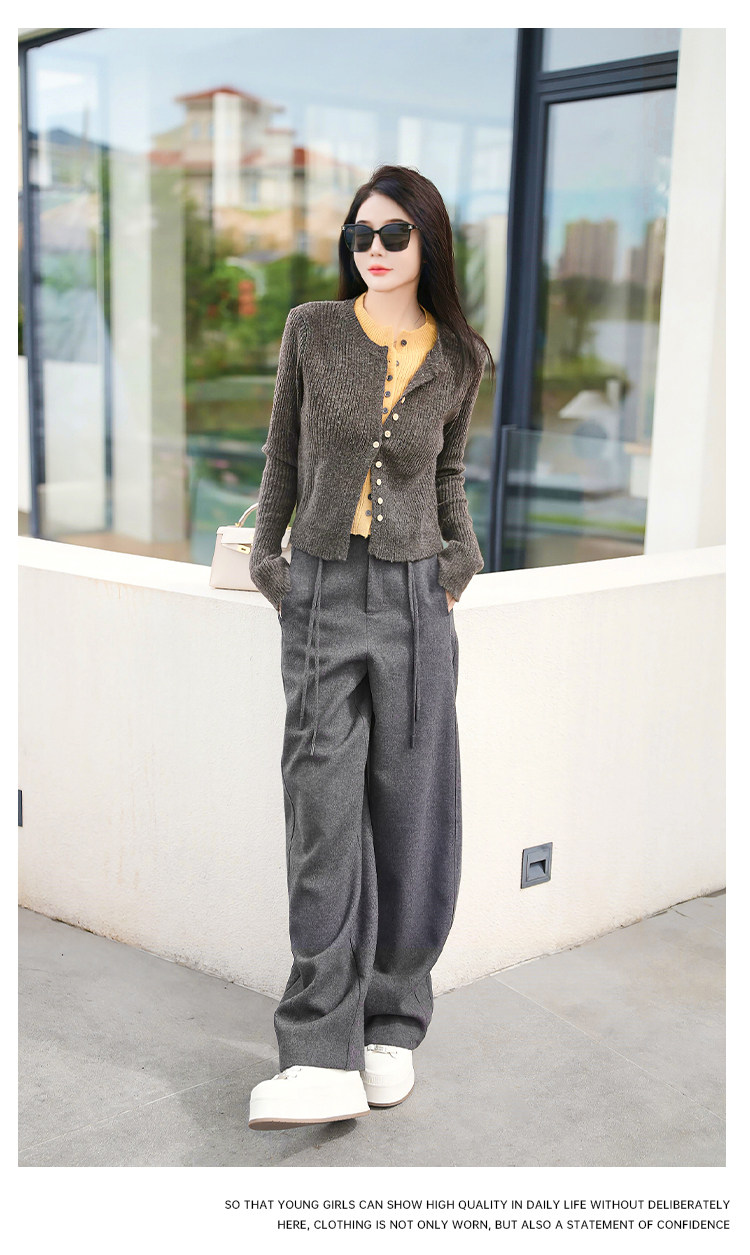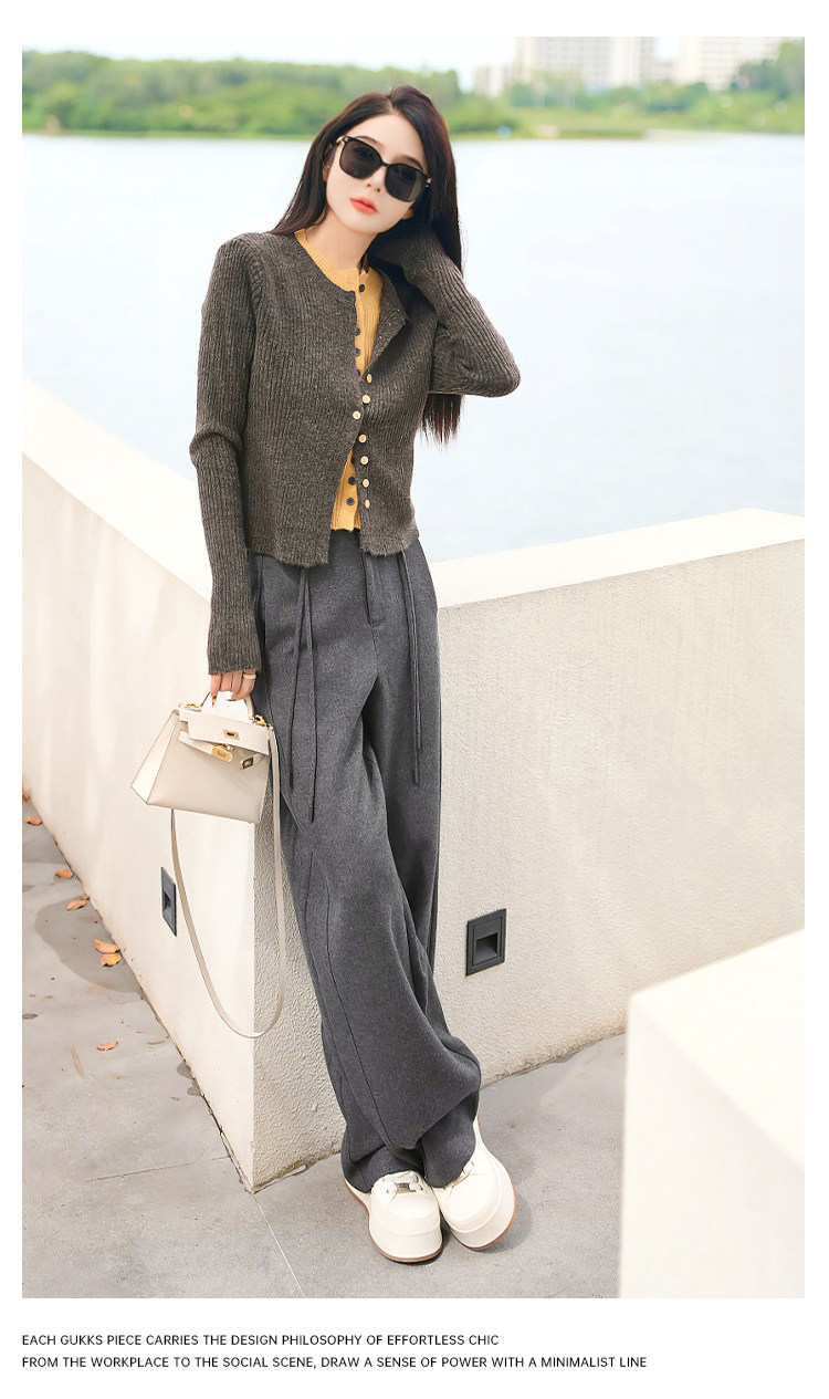 Mingming GUKKS minimalist structure autumn and winter solid color design versatile slimming straight casual pants woolen long