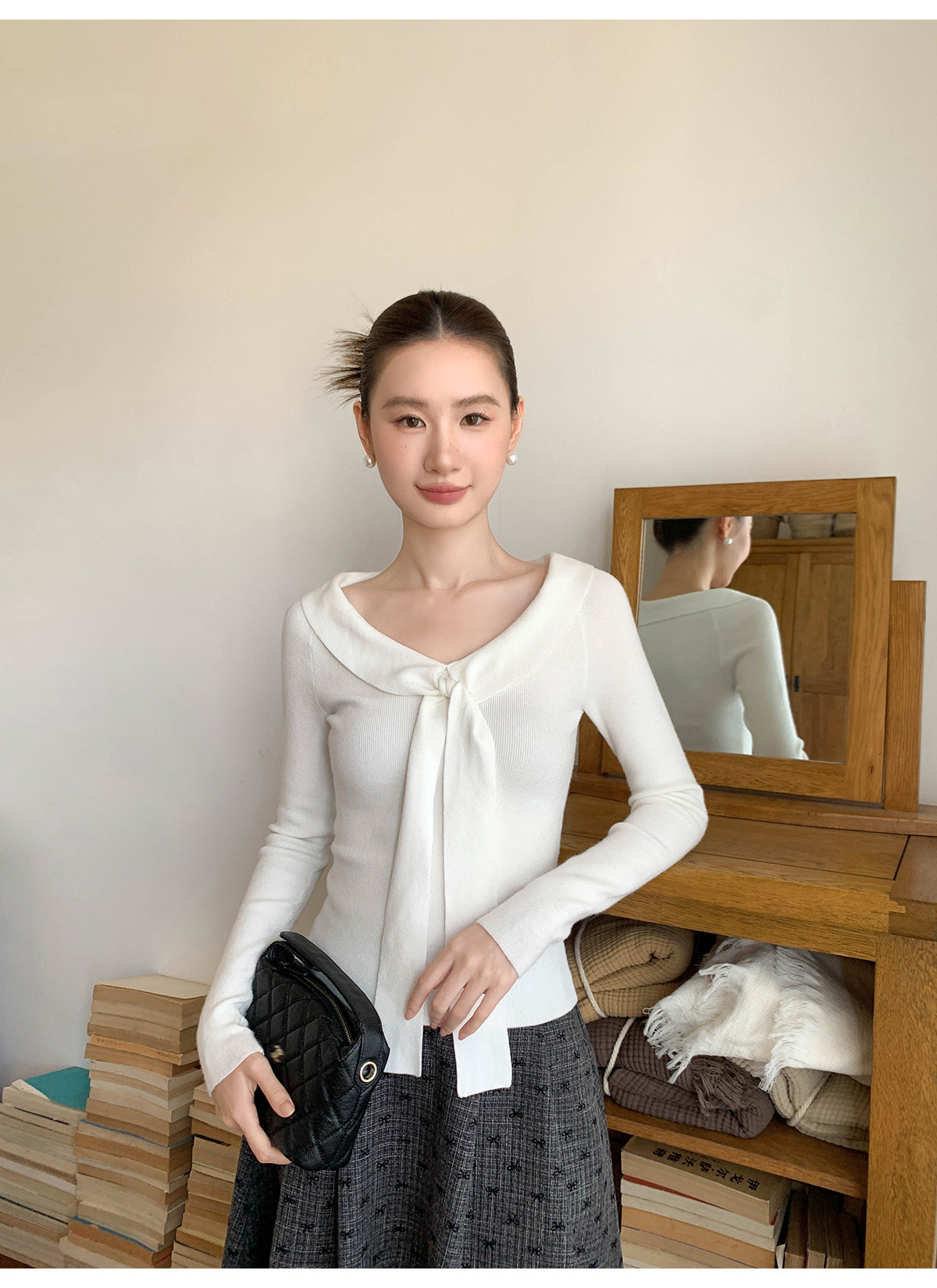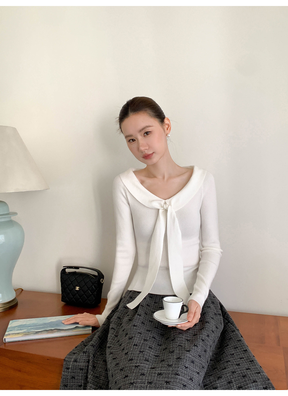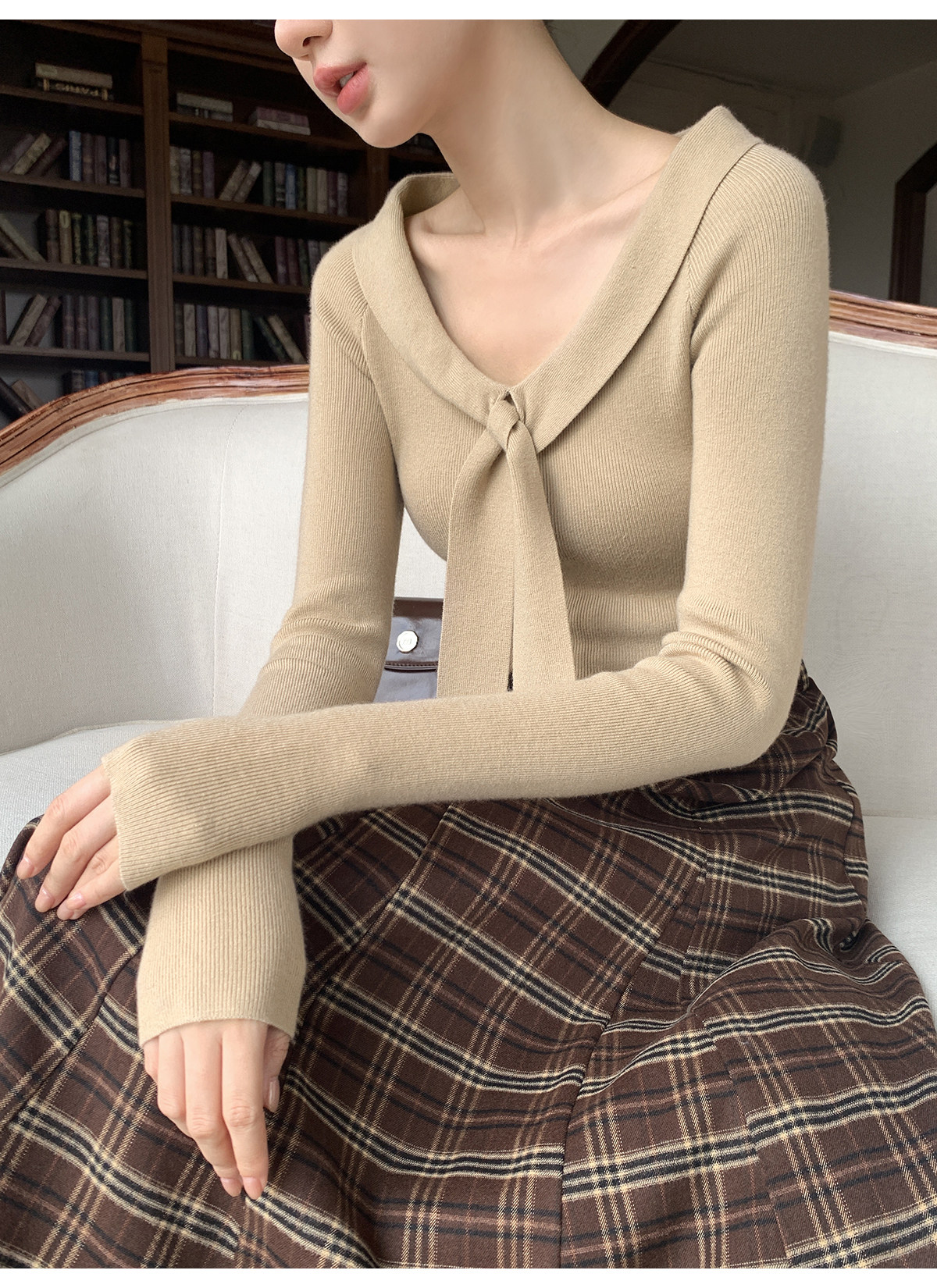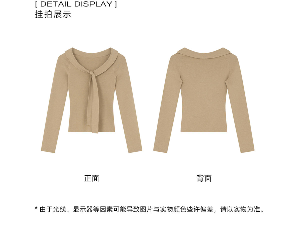 Xxning Lapel Ribbon Slim Knit Sweater for Women, Autumn and Winter, Slim Fit, Elegant, Slimming, Gentle, Commuting, Casual Top