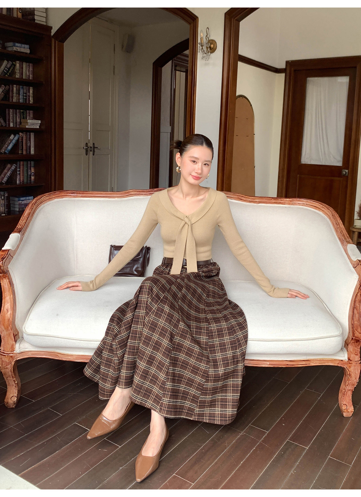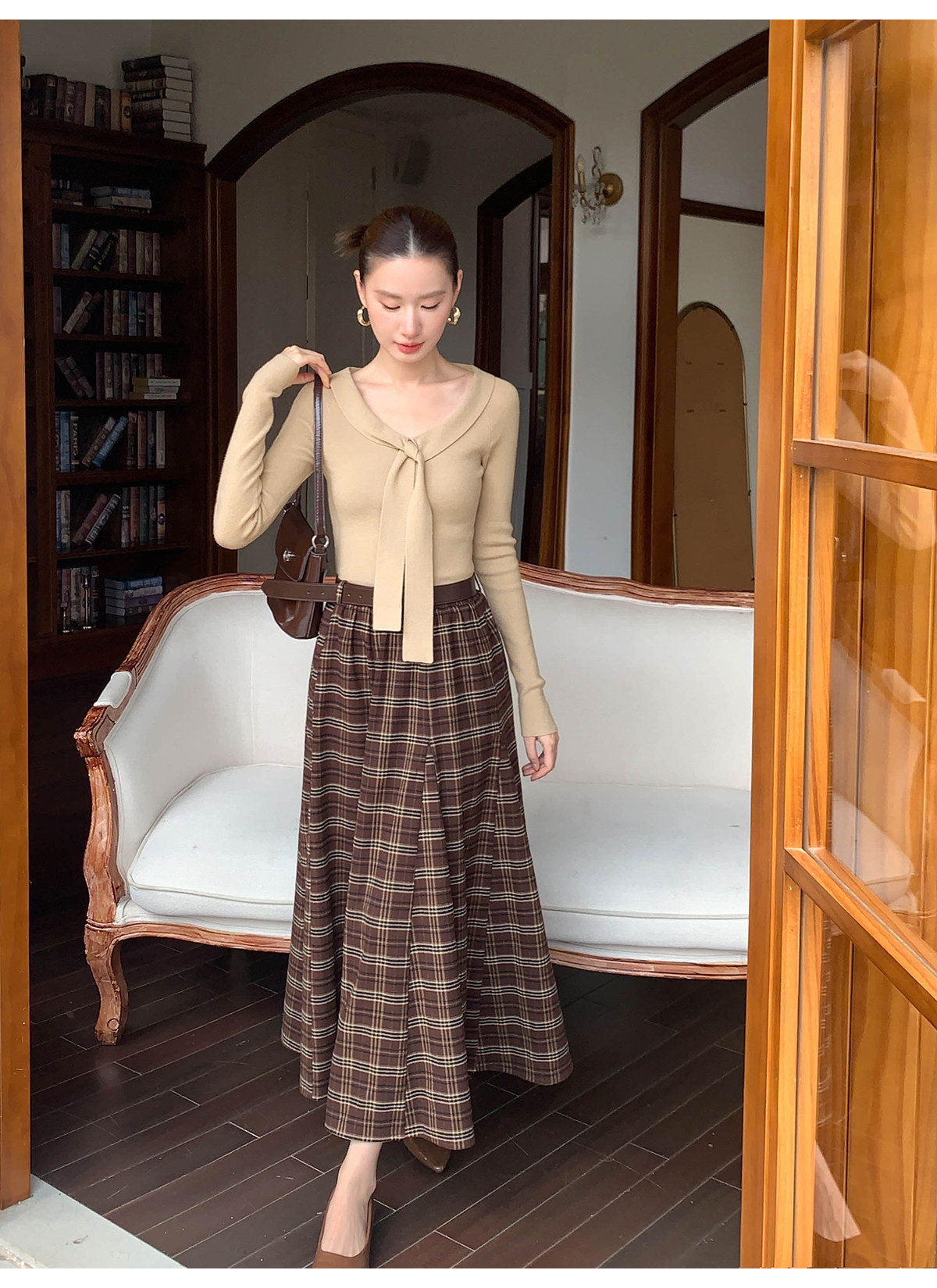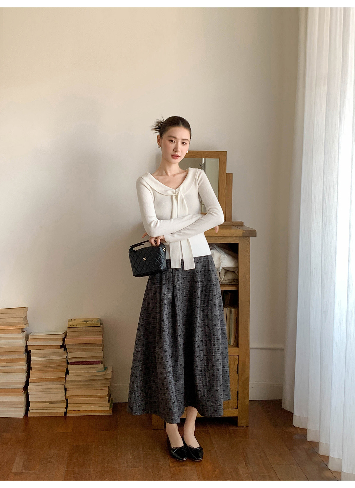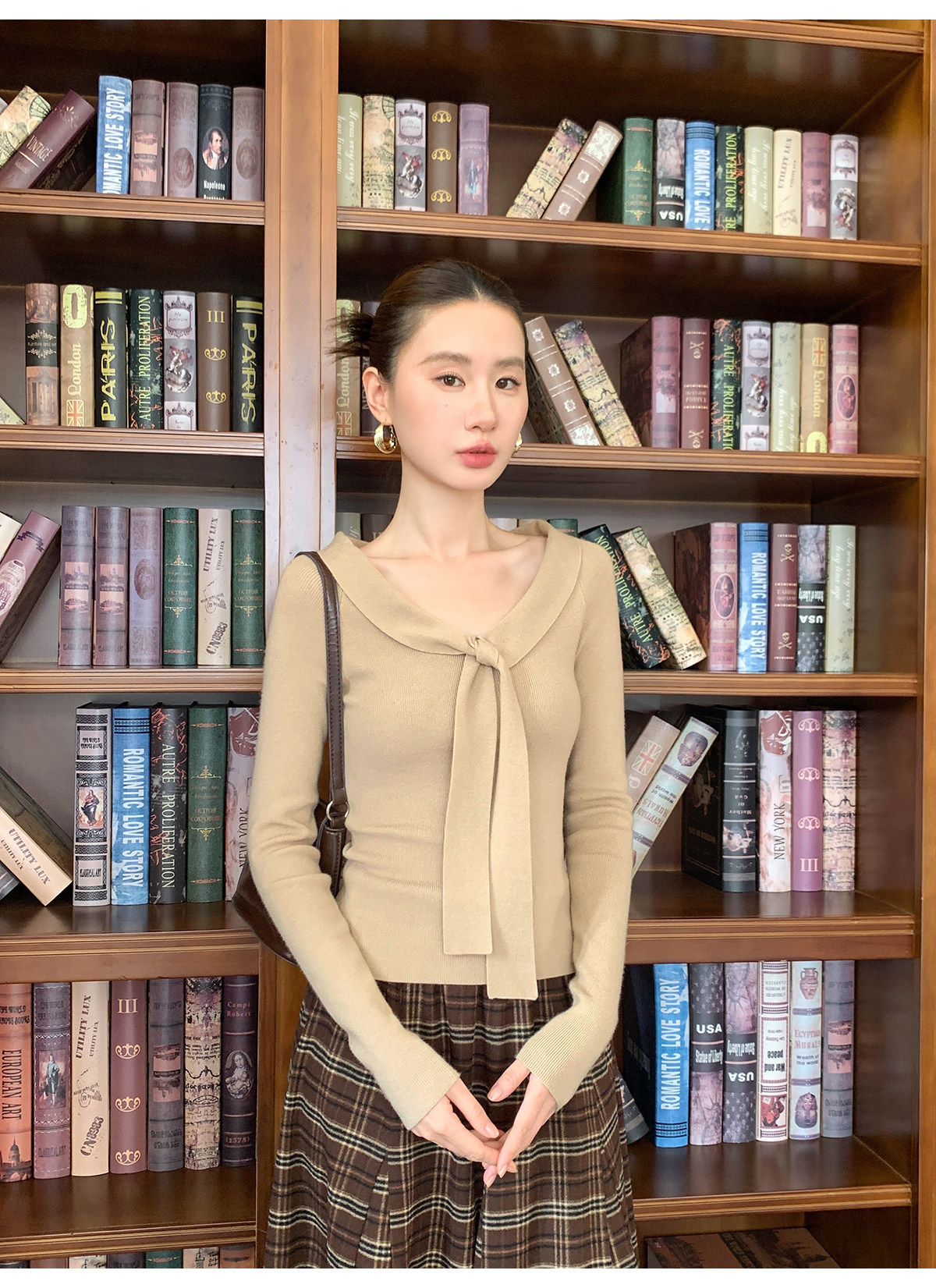 Xxning Lapel Ribbon Slim Knit Sweater for Women, Autumn and Winter, Slim Fit, Elegant, Slimming, Gentle, Commuting, Casual Top