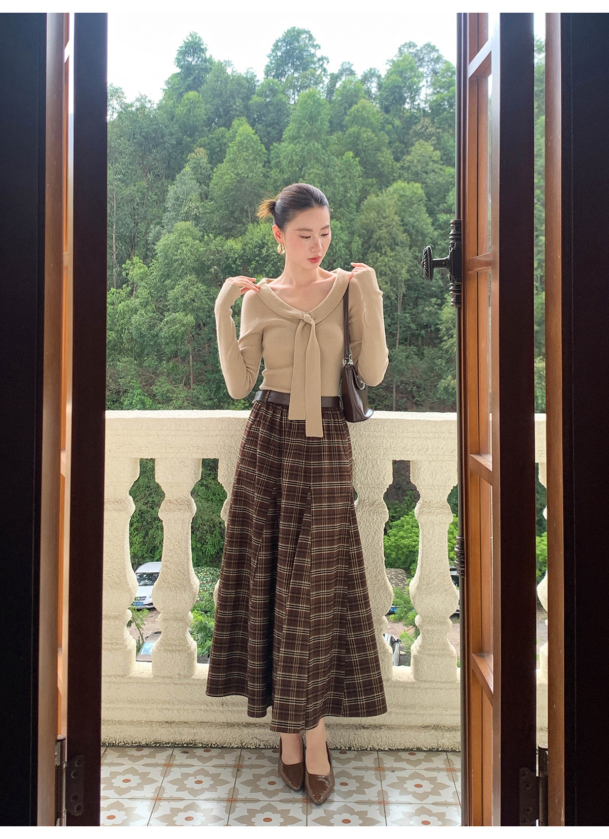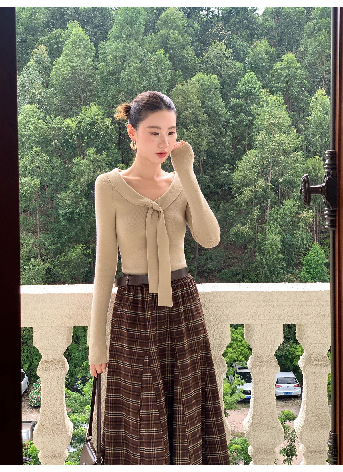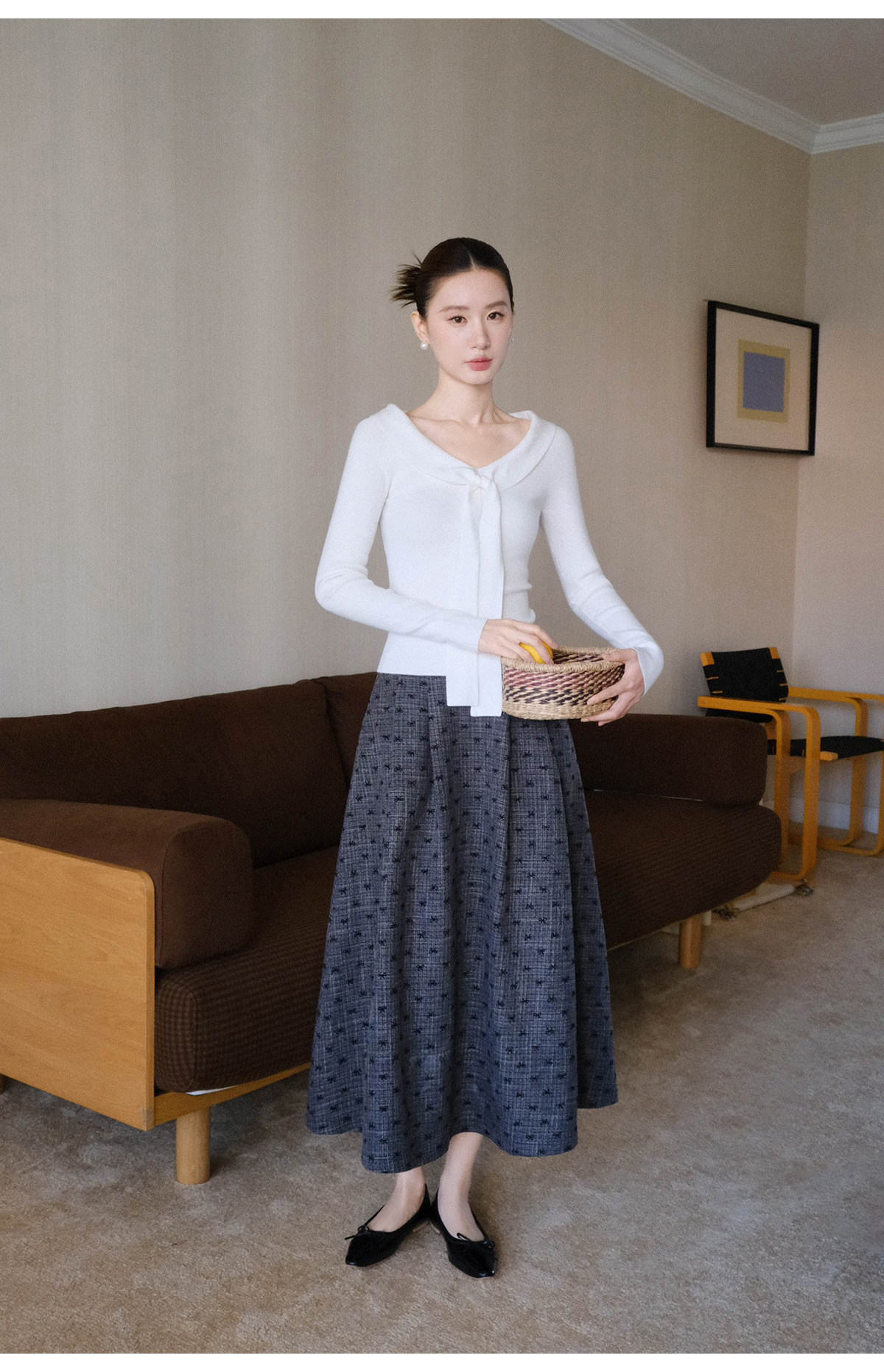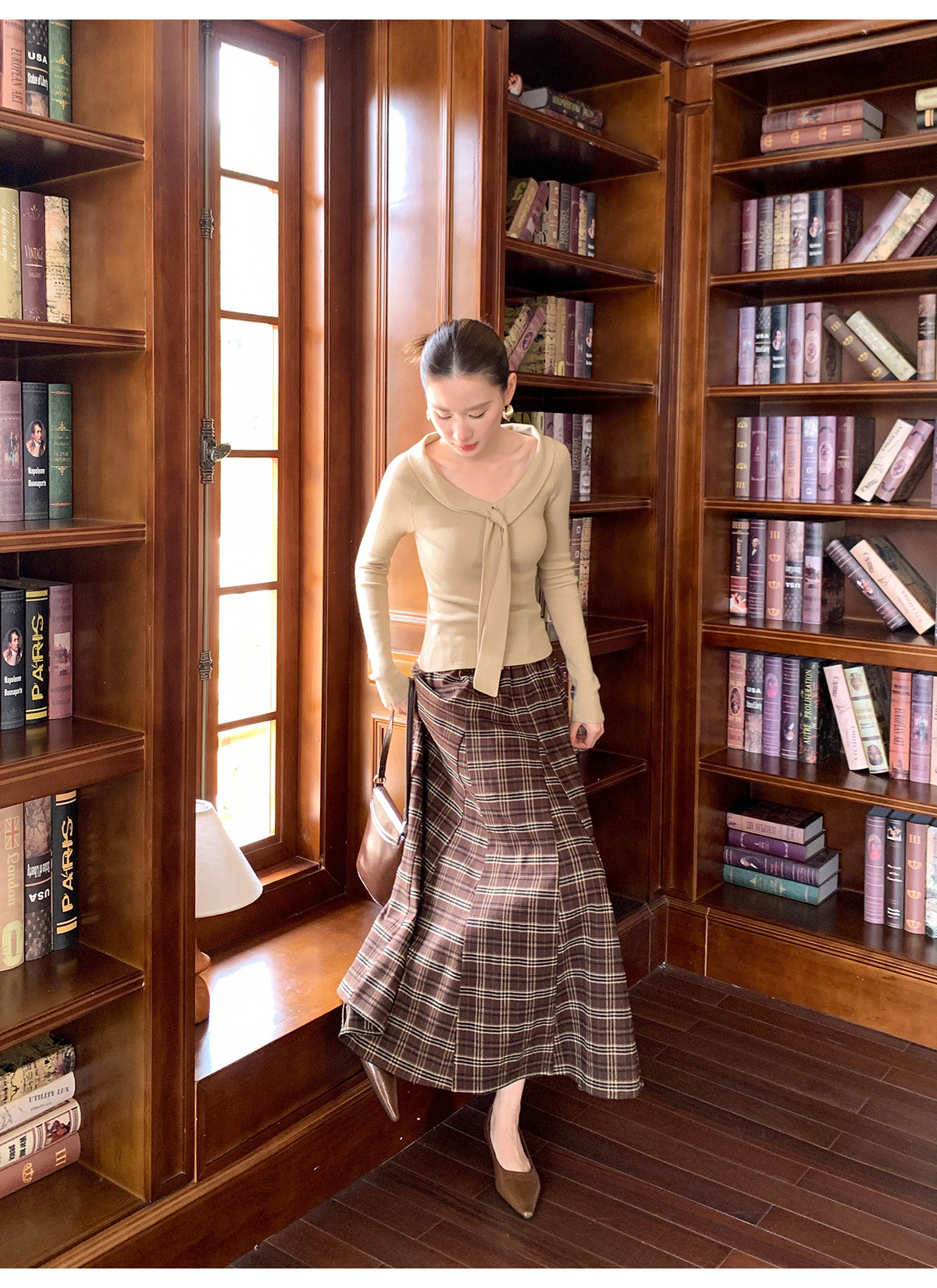 Xxning Lapel Ribbon Slim Knit Sweater for Women, Autumn and Winter, Slim Fit, Elegant, Slimming, Gentle, Commuting, Casual Top