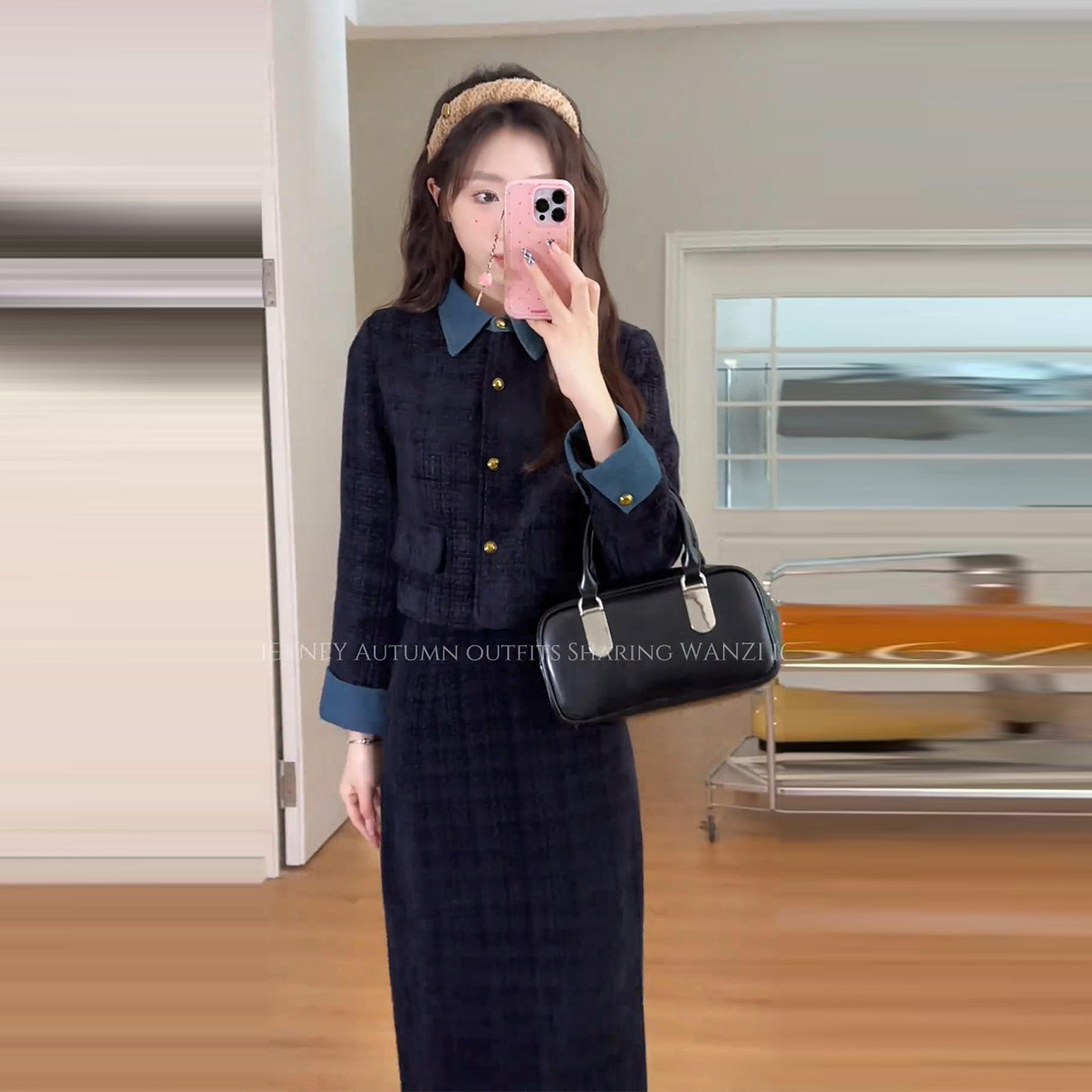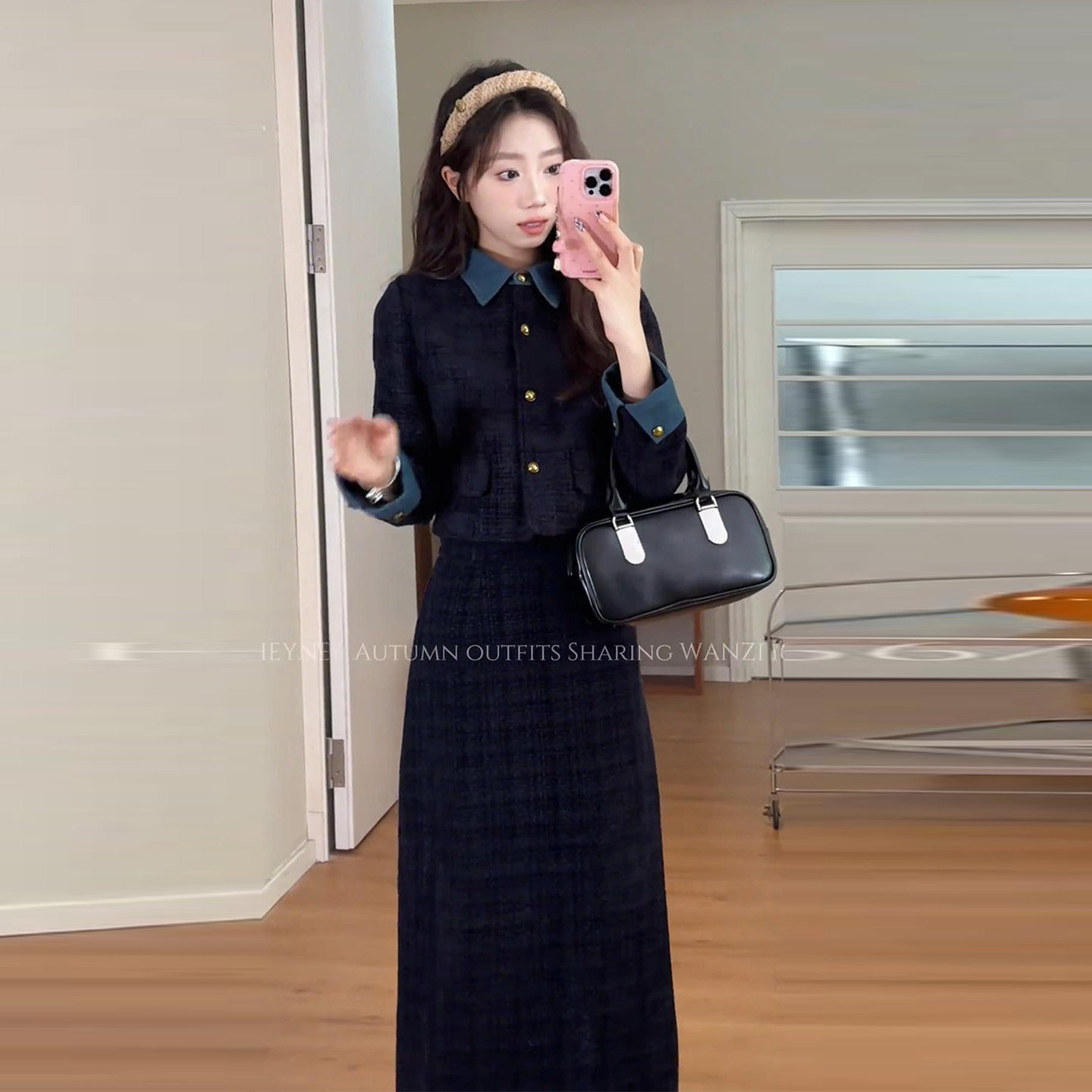 Plus-Size Chanel-Style Suit for Winter, Slimming and Elegant, with a High-End Feel, Featuring a Patchwork Quilted Jacket and a Half-Length Skirt, Two-Piece Set