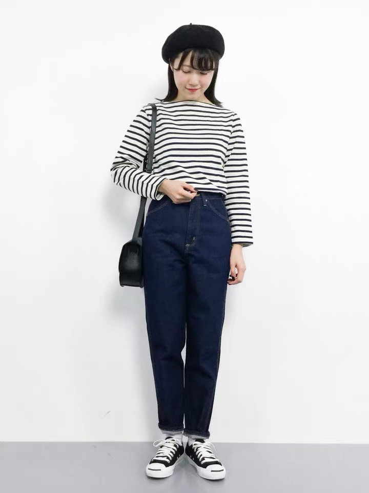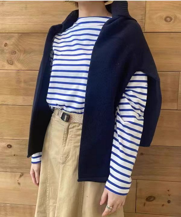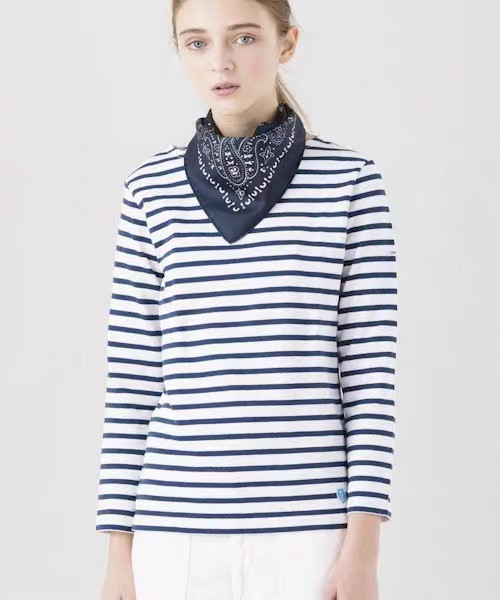 Japanese Trendy Brand Autumn and Winter New Product Japanese Classic Retro Striped Embroidered Women's Casual Long-Sleeved T-Shirt Orcival