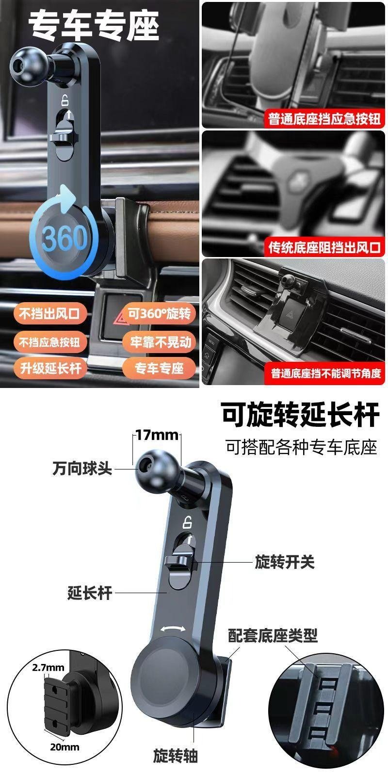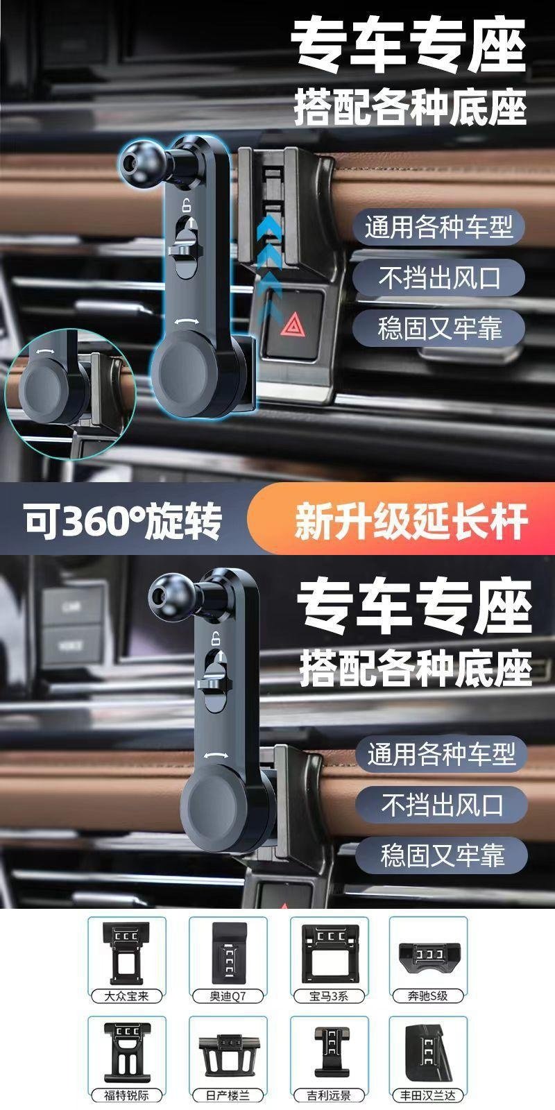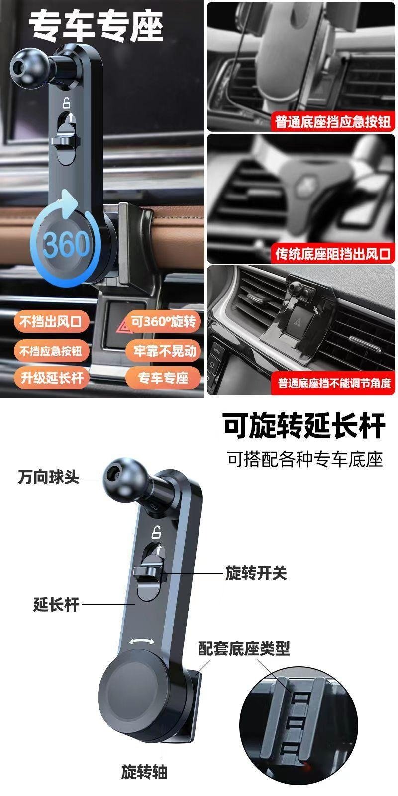 Car Air Conditioning Vent Bracket Car Mount Accessory Clip-On Extension Rod That Doesn'T Block the Air Outlet, Extended Version