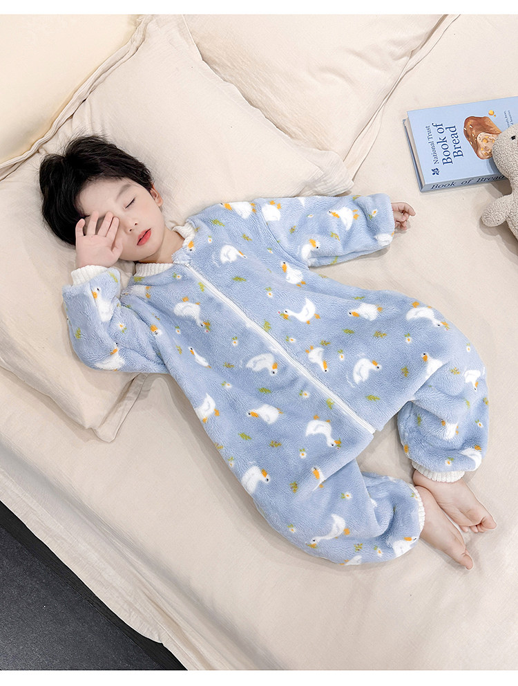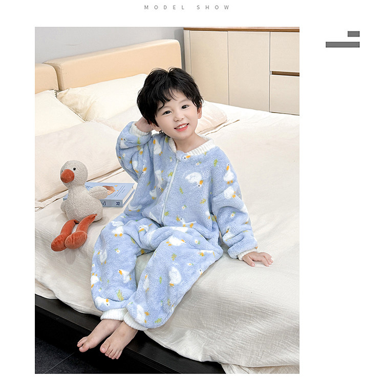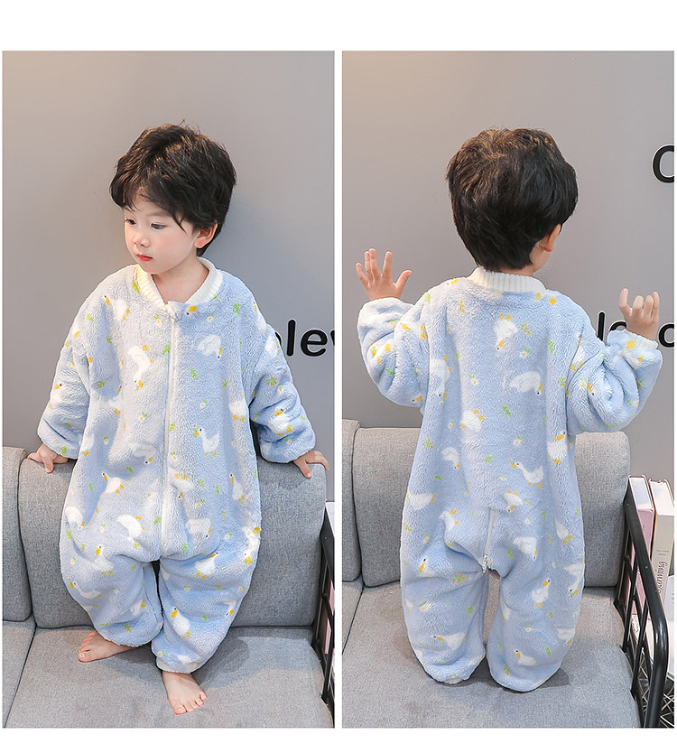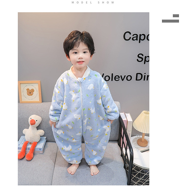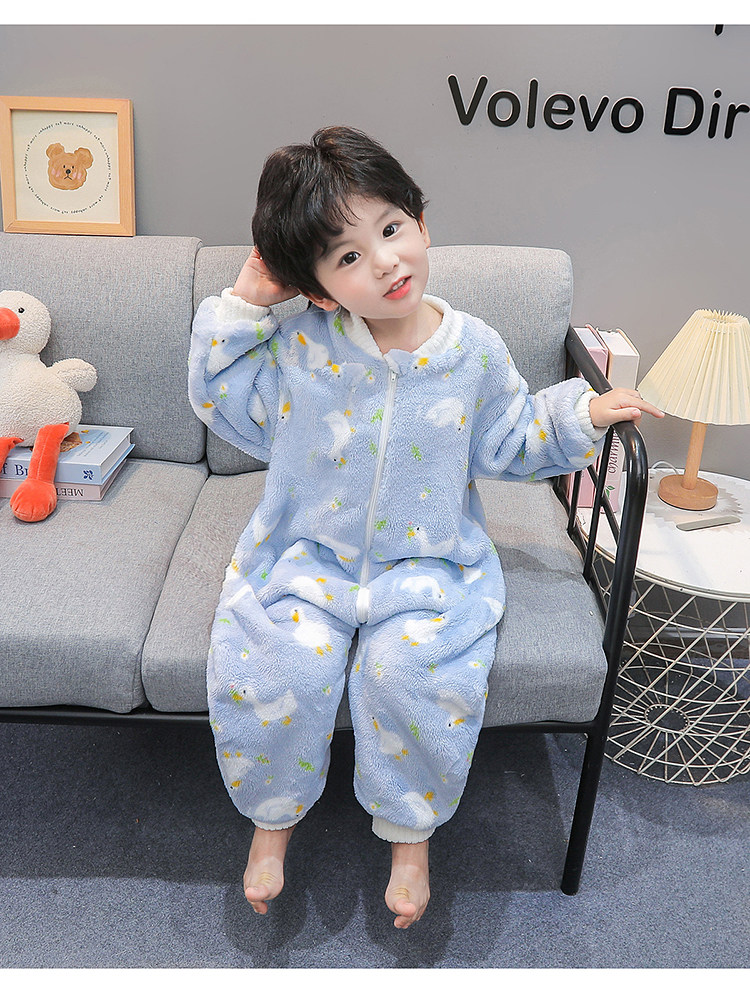 Boys' Pajamas Flannel 2025 New Autumn and Winter Kidsren's Baby Jumpsuit Sleeping Bag Warm Coral Velvet Home Clothes